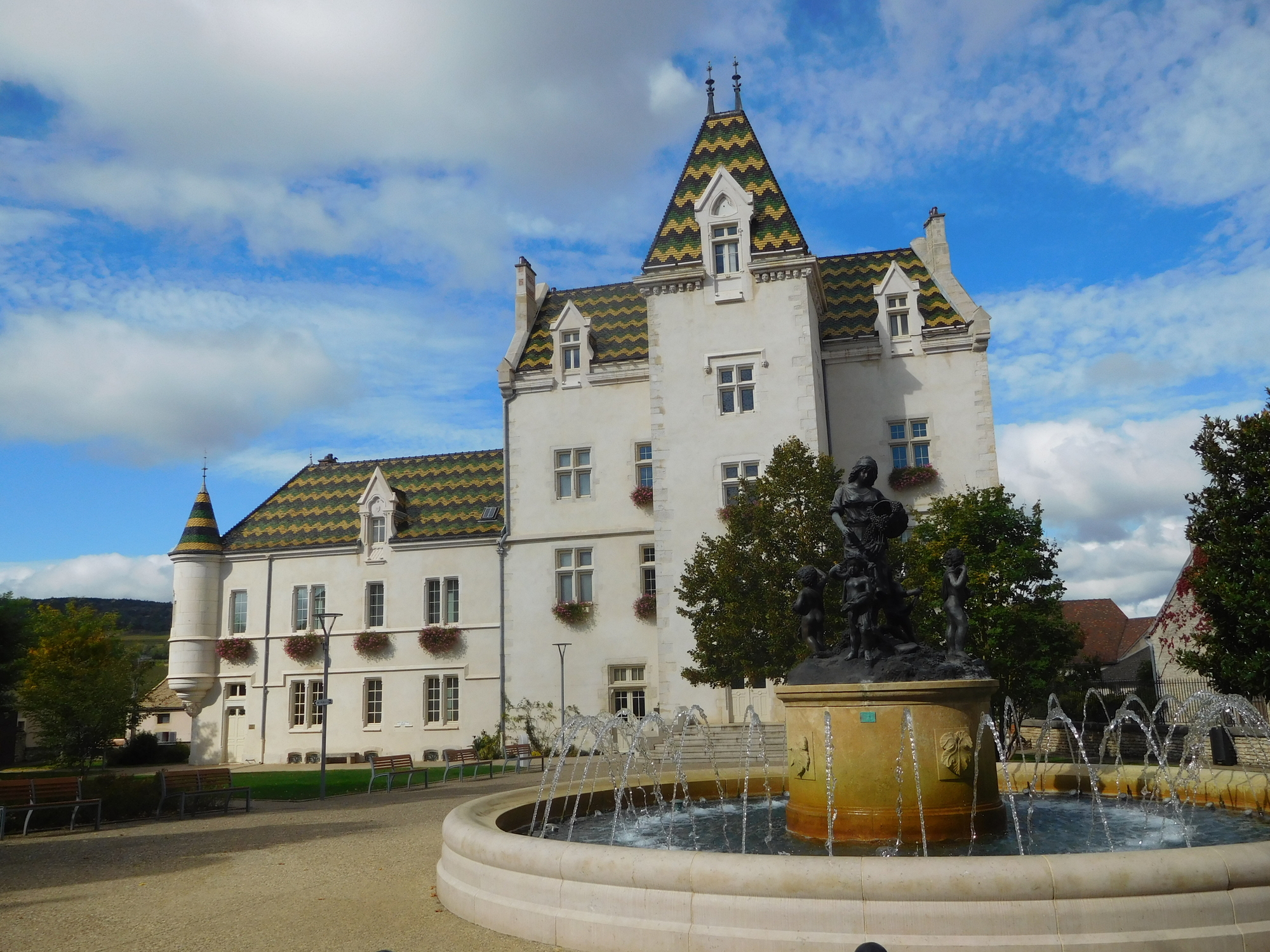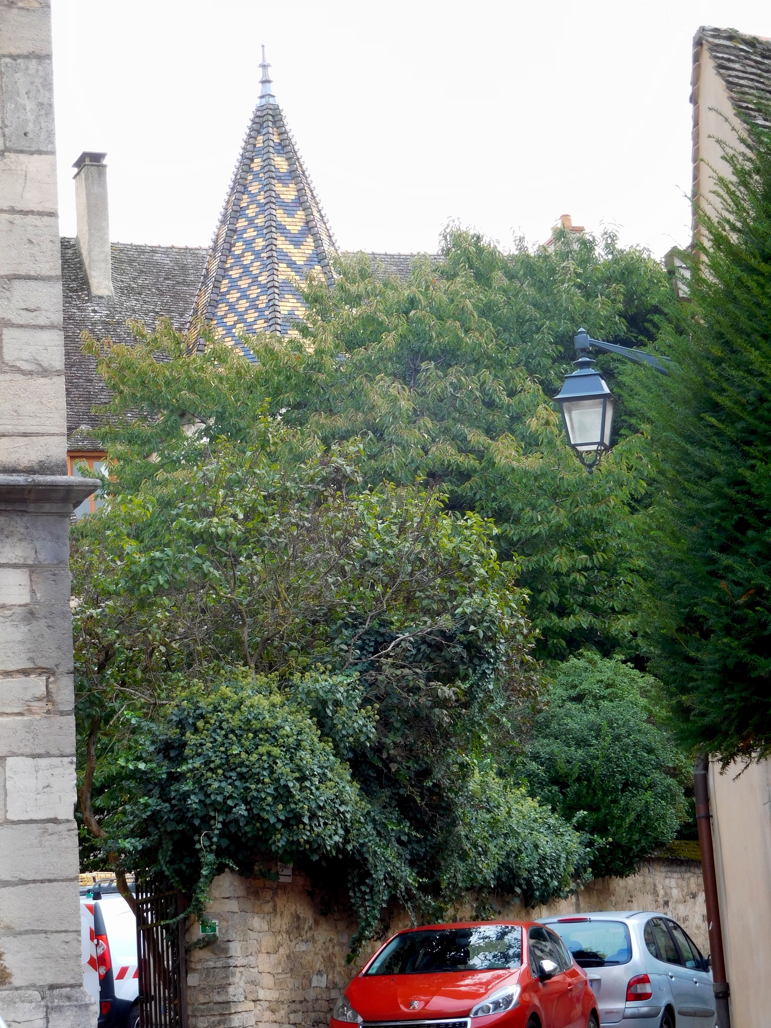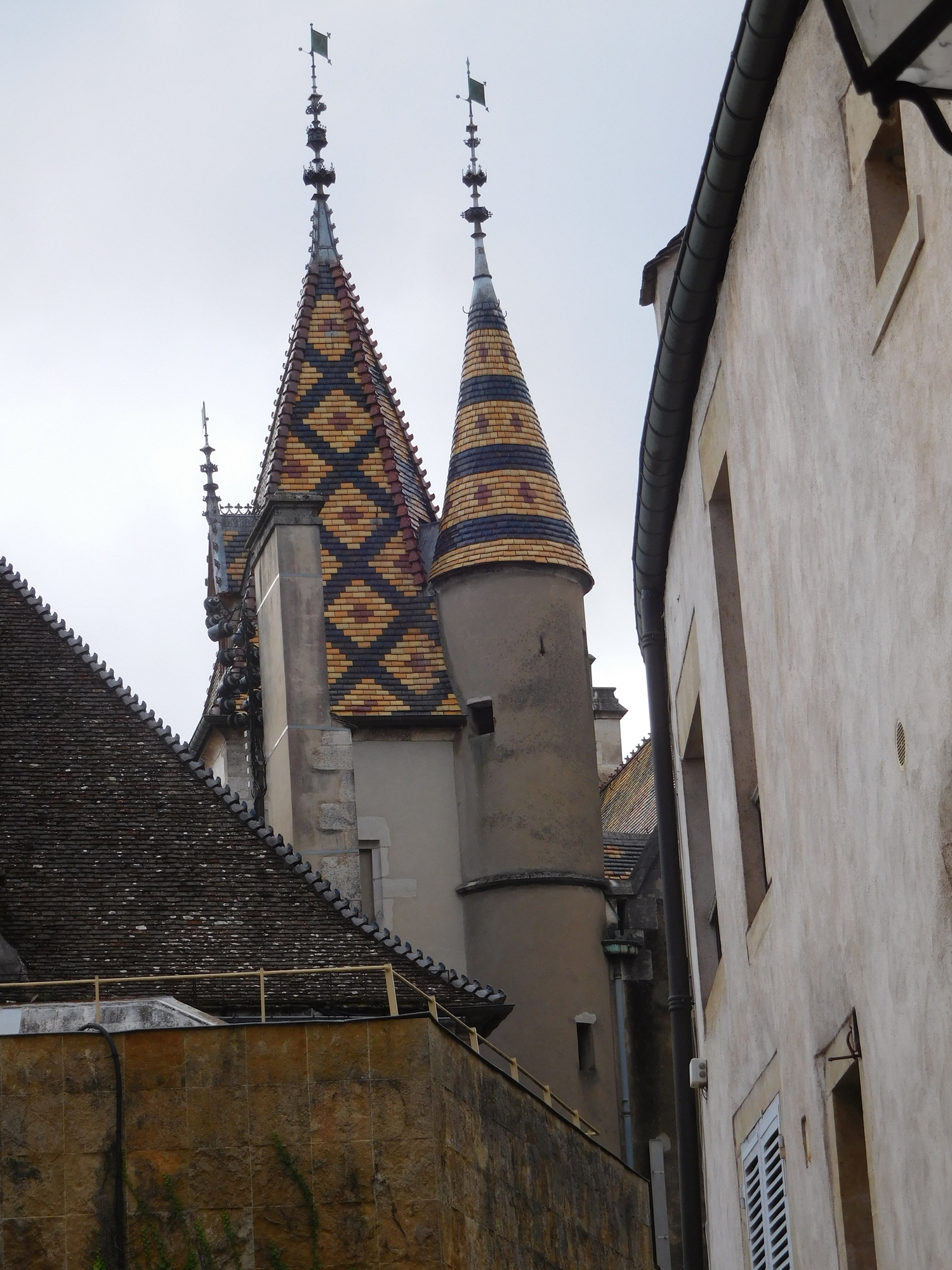 We had decided that the magic of the Grand Cru region basically ended at Nuits St Georges, but this turned out to be completely wrong. Beaune is actually the capital of the whole thing, and it is stuffed with wine producers, caves, tasting, and restaurants. It also carries on the varnished tile roofs, which had become popular in 13th century churches and which became most popular in rich private houses in the 16th and 17th centuries.