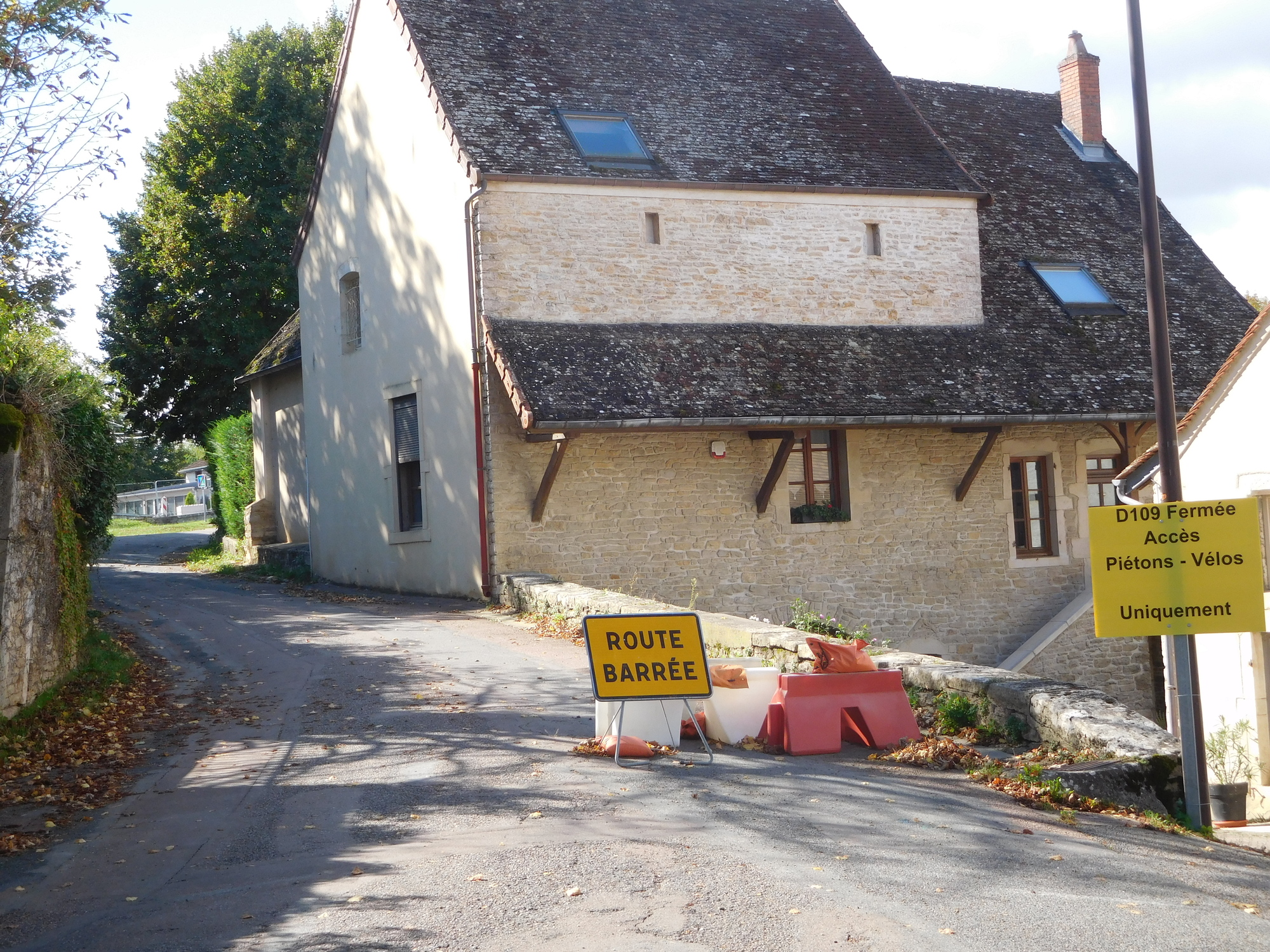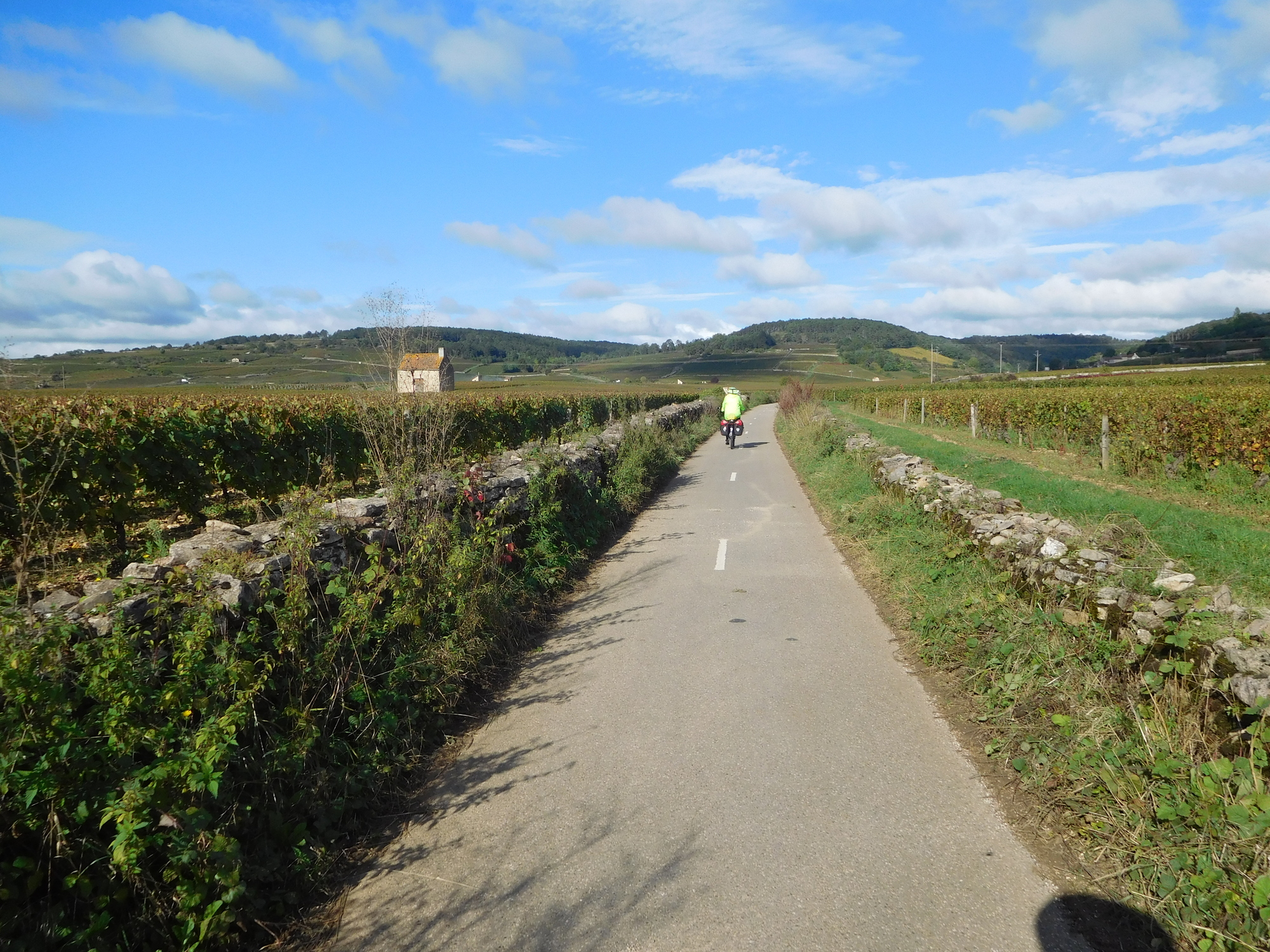 We passed places like Meursault and Puligny-Montrachet, which seemed to ring a bell with us as pretty famous in wine circles. Finally we came to Remigny. Here they had a Route Barrée, which we of course laughed at. Well we were right, we could get around it, but our success only put us onto the next phase of the ride. That took us along a canal (Canal du Centre) past Chagny and to Chalon. The canal part was ok, but just the usual canal riding. The vines and the magic villages had disappeared. To make matters worse, our track left the canal before Chalon and we invested an hour pushing our way through town traffic.