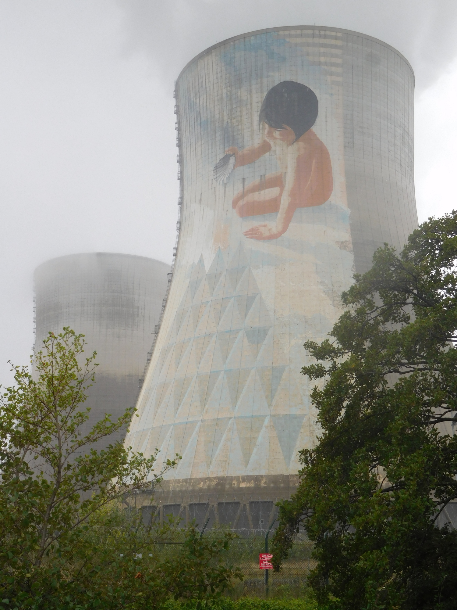 Also very much in evidence is the Cruas nuclear power station, with four giant cooling towers. There is a fresco on one by artist Frederic Gracia, I think. If yes, it's one of many he had done on various towers. Internet is too weak here for me to learn more about it. Does it make the thing seem less threatening?