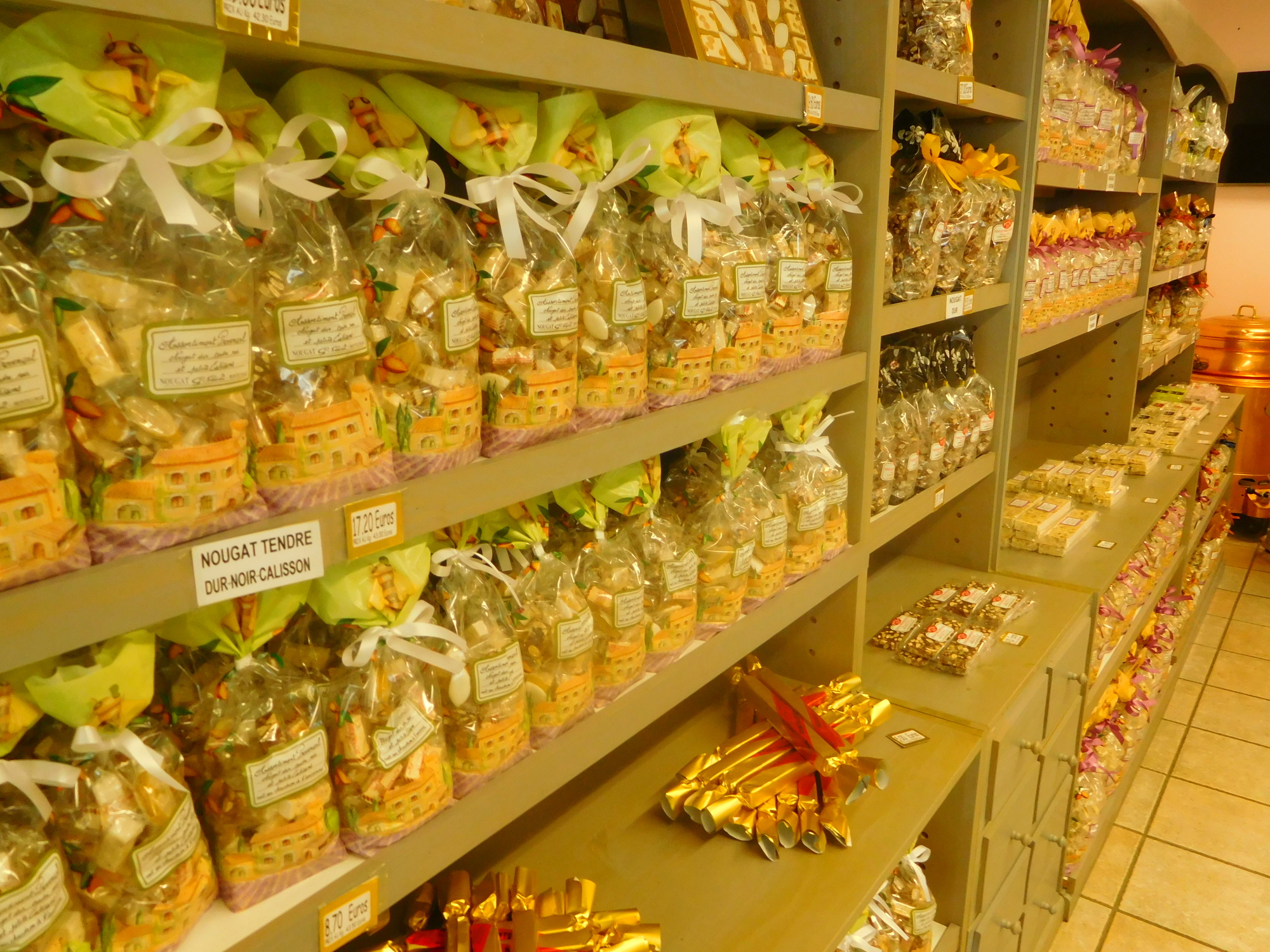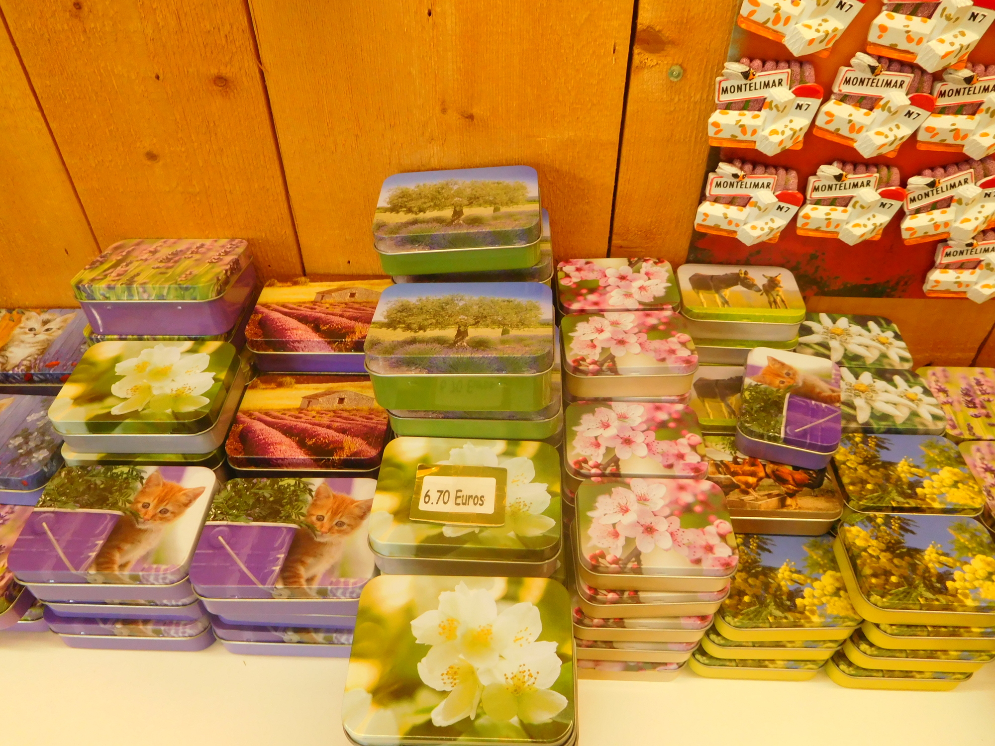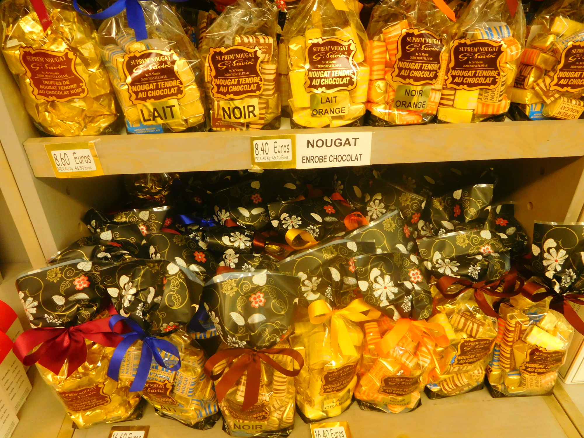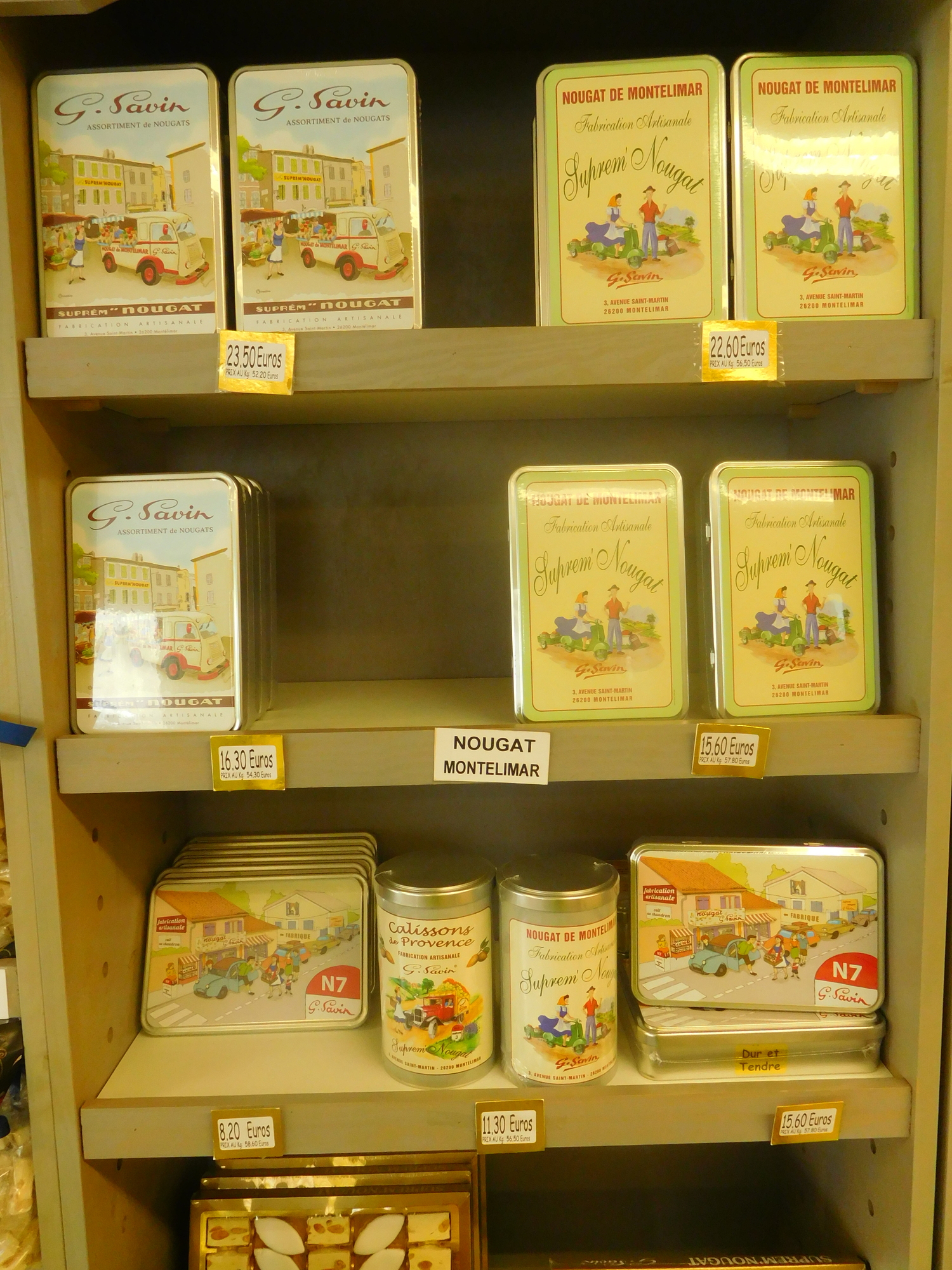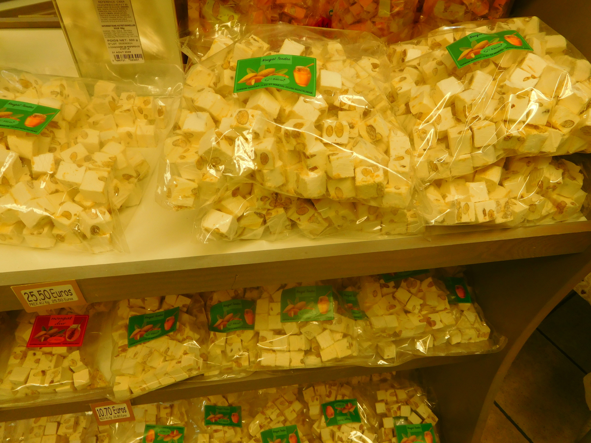 Inside the shop there is of course a focus on all the varieties of nougat on offer. But half the shop is also devoted to Provence type souvenirs. This established Montelimar in our minds as the start of Provence. Provence is a place so staggeringly special that its exact start point in the mind is significant.