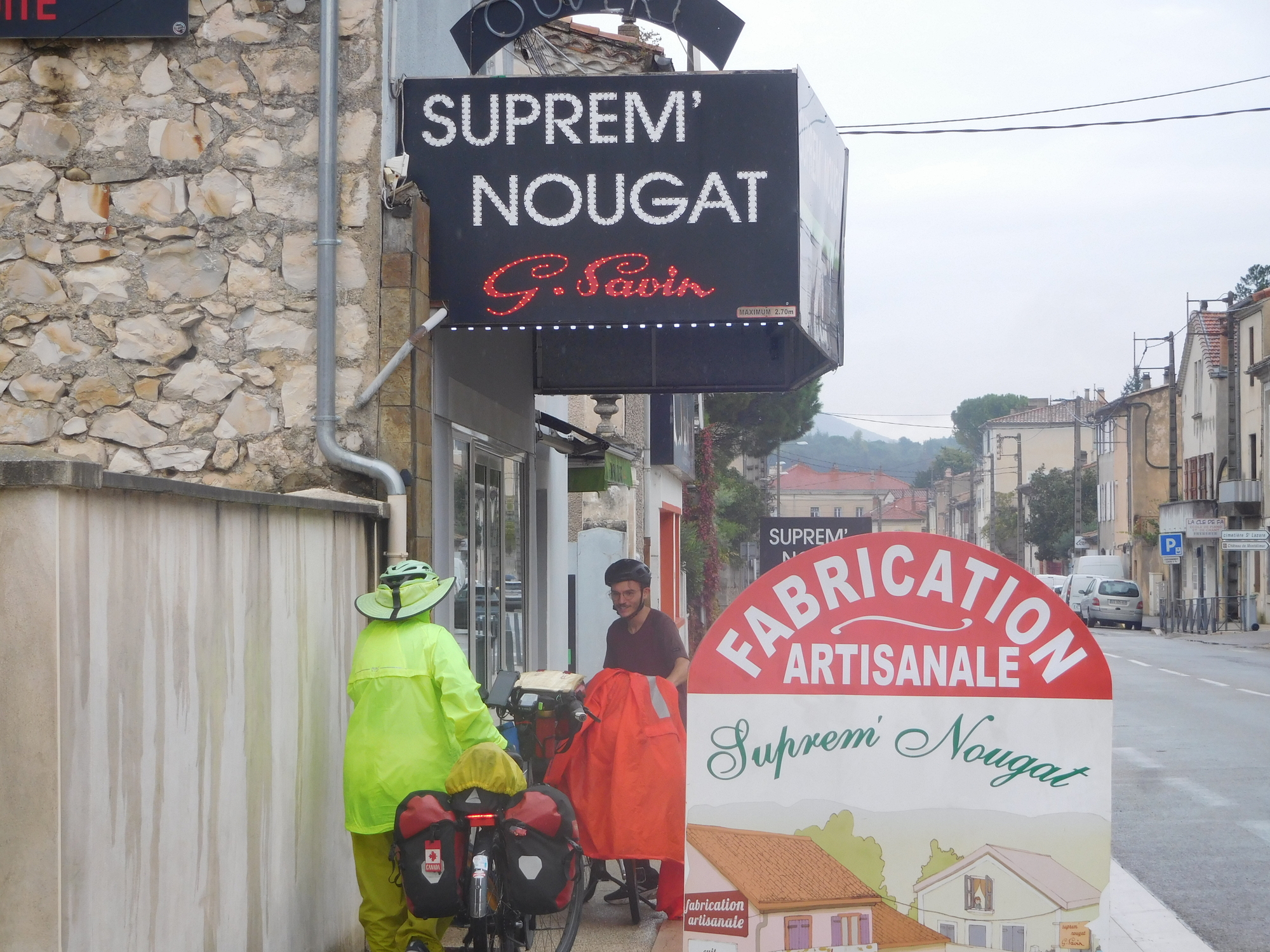 Every time we travel down the Rhone we make a special point of visiting Montelimar. The reason is that Montelimar is a hotspot for production of nougat. Real nougat is a wonderful thing - concocted of egg whites, honey, nuts, and dried fruits. You can also find a weak knockoff in the form of the Mars bar. We have researched nougat and Montelimar nougat a little, but long ago settled on Savin as being the best. They call the shop Suprem' Nougat.