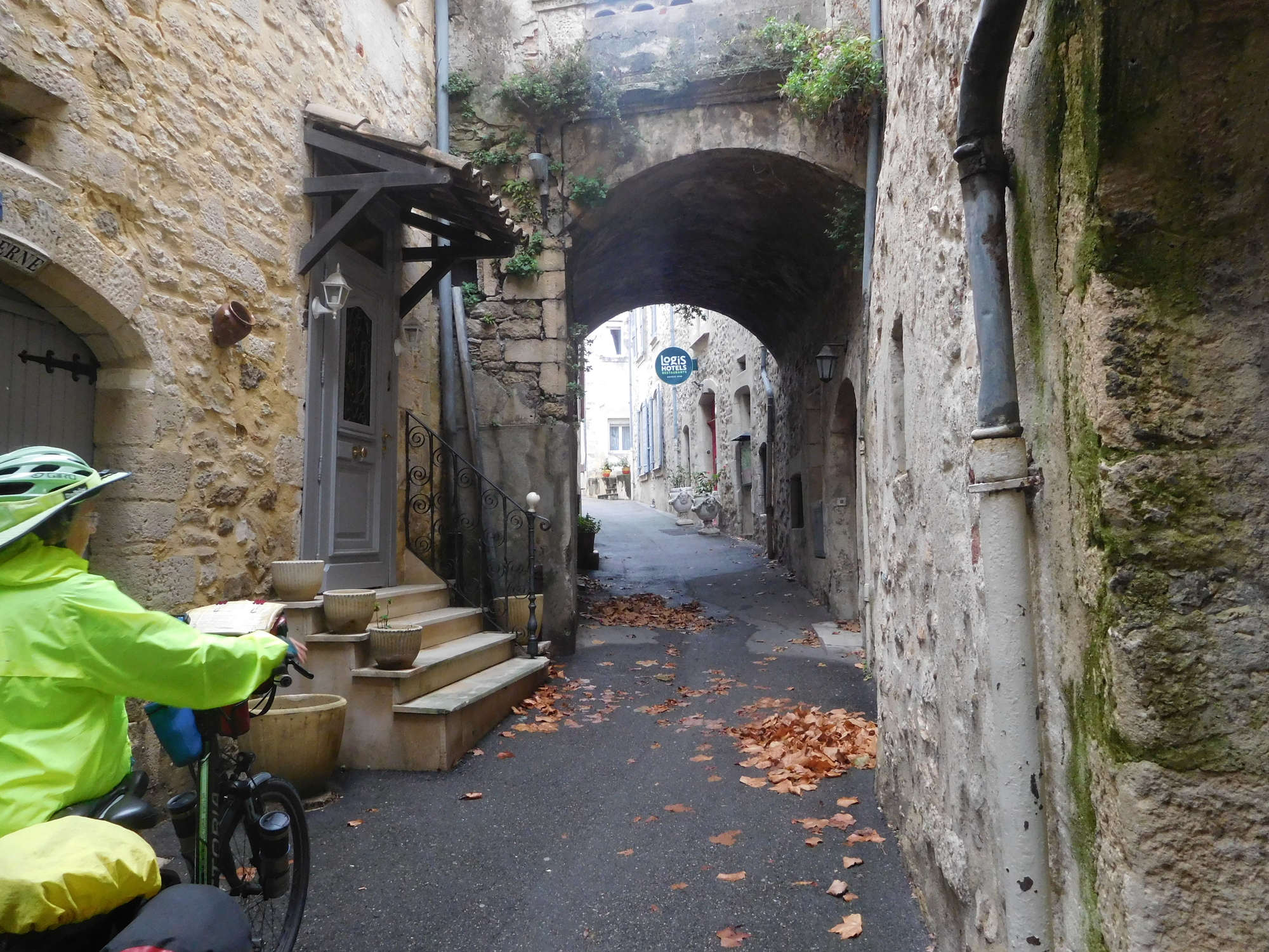 We arrived in Bourg Saint Andeol, and were pleased to find that our place was the really old Hotel Le Prieure. Dodie observed that it look "medieval", but the owner pointed out it is older - 13th century!