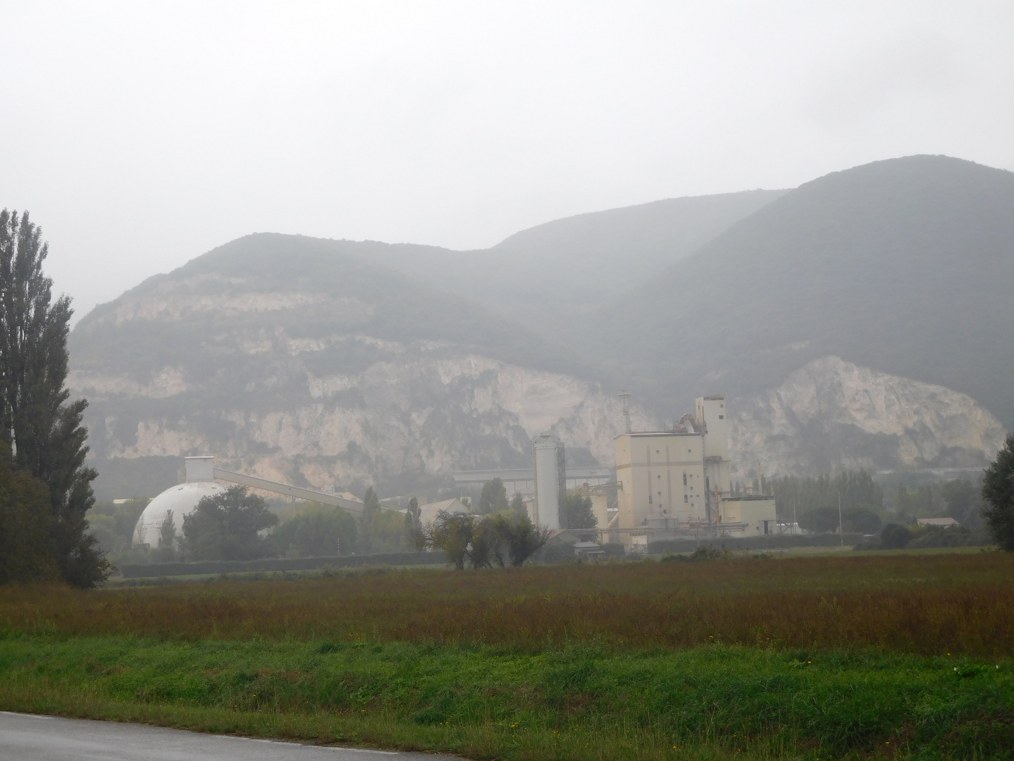 The Ardeche hills here are comprised of limestone and granite. Here below they are processing the limestone. Large pale cuts in the mountains could be seen along here.