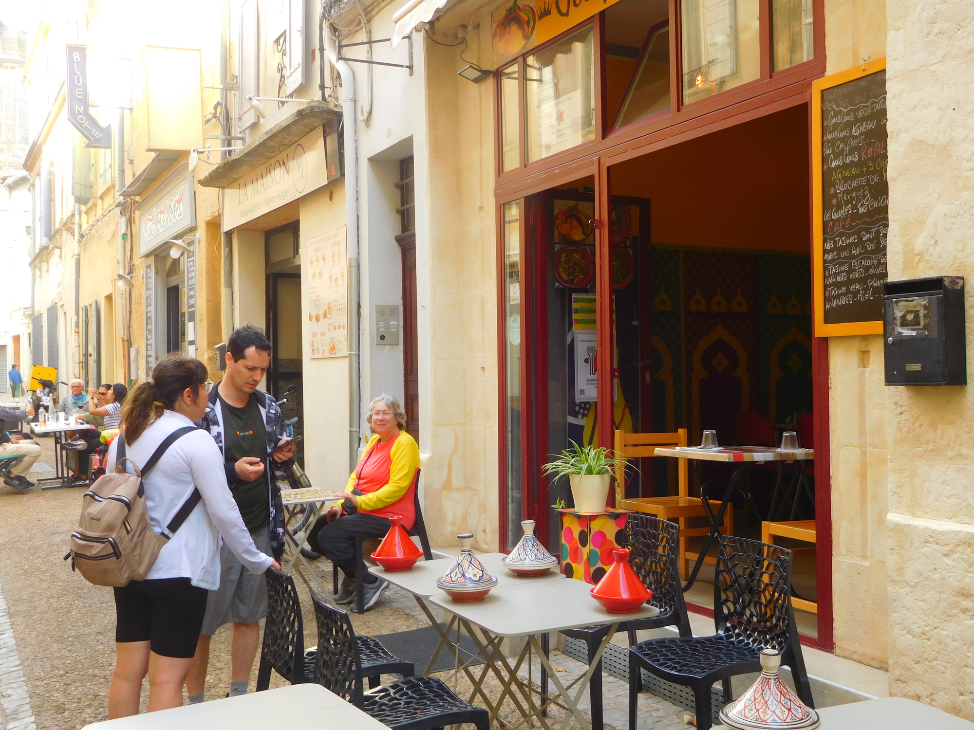 When we did enter Arles, we were again and instantly blown away by its Van Gogh -like beauty. But we dutifully moved to just pass on through - until Dodie spotted a Moroccan restaurant, with tagine and cous cous dishes out on its menu board. We pulled in, and had the most wonderful, dream come true, pair of dishes. We then dilly dallied our way past the Roman ampitheatre, the beautiful souvenir shops, the pastel coloured buildings - it was wonderful.