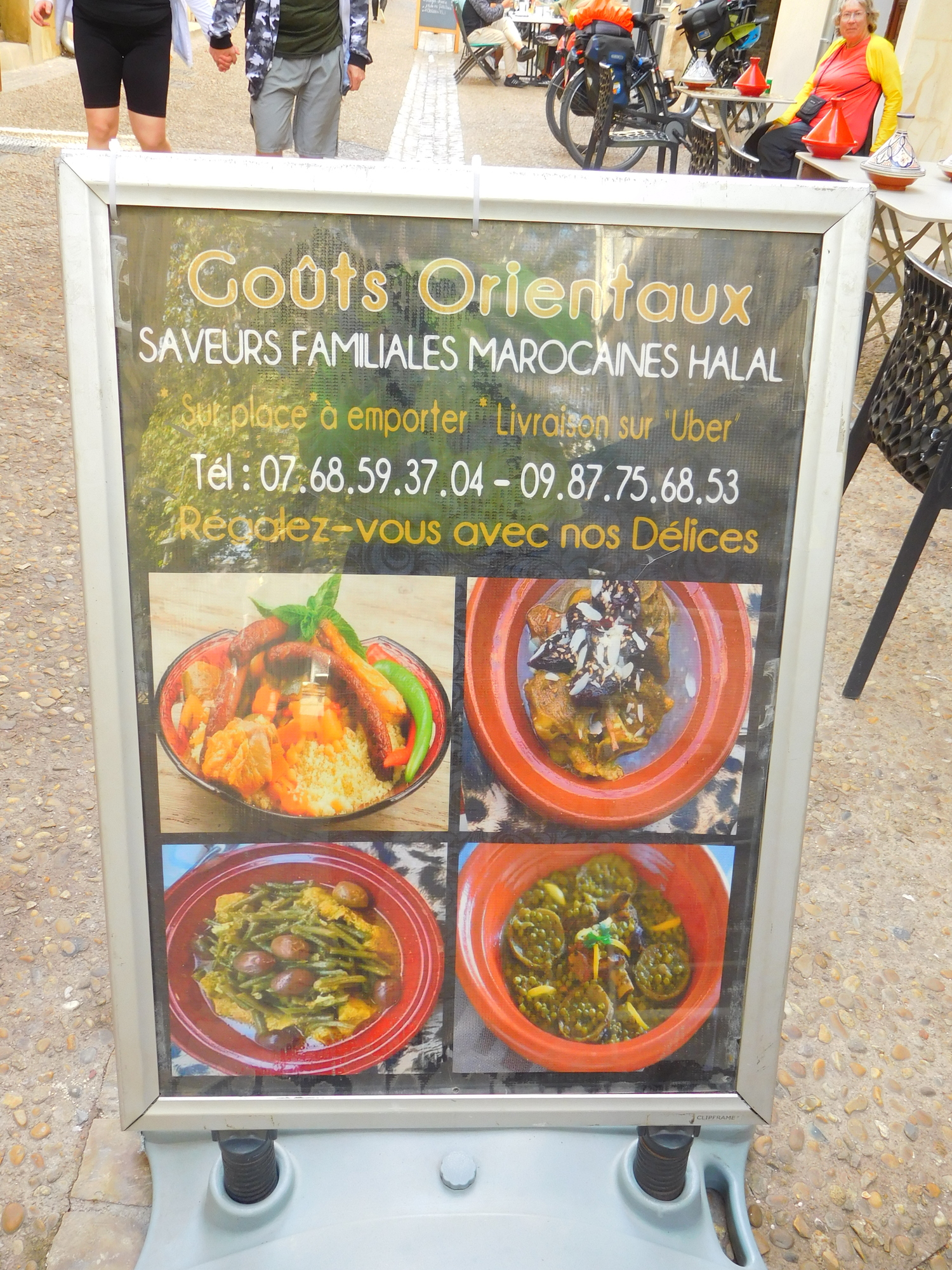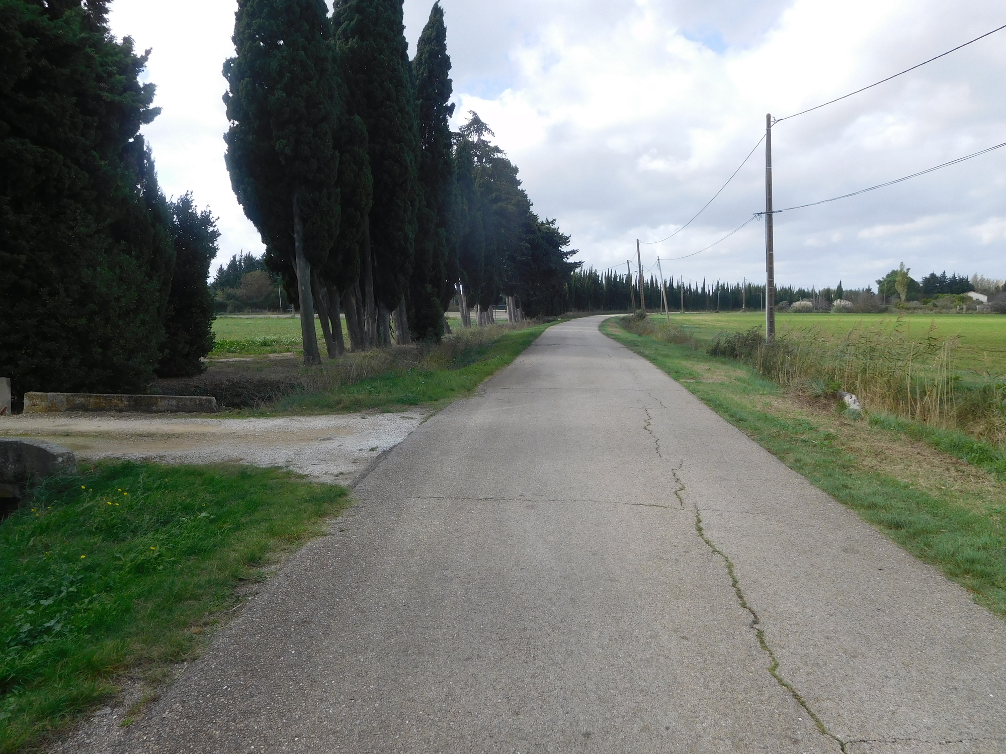 In a nutshell, We travelled through pleasant agricultural lands, between Avignon and Arles, and even finding more Pink Lady apple orchards. But though it all, a horrendous forceful headwind fought us. About ten or so km out of Arles, we connected with a nice bike path, that helped us get to the city in reasonable time. My dream had been to pass through the market, that we knew was today, and to find some tagine for lunch. Dodie was saying that with the wind, we would have no time to dilly dally in Arles, and still get to our stay in Le Sambuc, 25 km south.
