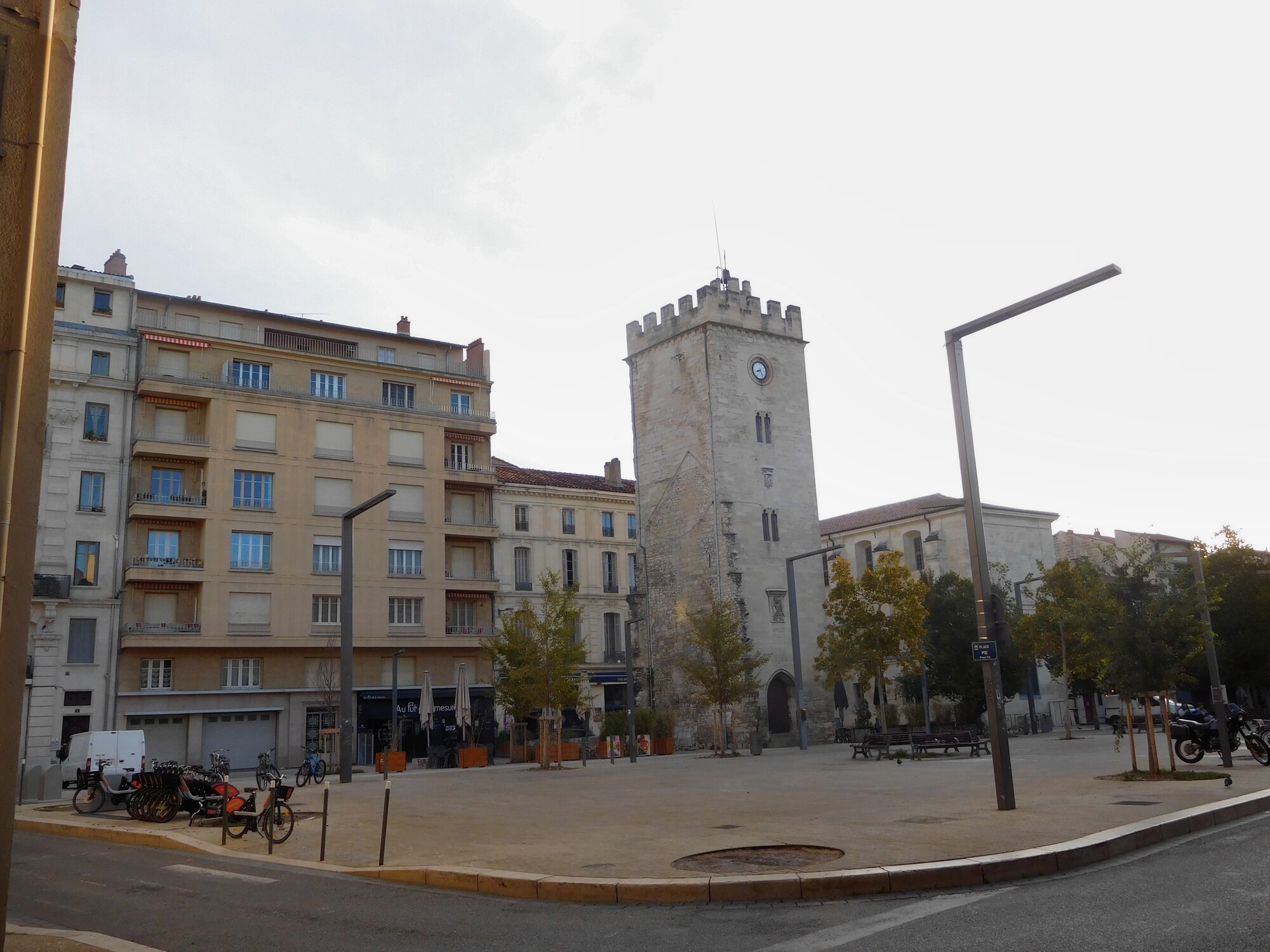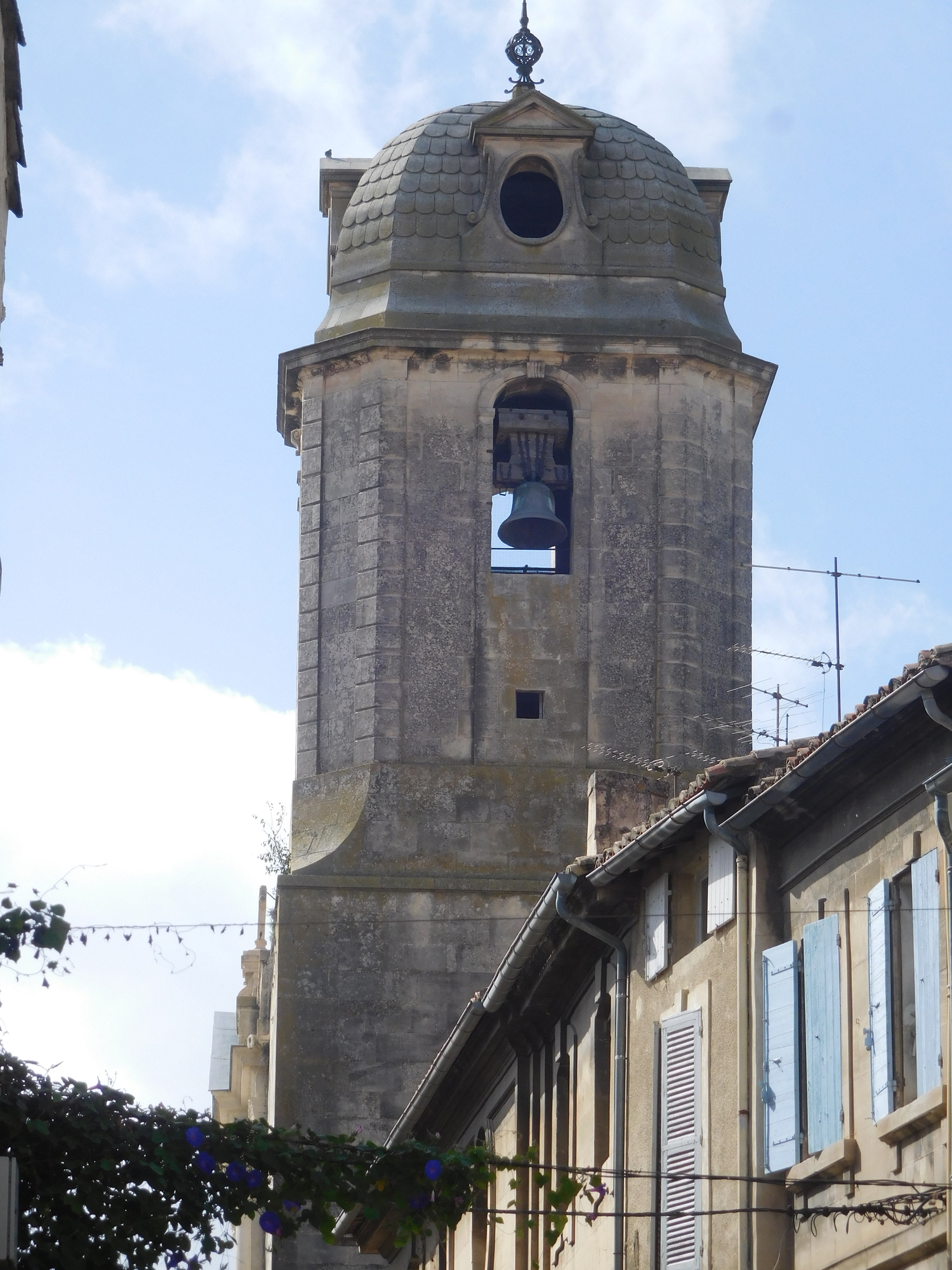 We came out of our "Medieval" hotel and of course were immediately re-immersed in medieval Avignon. Just glancing around, we noticed a clock/bell tower standing in the middle of Place Pie. Google tells us it is the 16th century St Michel tower, but even at that we don't know why it is standing there or who built it and why. OK, gotta move on!