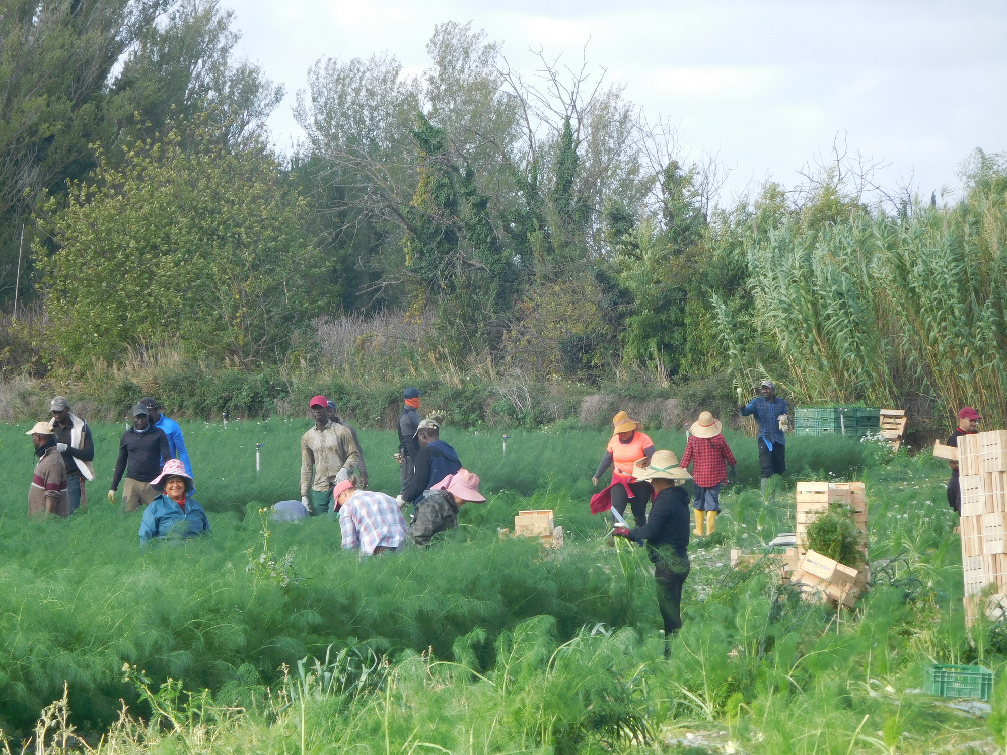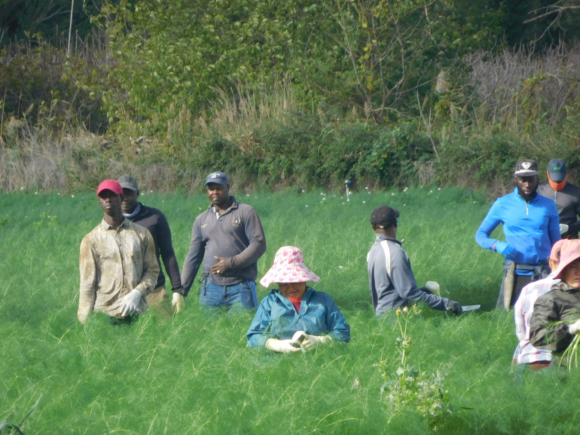 Here we came upon a crew harvesting a large field of fennel. We were interested to see not only that amount of fennel, but that the crew was a mix of apparently African men and Vietnamese women.