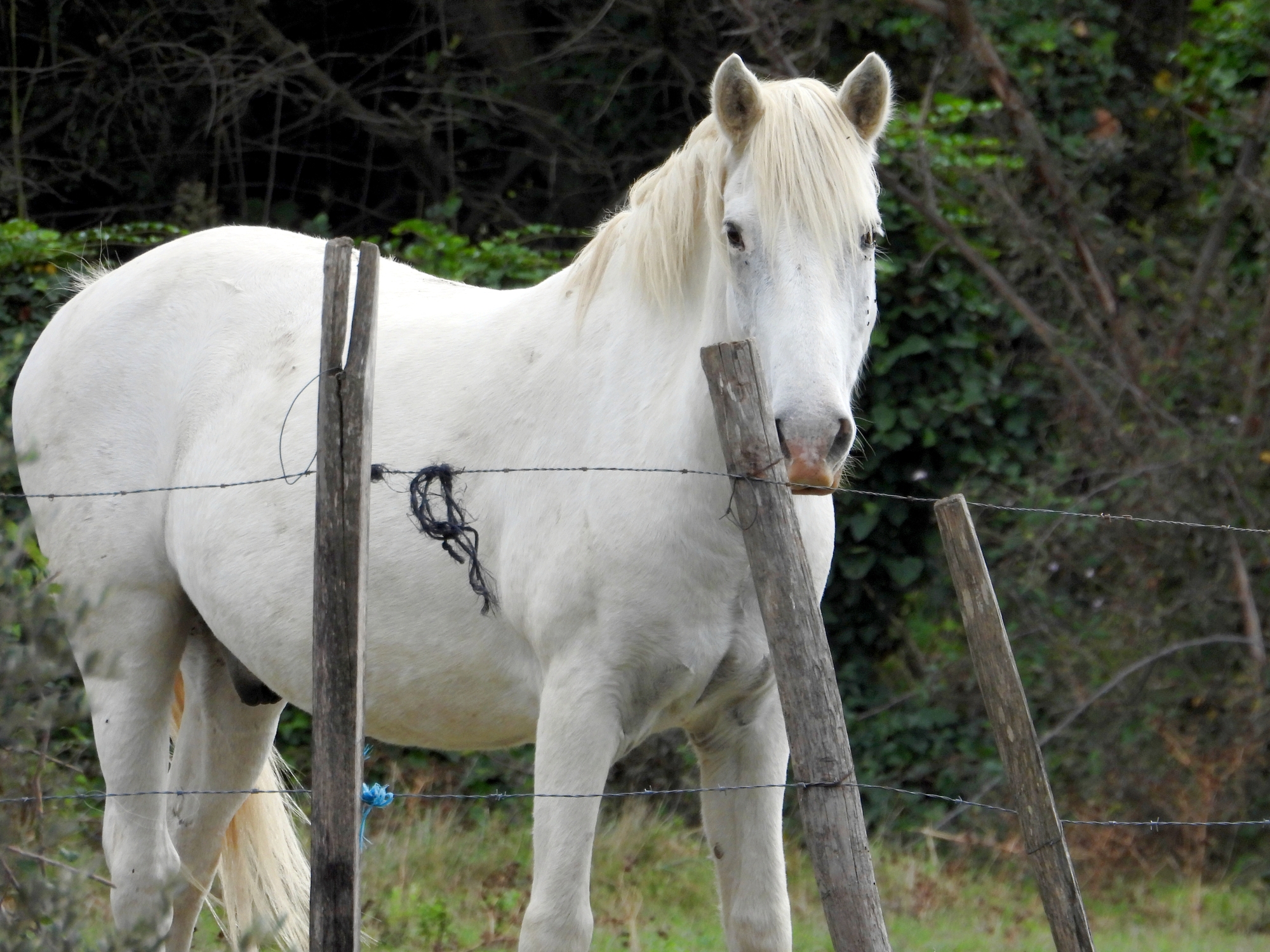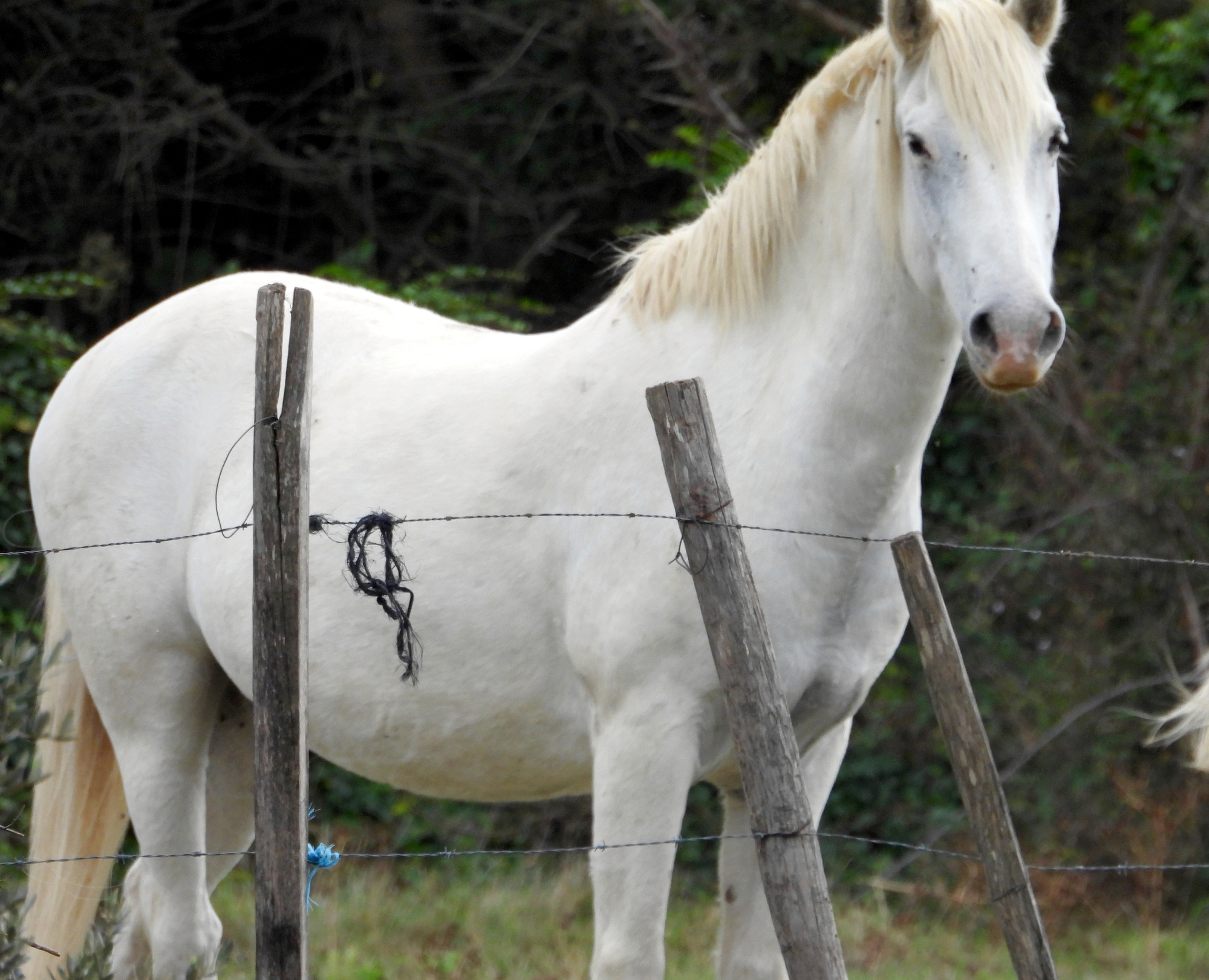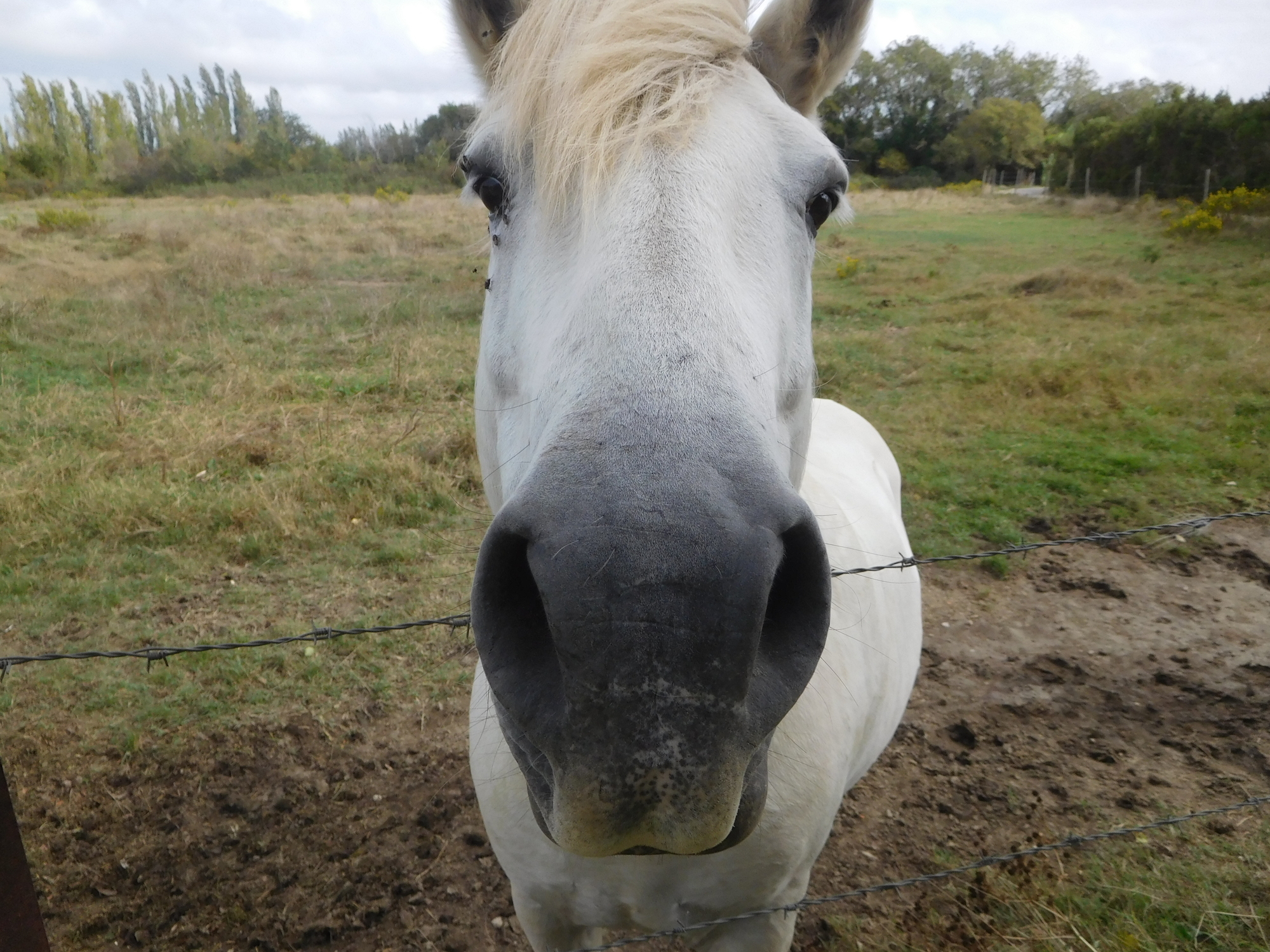 But we were really thrilled when we encountered some of the Camargue horses in person. The one below was very friendly, and got to eat our stolen Yellow Delicious apples. He might not think this was his best photo, but in truth, the movie star ones from the poster were more dramatic.