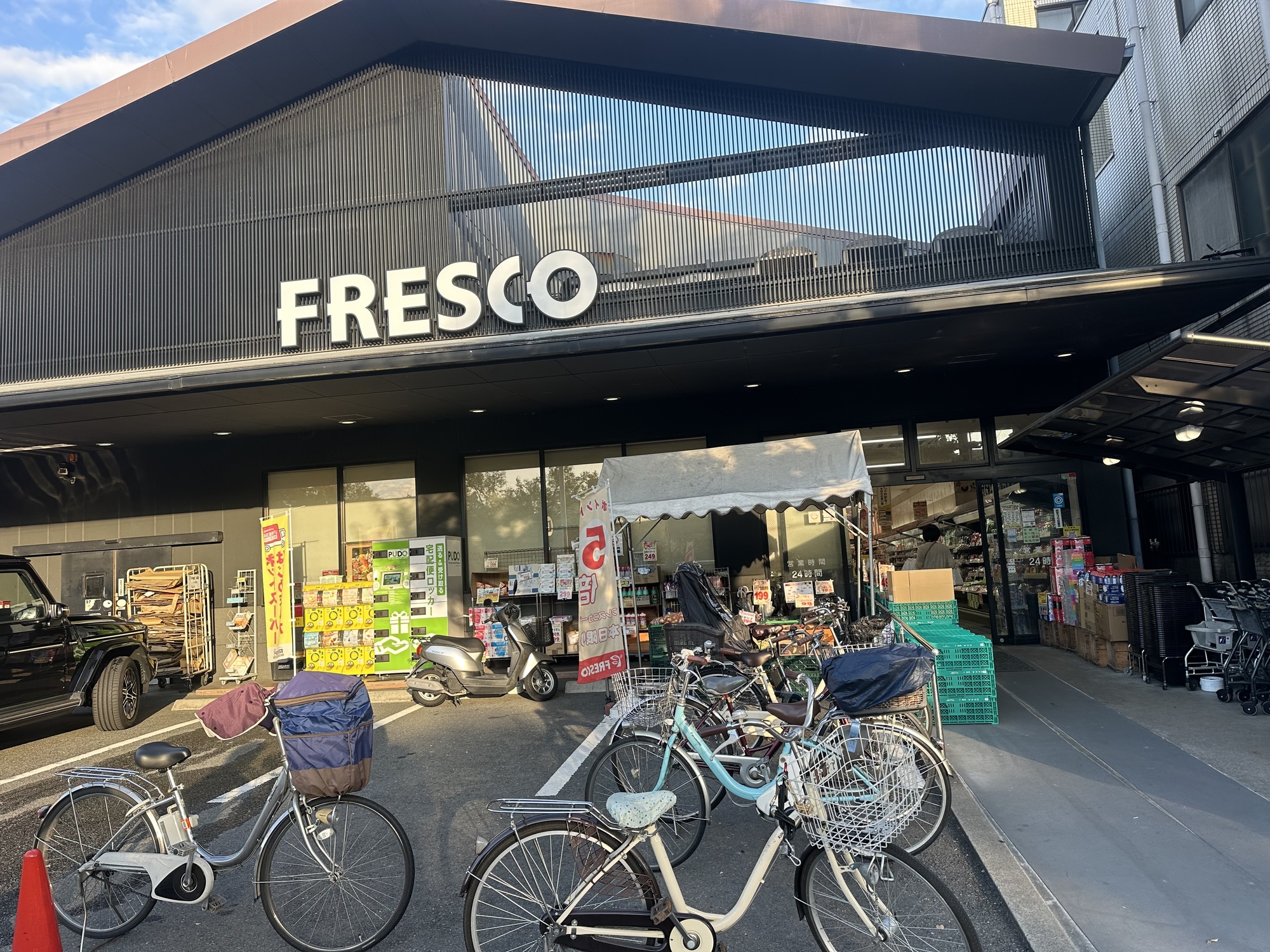 The approach into Kyoto was super fun. A blast down hill, then bang right into tight, packed streets and alleys full of people. After a good while of this, and a bit of an uphill slog along a busy parkway, we realized we were seeing clumps of foreigners on every street corner. Must be getting into central Kyoto! We rounded one corner and spotted a Korean restaurant we’d visited a decade ago — we were in the neighbourhood we stayed in a decade ago! We took a photo of the local grocery store we’d frequented for old times sake.