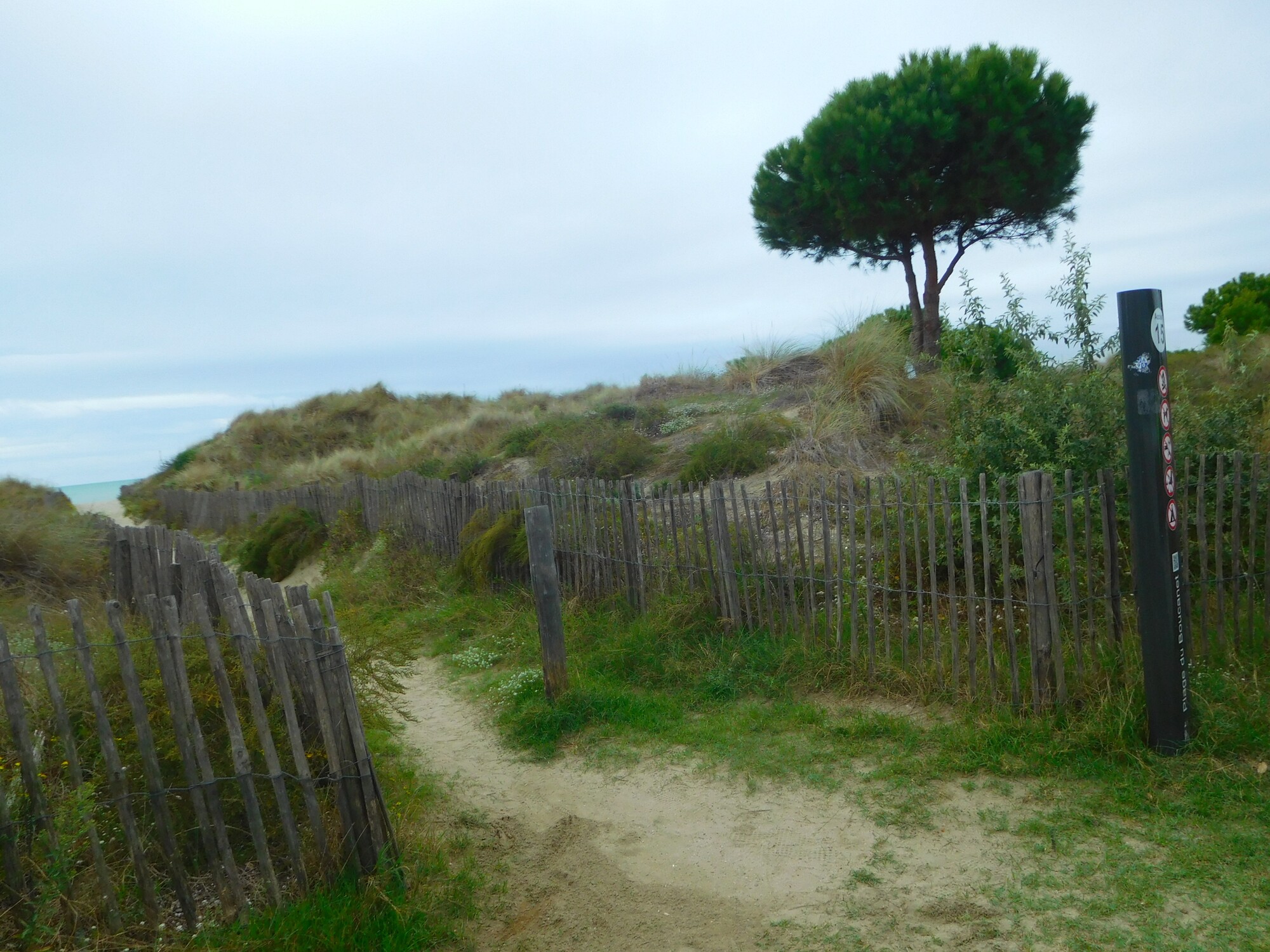 Now we came to the beginning of a long stretch of beach accesses. After La Grand Motte, they are numbered, and we saw numbers up to or beyond 100!