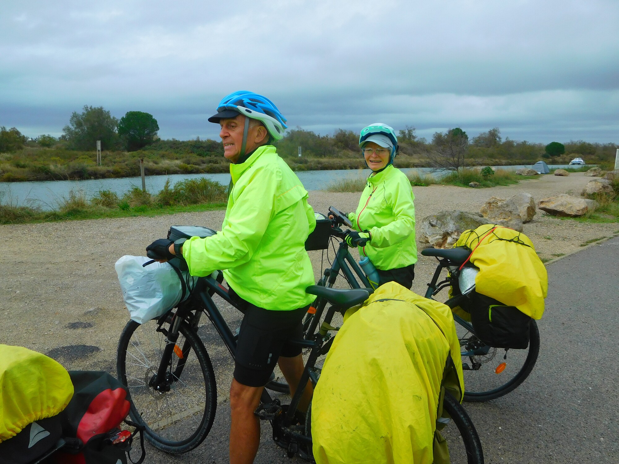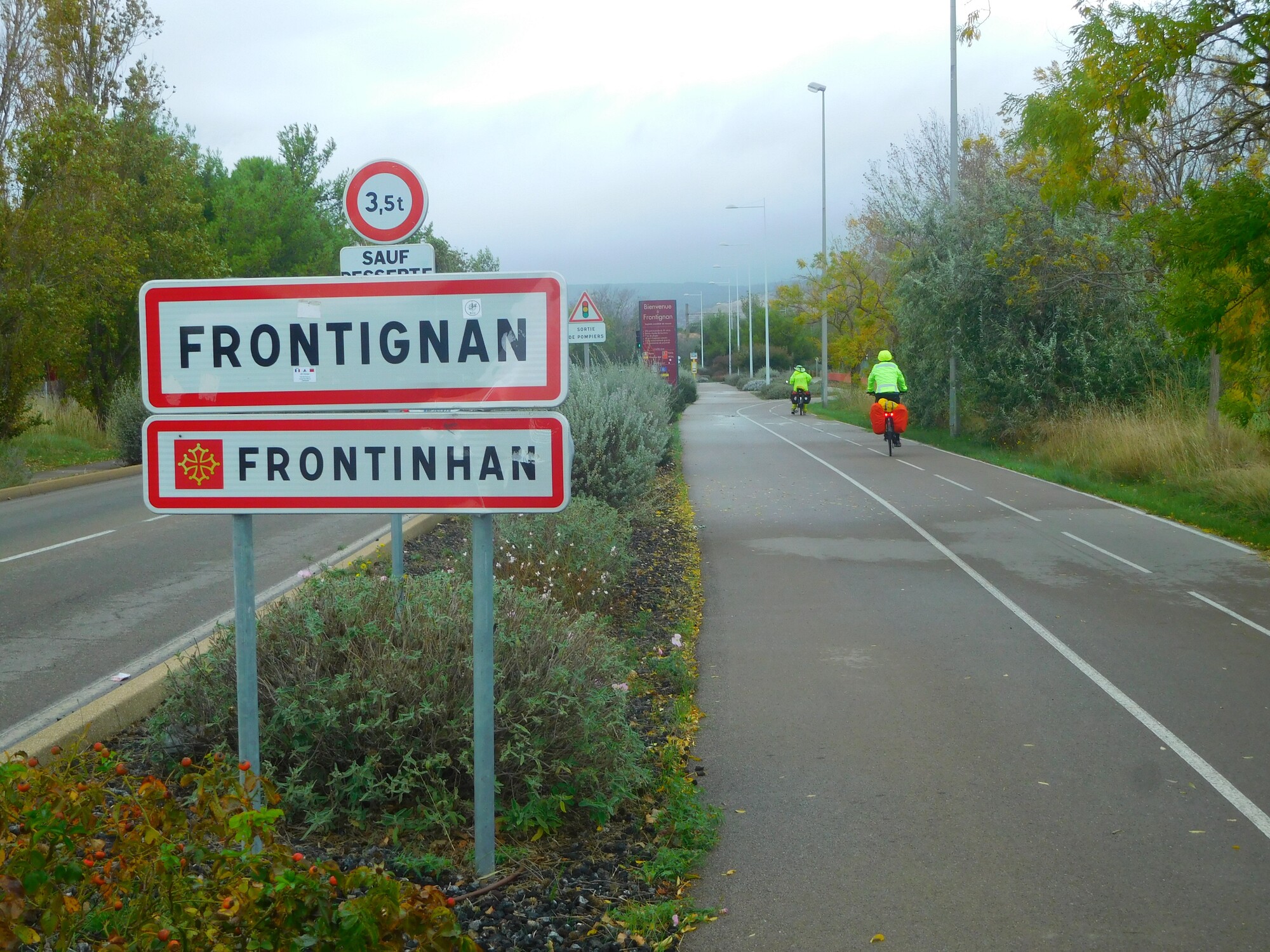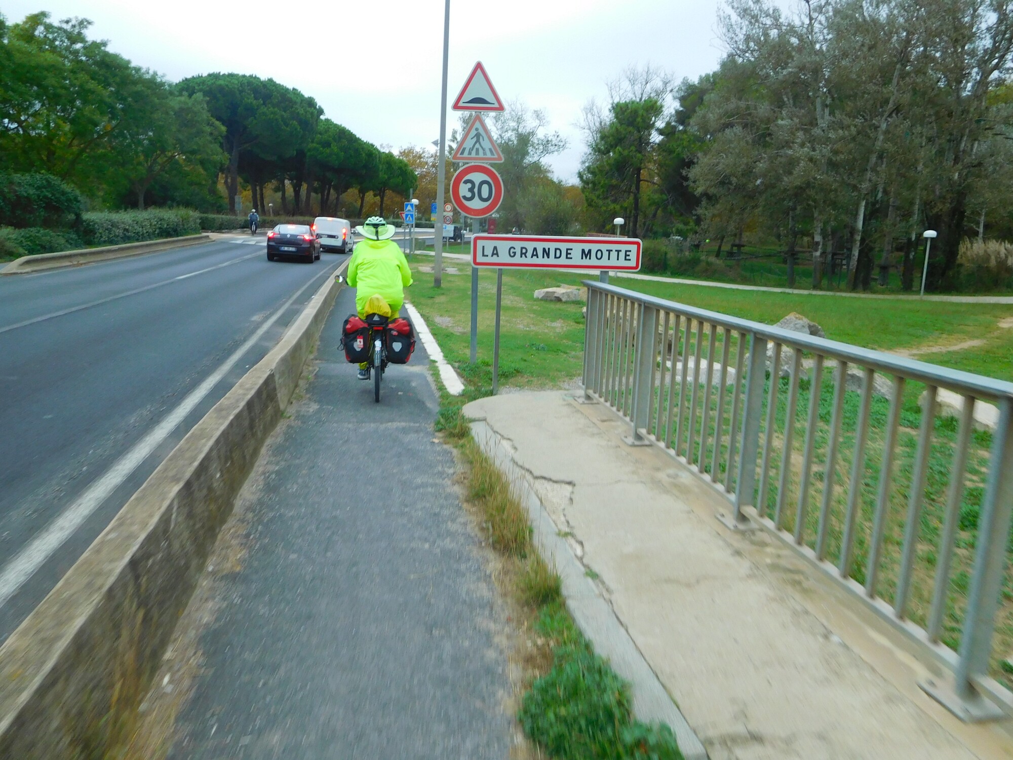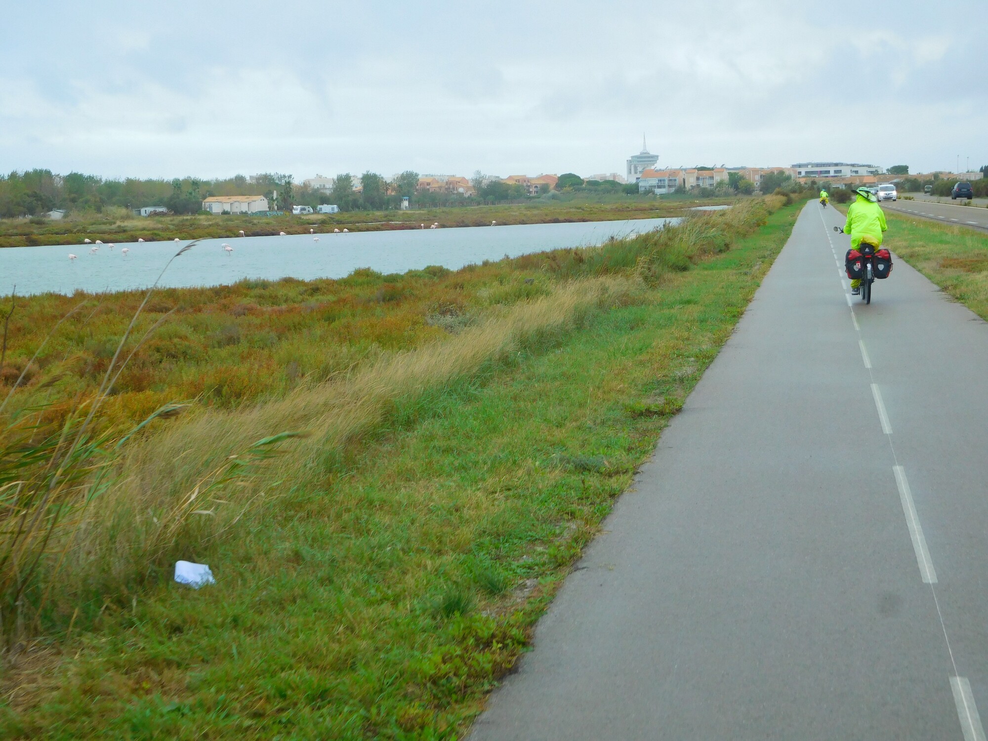 Cycling along this area, we were overtaken by a British couple. Unusually, we did not get their names or their overall plan, but they were heading the same way as us, while only wanting to reach Frontignan today. We cycled together for a bit, making a nice yellow troupe, I thought.