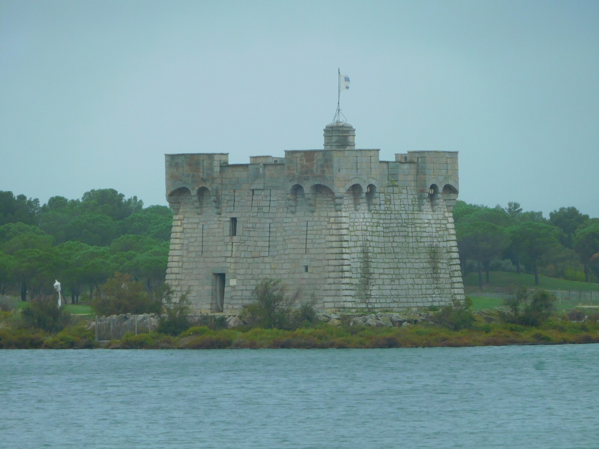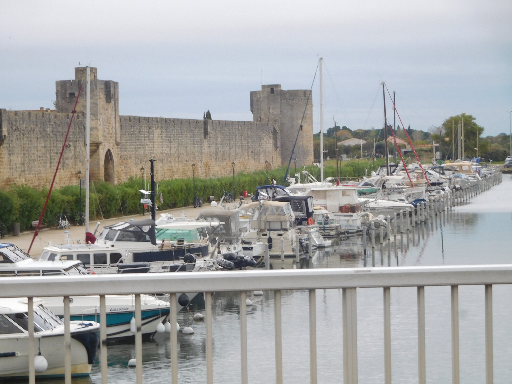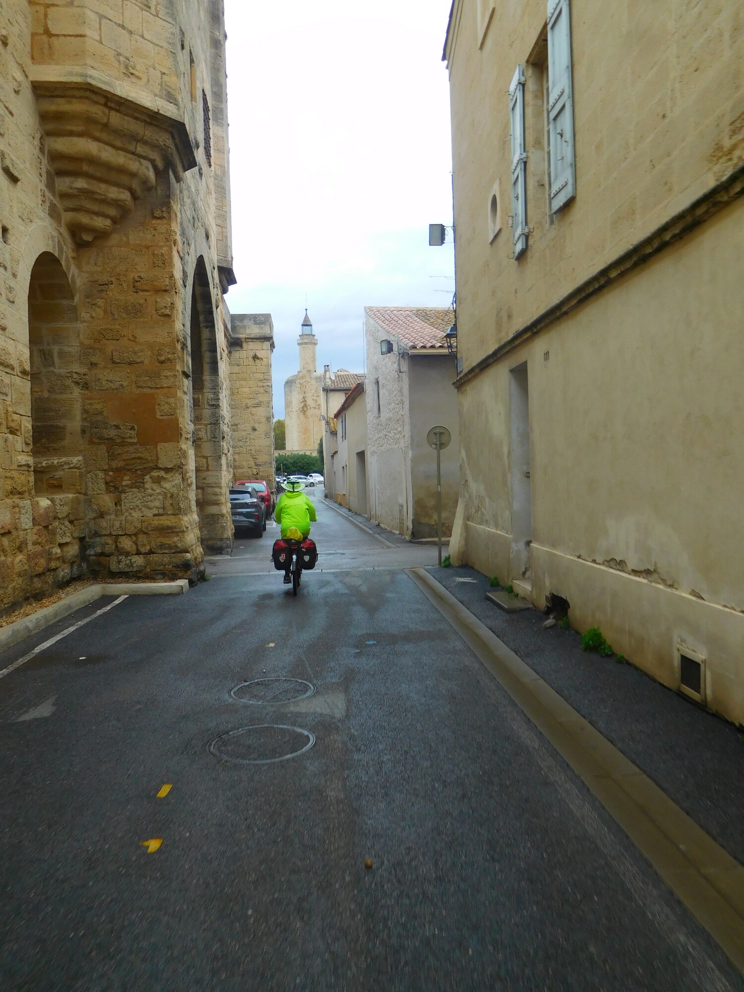 We set off on the Aigues Mortes to Sete canal, something that would figure importantly in our routing later in the day as well. We soon could see one of the towers of Aigues Mortes, and then we were right there.