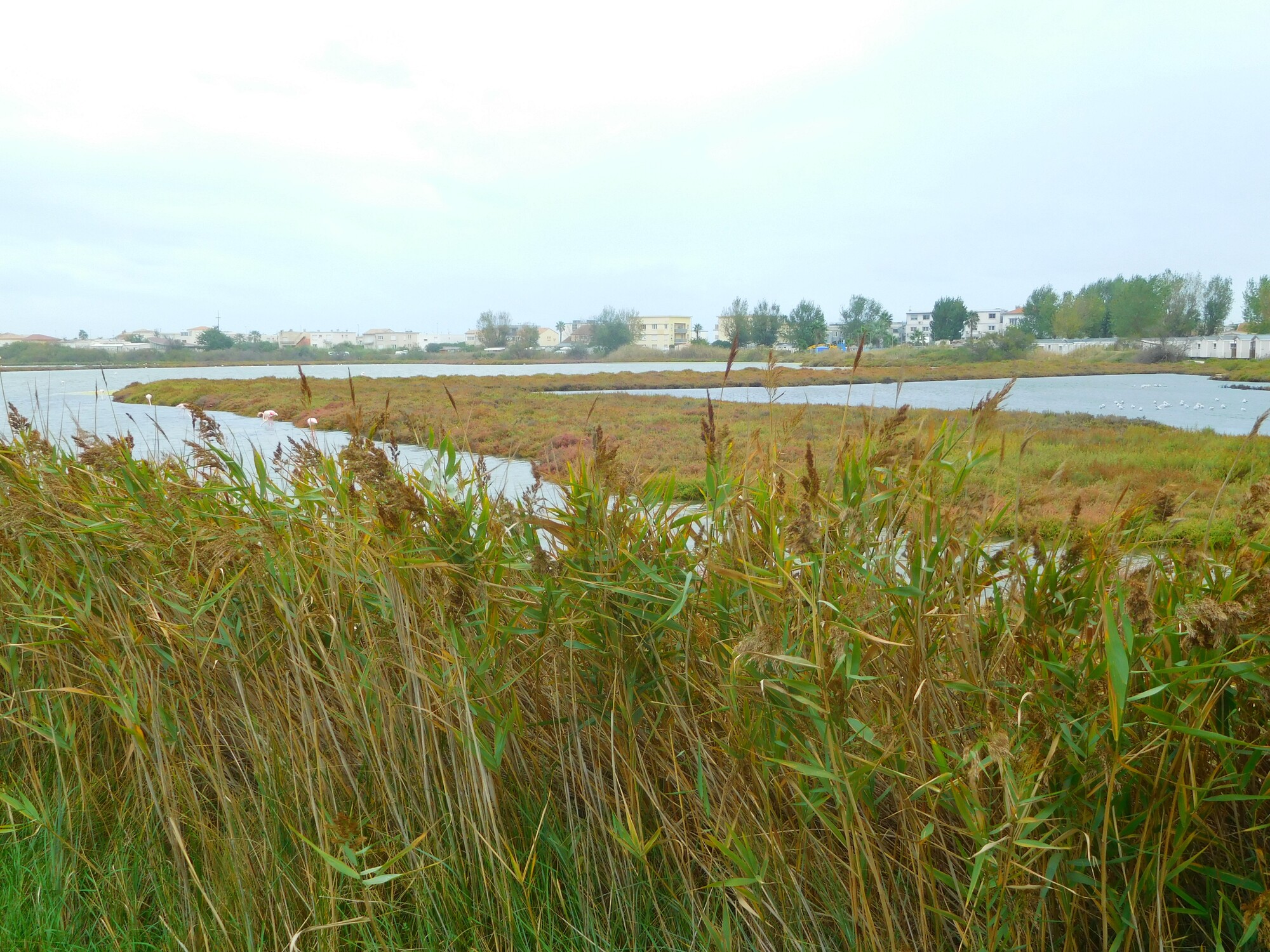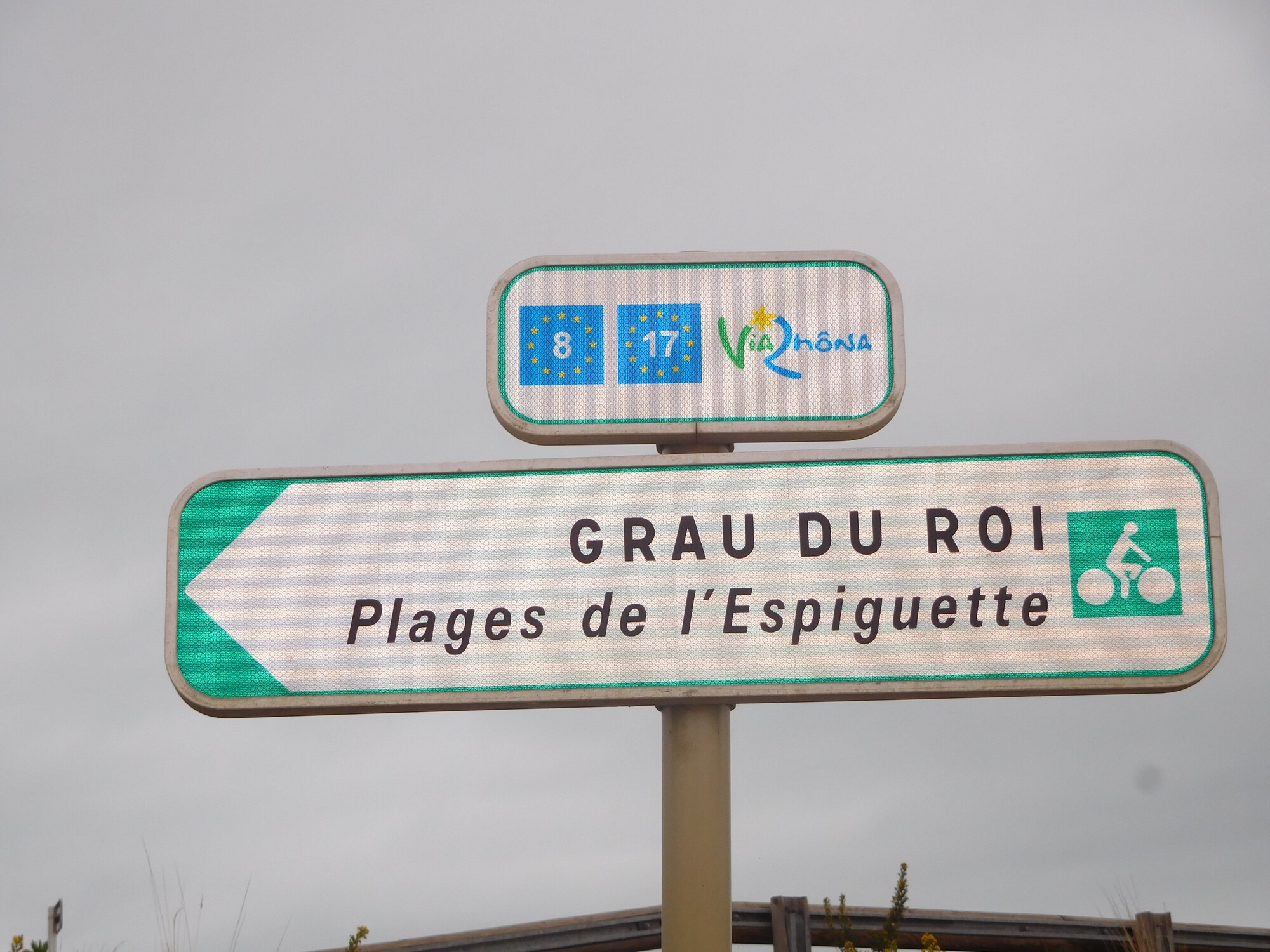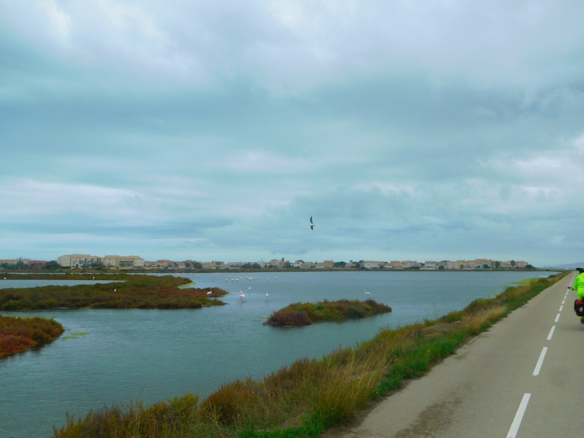 We have stood at this point three times in the past. The first time we went way down what we thought was the canal, but it was only a long spit, that petered out and stopped. We had to backtrack a long way, ended up sleeping on the beach, and waking to the sounds of flamingos. That made a great memory, but it's not one we would deliberately relive. The next time, I think, the path was closed due to high winds or waves or something. I can't recall what we did then, but the well developed EV8 alternative was not there. And another time, we made it through the canal!
