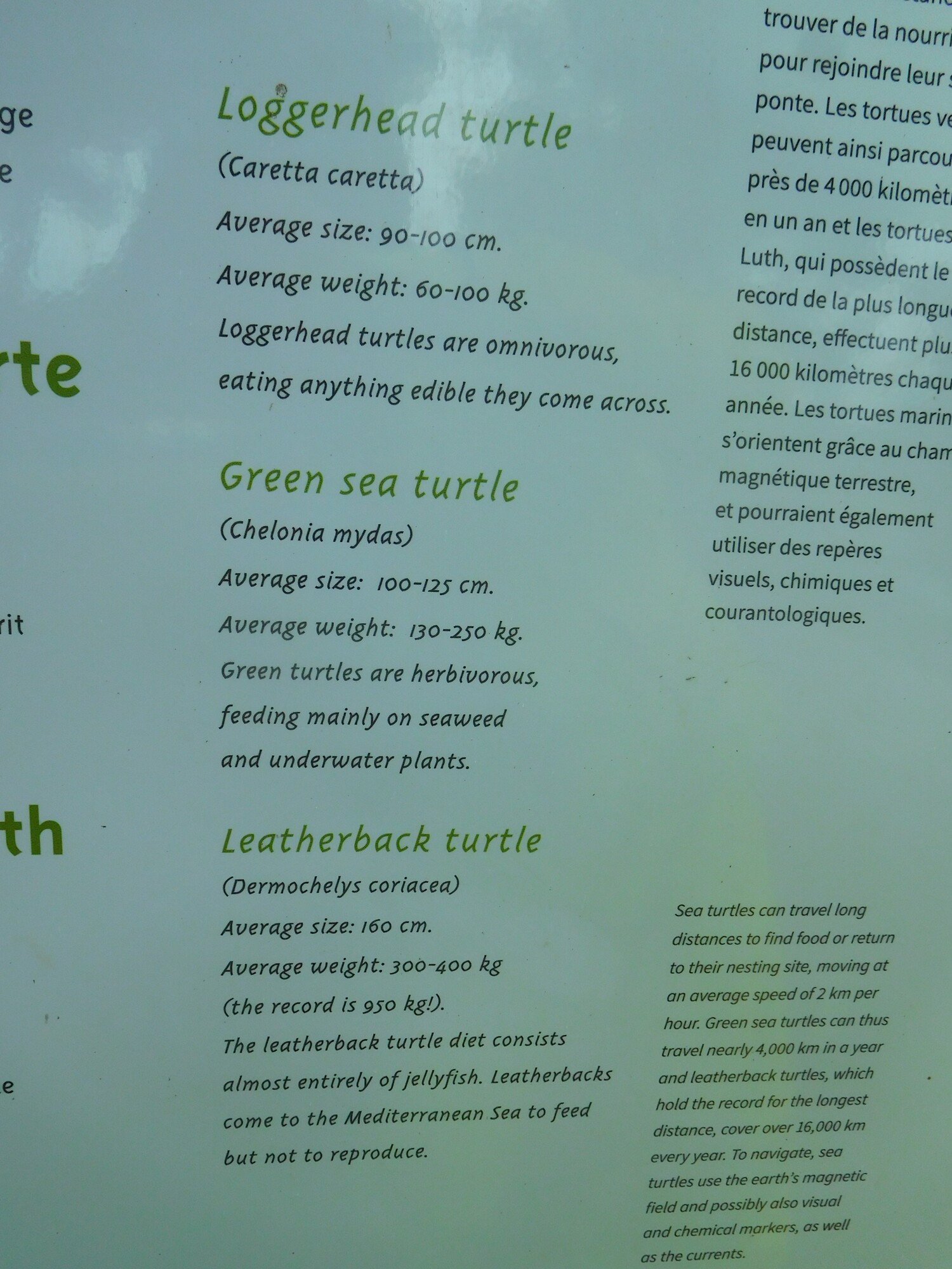 This panel is more interesting. There is a sea turtle research and rescue place here. There are three types of turtles in the Med, all endangered. The Loggerhead is the most plentiful.