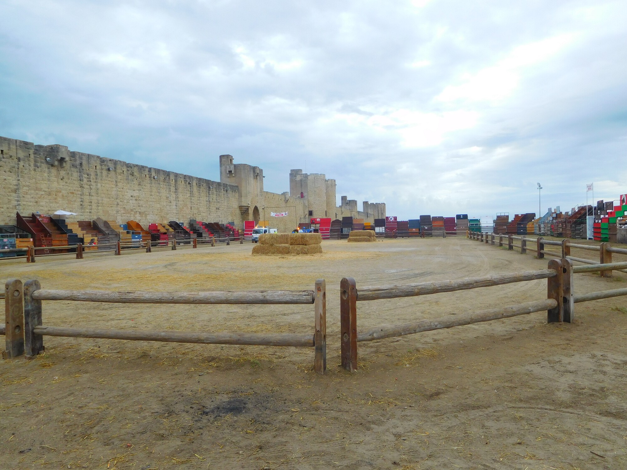 One of the festive activities was going to be a bull fight. A portable bull ring had been installed. The photo is taken from inside.