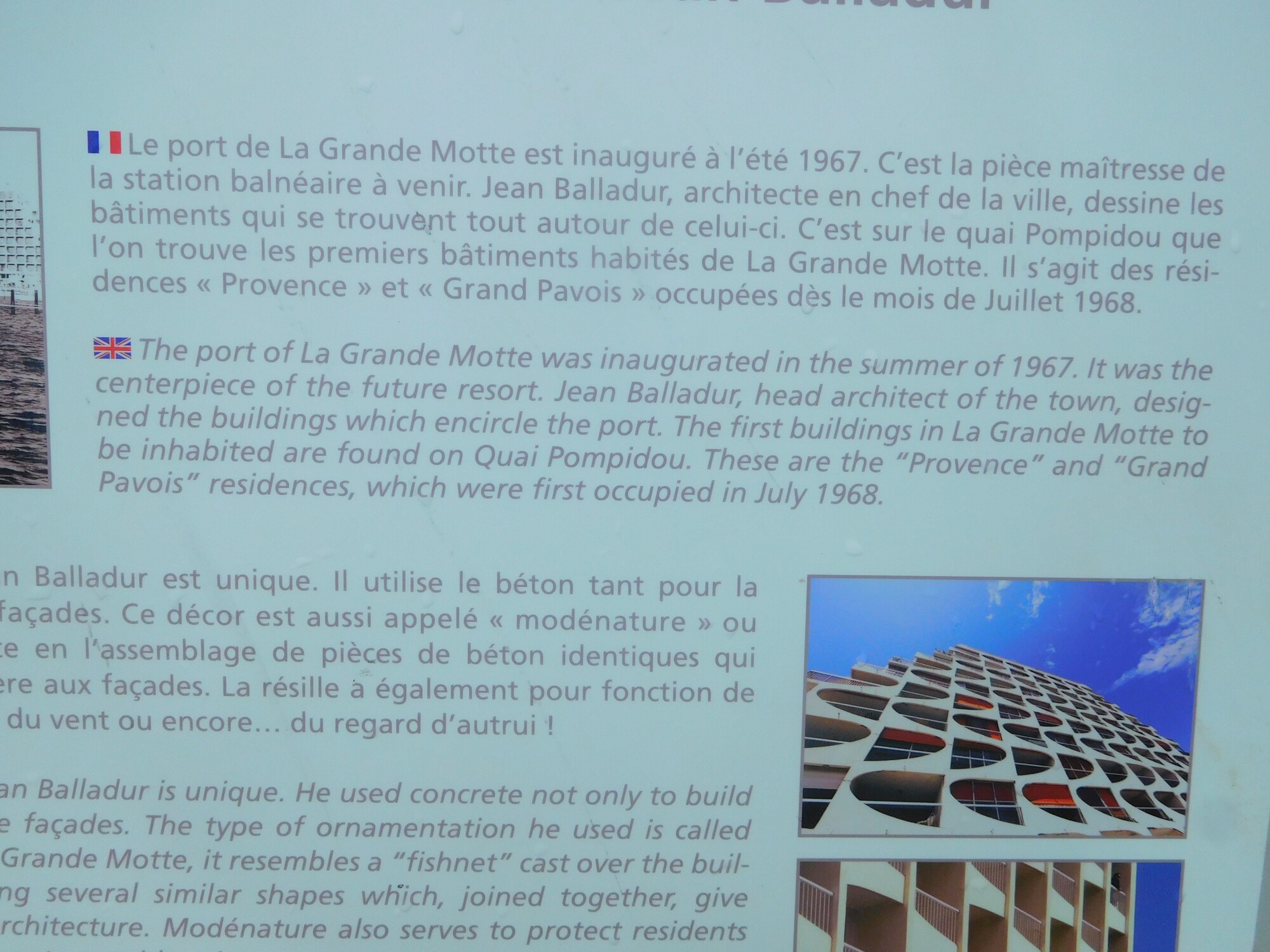 Grand Motte has a unique white concrete architectural style, that we had always noticed but never thought it might have a special back story.