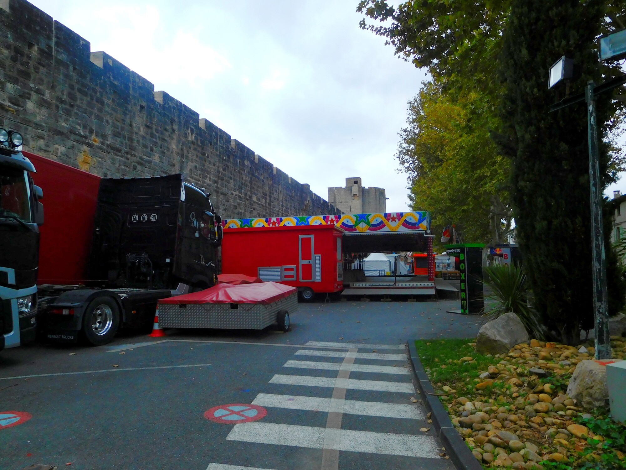 Today also, there is a festival going on, which includes all that fun fair junk also parked along the wall.