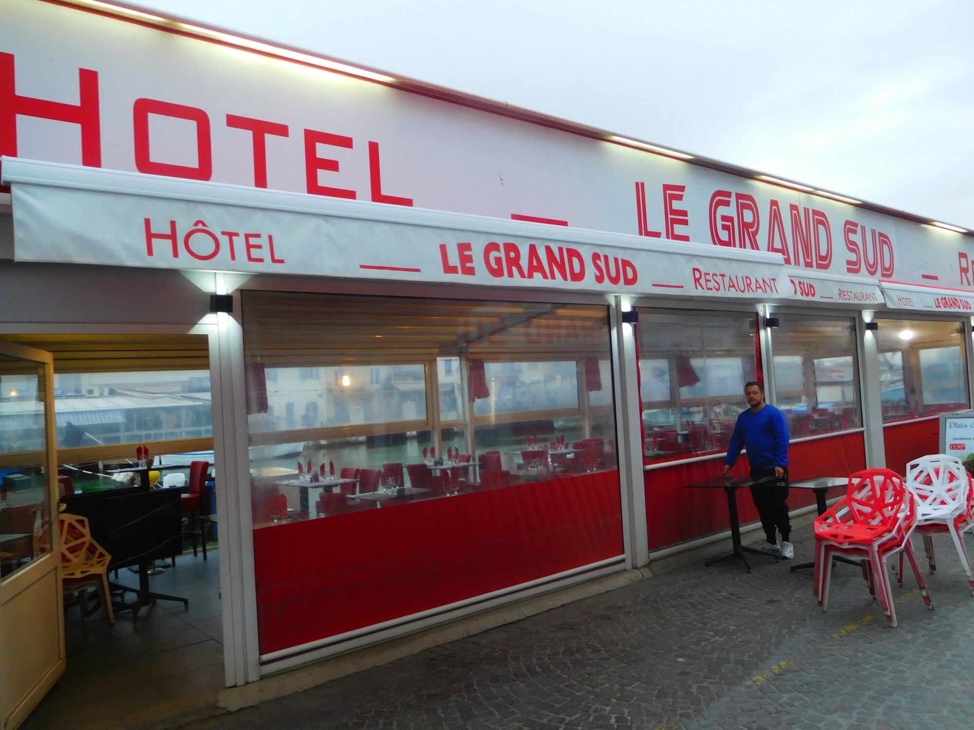 Our hotel in Sete is the Ibis Budget, one we may shy away from as ultra basic. But we find (this one anyway) does have good bike storage, an elevator, lots of electrical outlets, good wifi, and just enough space. Some more classical French hotels do not actually come up to that standard.