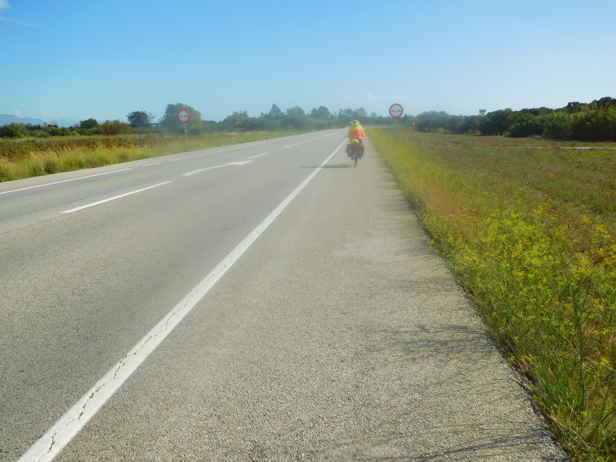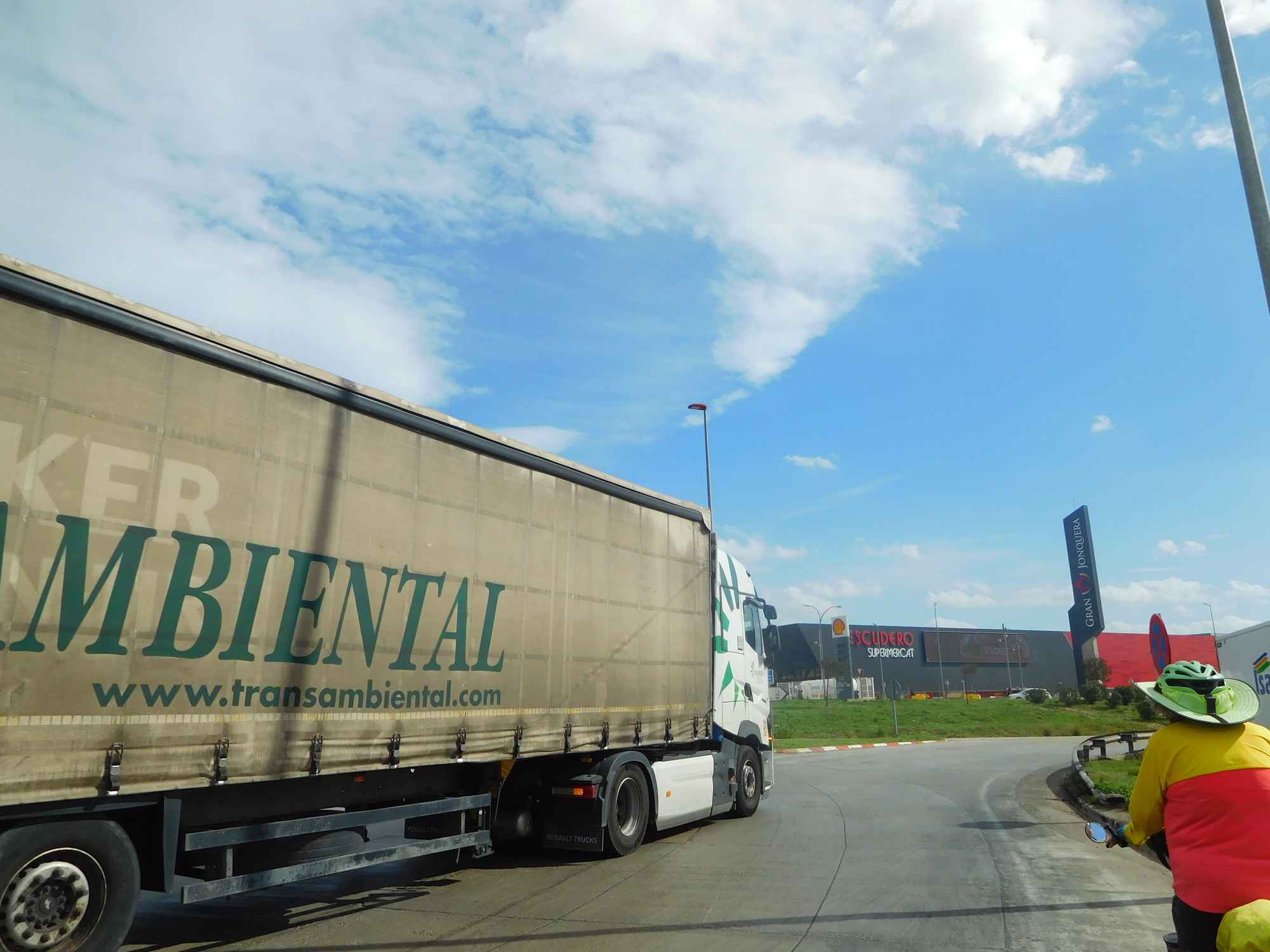 At the bottom of the hill is La Jonquera, which is a frenzy of transport trucks, swirling past giant supermarket big box stores. This is where the highway NII begins for us. It's another of that genre of high speed roads, but with a decent shoulder.