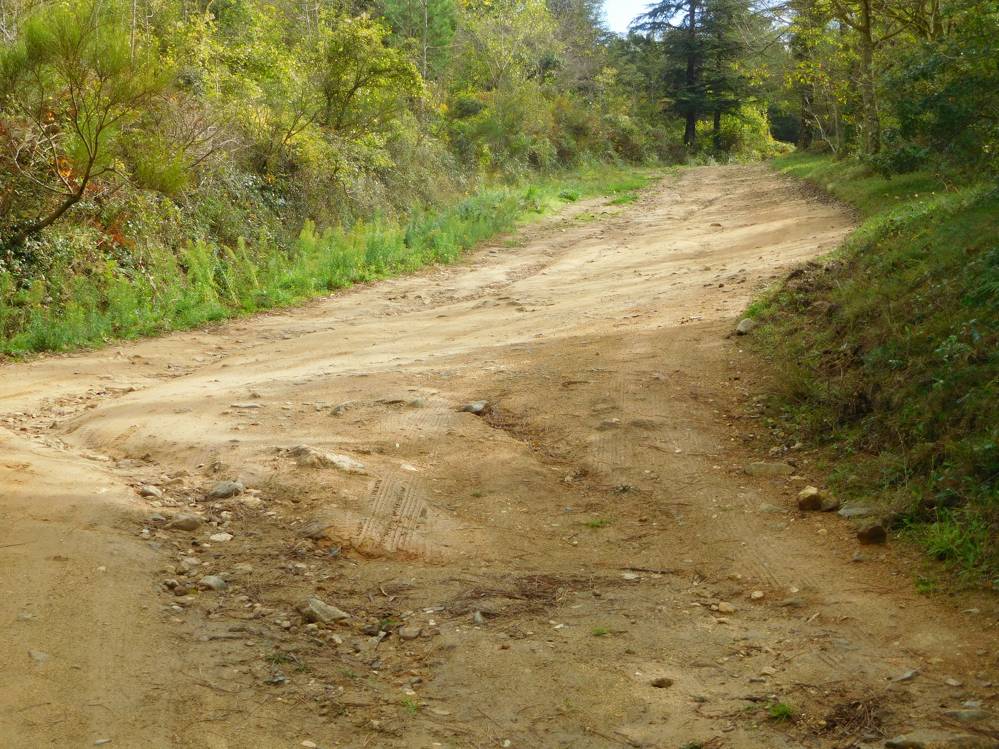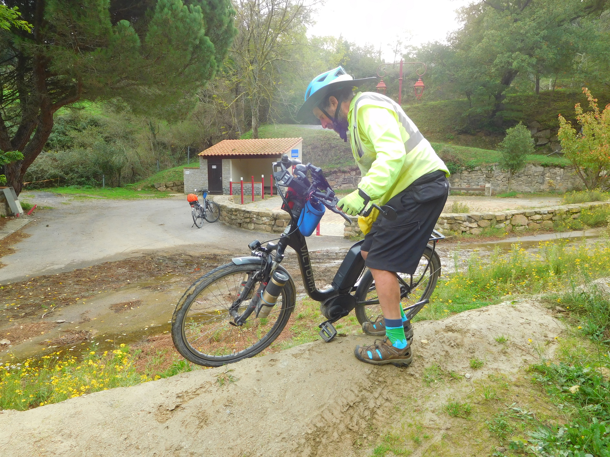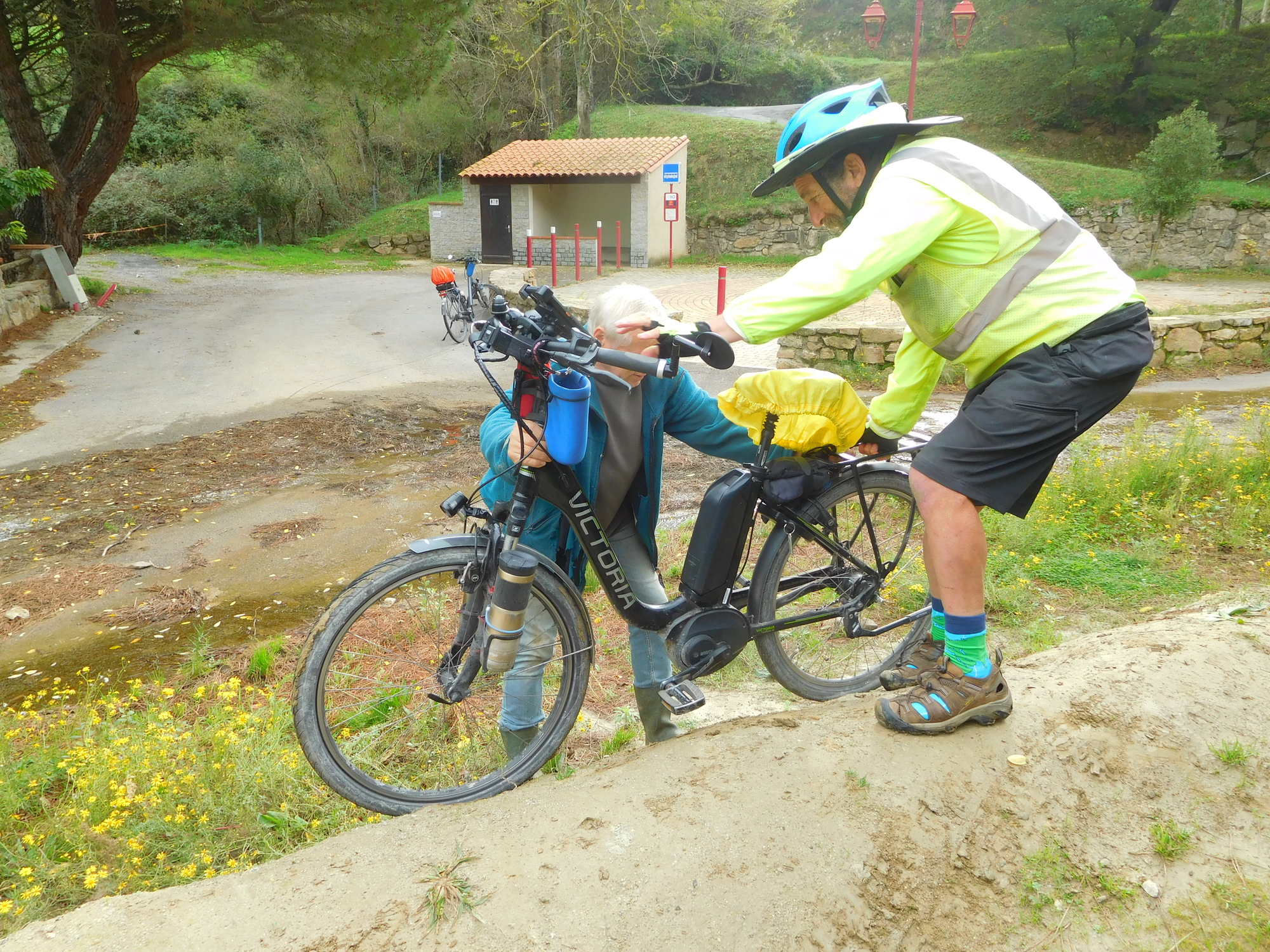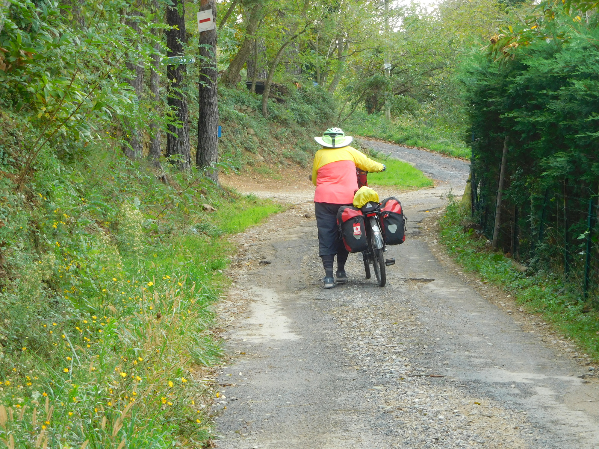 We set off down the Spanish side, where the road is very good, but steep and seemingly going on forever. There is no way we or anyone else would want to ride (push!) up this thing. On the other hand, it was only 8 km (straight) down to Agullana, so with patience it might be possible to climb it.