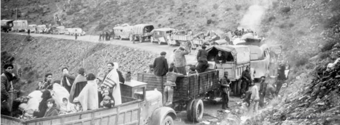 Our adventure attracted at least one more of the neighbours (and his dog), and we enjoyed chatting to both of them. It turned out the man was Patrice Herman, head of an organization called Cami of Hope, which is engaged in documenting the flight of Spanish people over the passes here from the Franco tyranny. Their objective is " To highlight the history of Catalonia by establishing active and participatory links between Southern Catalonia (Spain) and Northern Catalonia (France), with particular emphasis on the historical event of the Retirada and the Republican exile of 1939." You can find their website here. We haven't looked at it in detail yet, but it has some evocative photos, like this - showing a far different scene from the Grampies use of the pass today: