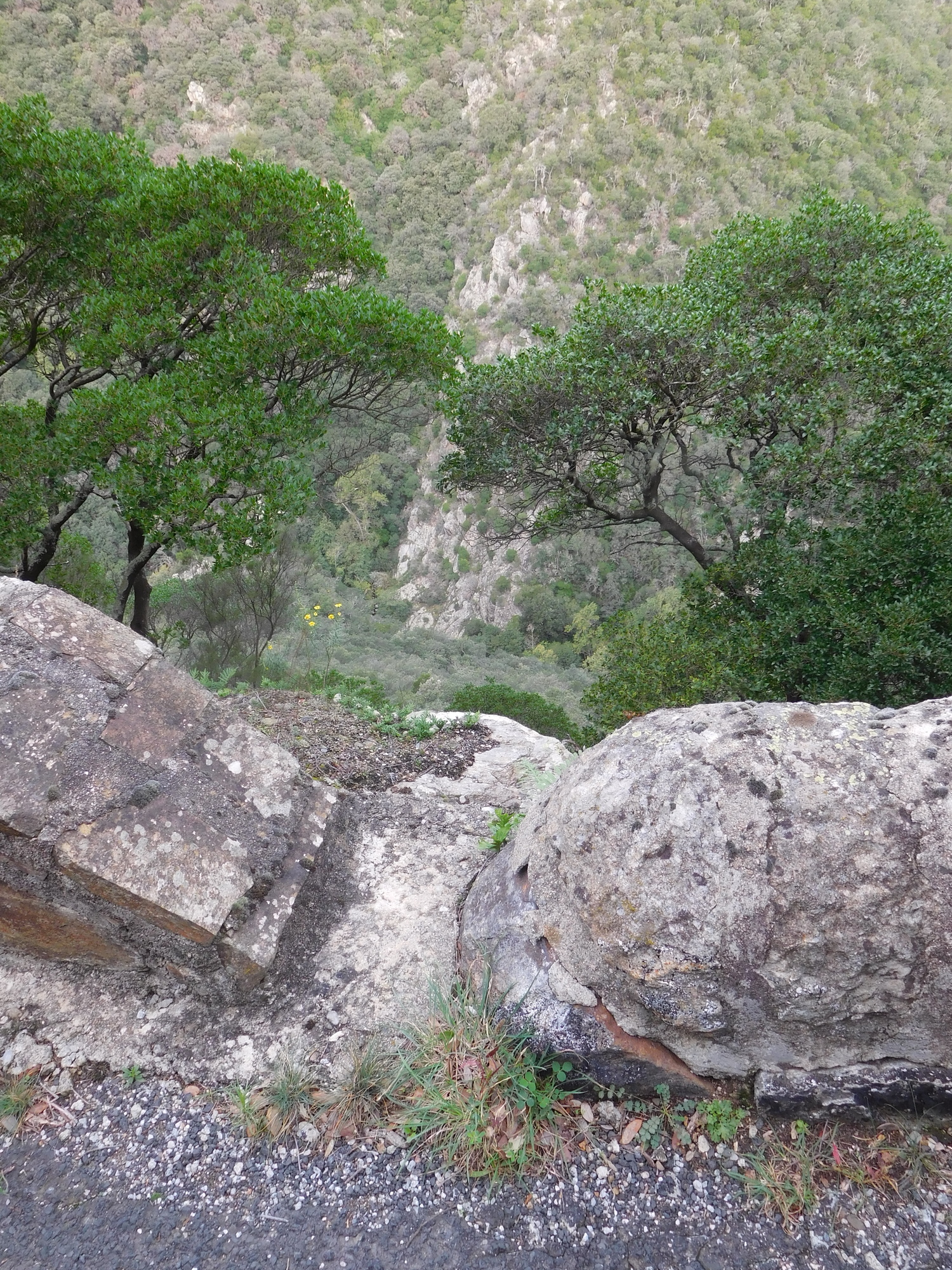 Now the climb begins. The road snakes up and up, with views opening to the right down into deep chasms.