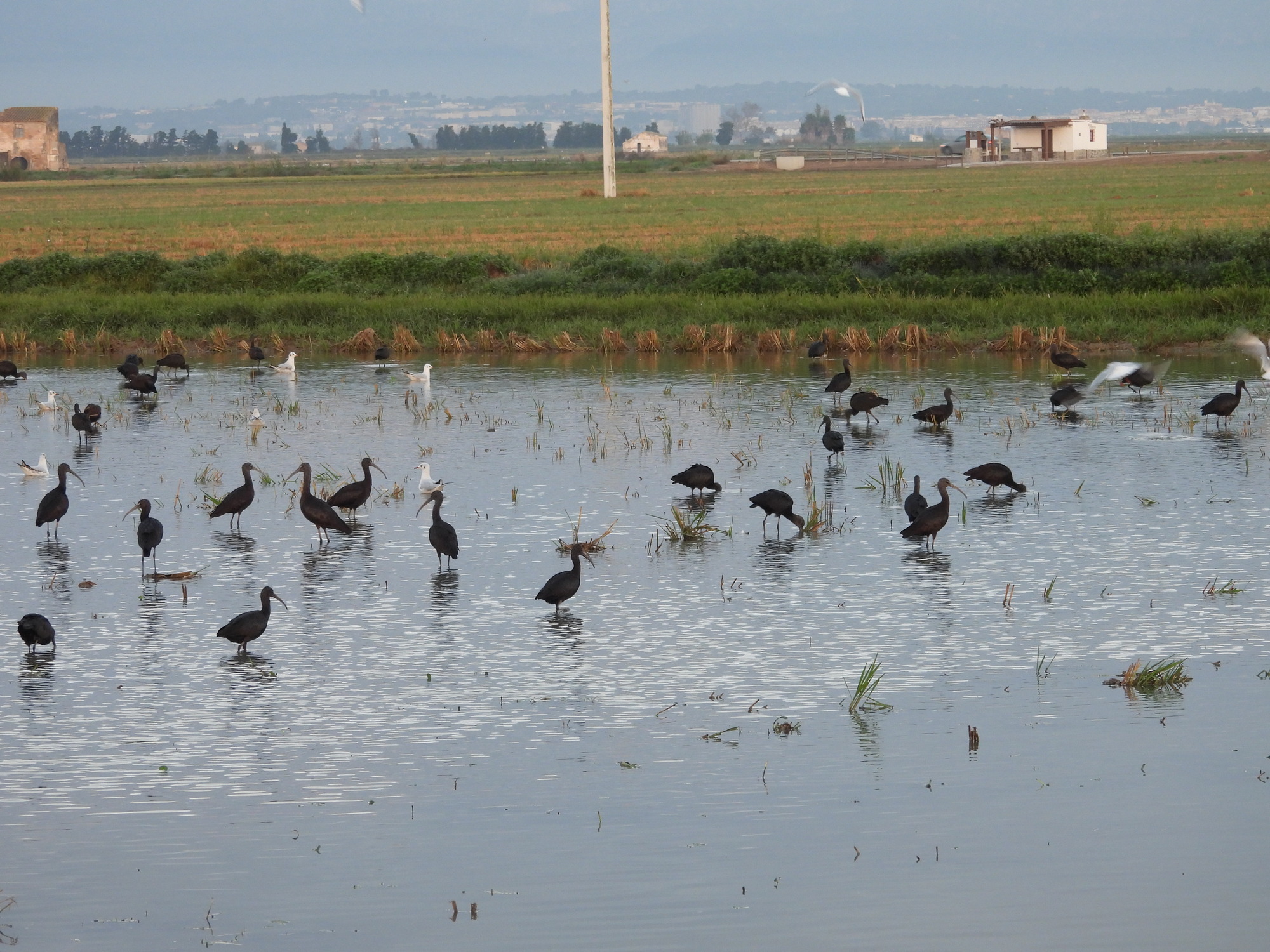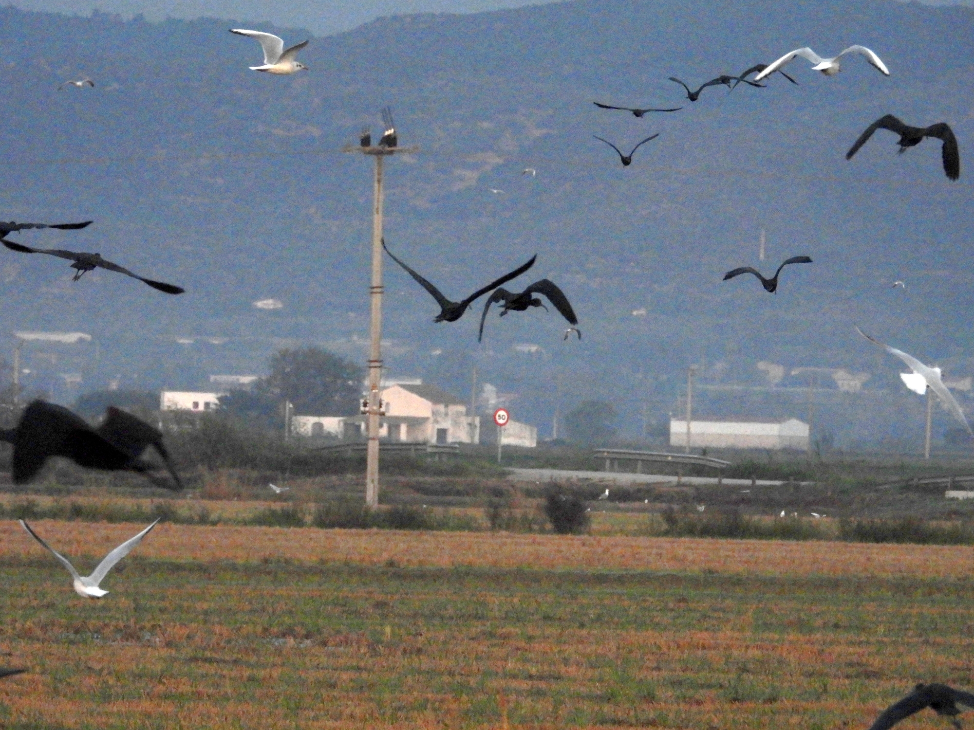Amposta lies at the beginning of the delta of the Ebro River. The delta is one of the largest wetland areas in the Mediterranean. Amposta in the 4th century was a seaport, but now it is 24 km from Amposta to the sea, indicating the vast amount of sediment deposited. Almost all the area of the delta is currently devoted to rice cultivation, with a certain amount of other agriculture. All that rice, the tilling of the soil that comes from the cultivation, and the flooded areas good for crustaceans to grow, have supported a huge bird population. There are great flocks of them, especially on newly cultivated plots or paddies, making this a true birding paradise.