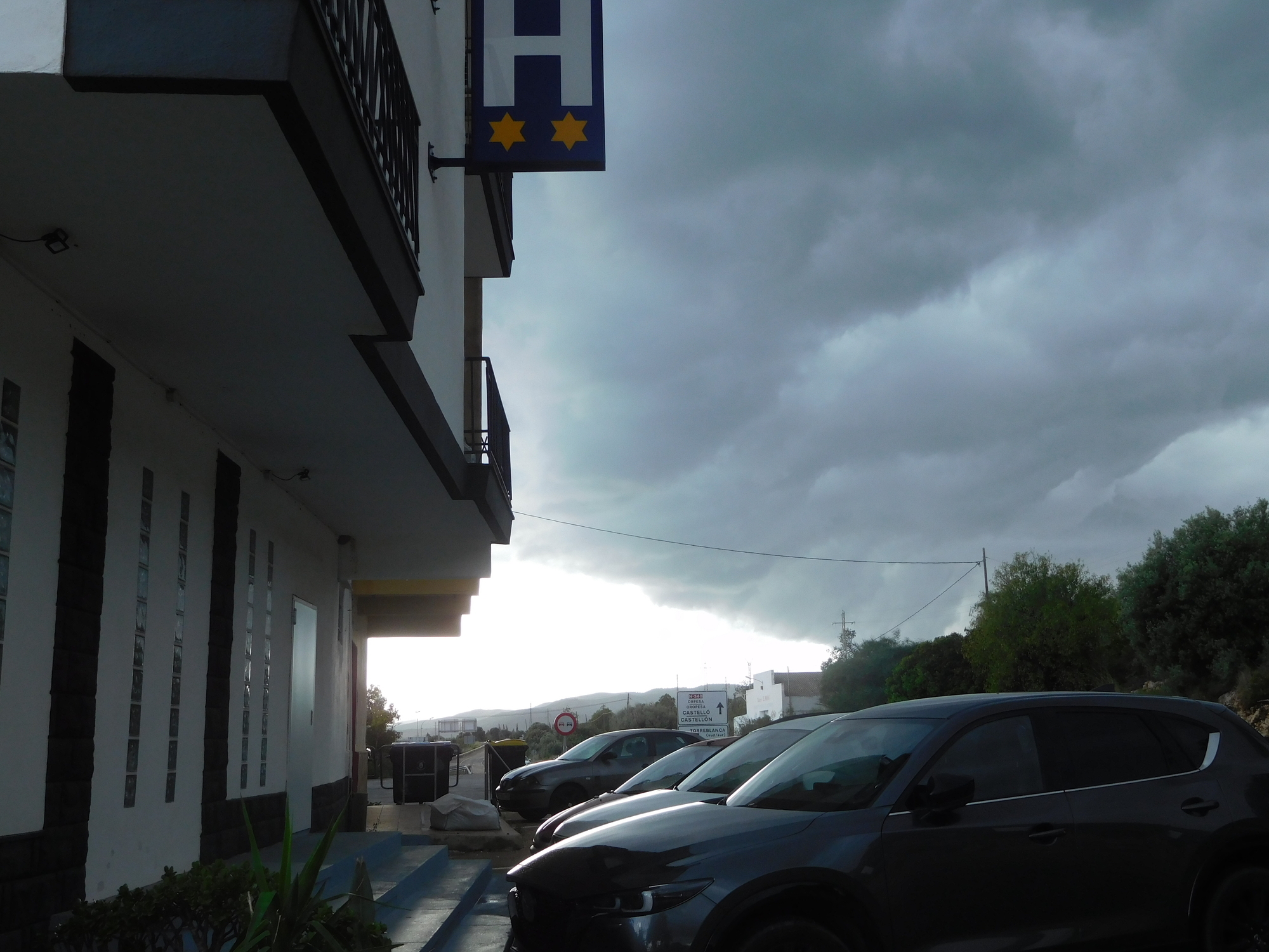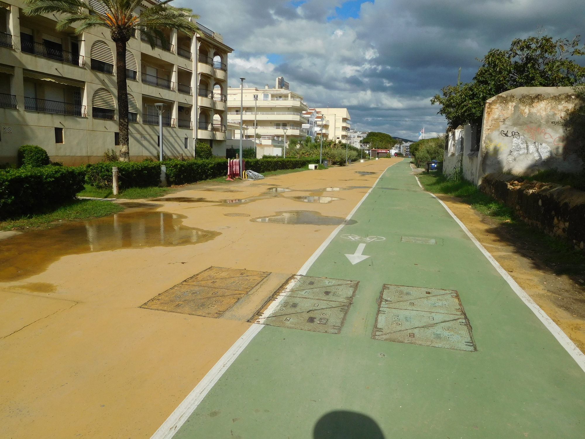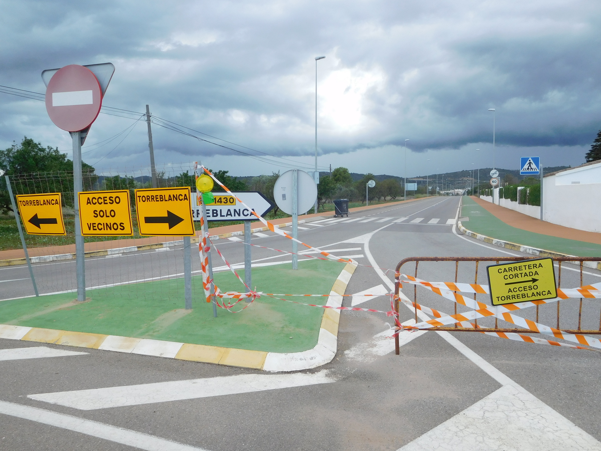 Our destination was Torreblanca, and we were really tired by the time we almost reached it. So that is when a further barrier or challenge popped up. We saw that "vecinos" might have access. So that's how we defined ourselves! Notice also the ominous clouds. It will be a good idea to reach shelter sooner than later!