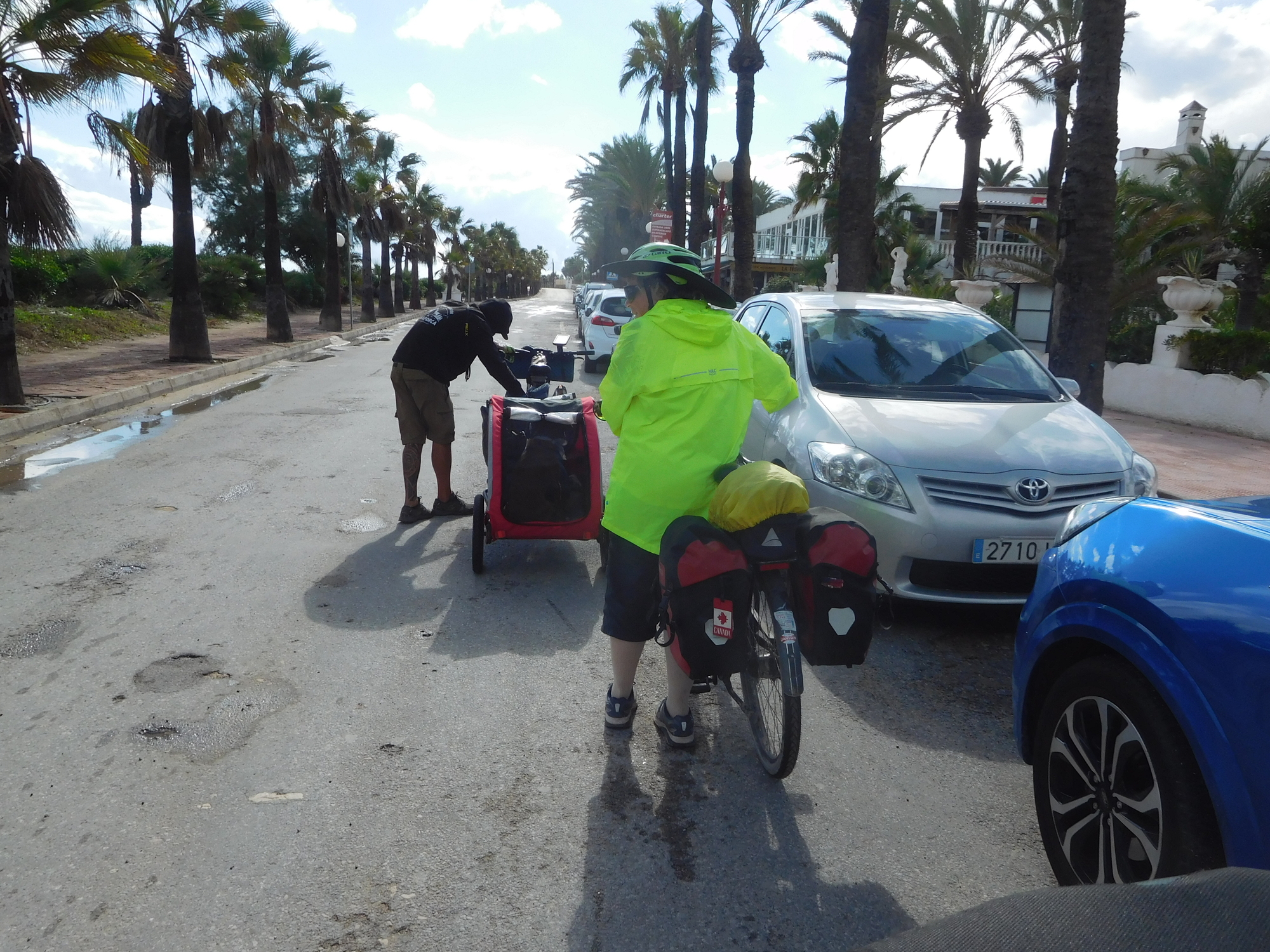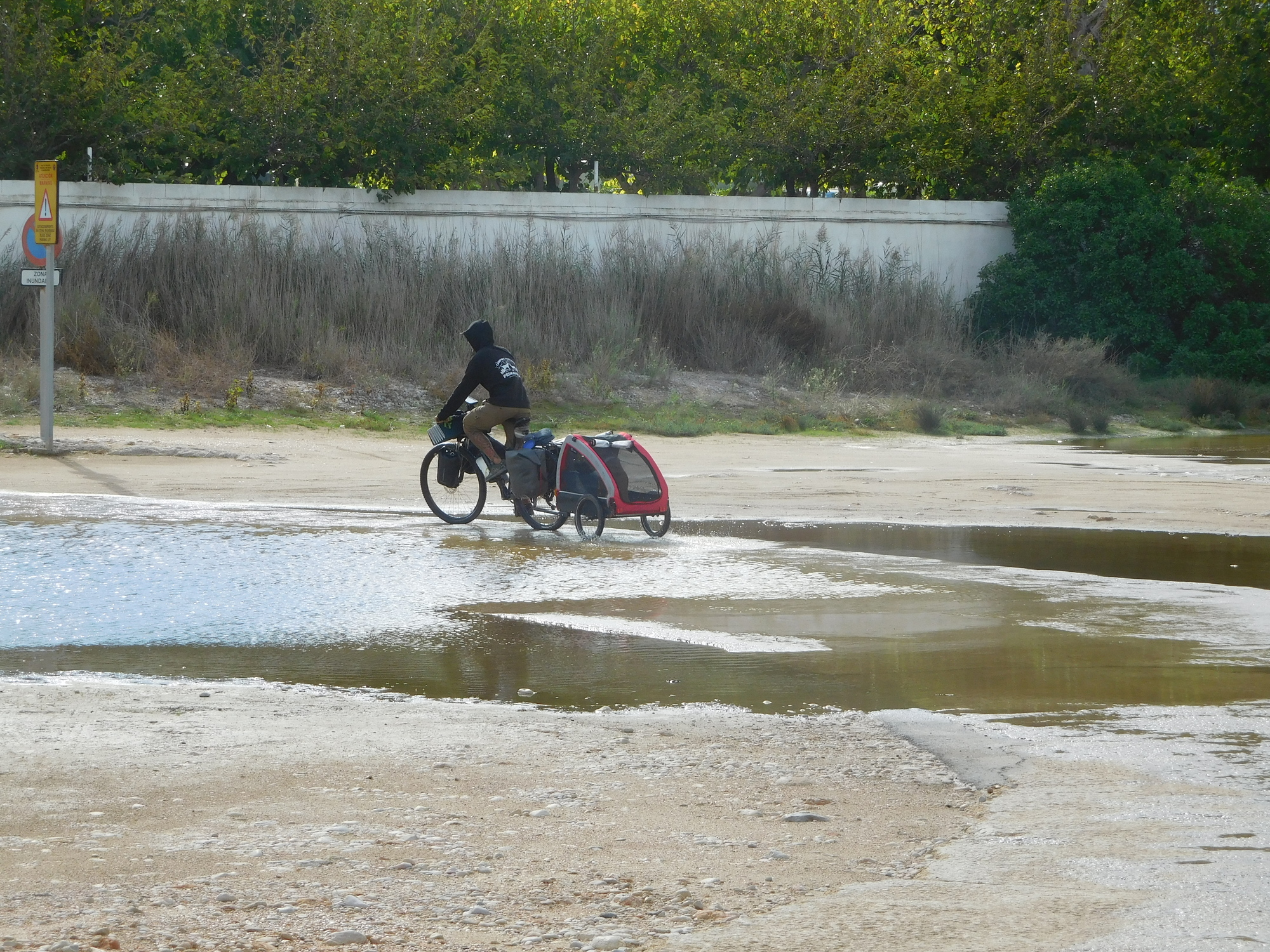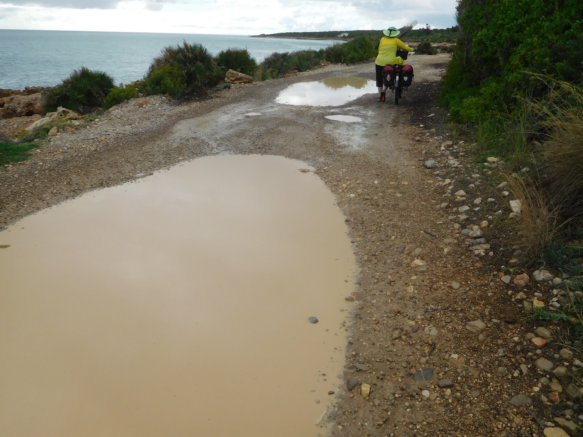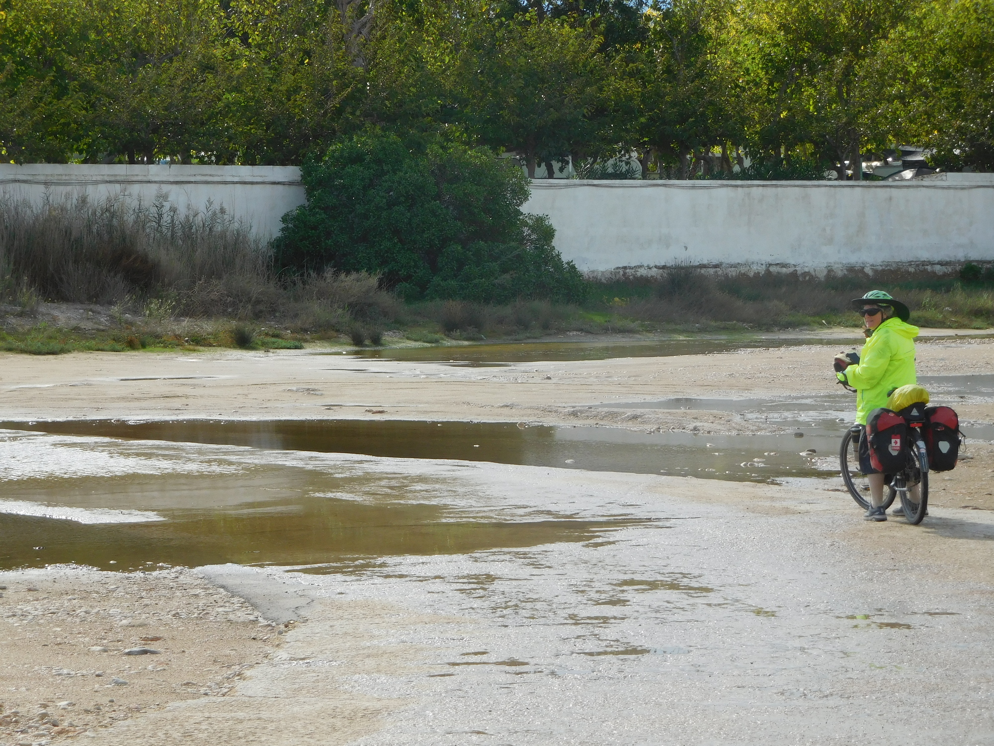 This was an area (one of several to come) where water was flowing in from the sea. We had been playing tag with a fellow from Barcelona, heading for Almeria, and with his dog in tow. We let him go through this one first! It was just fine on the edges, though rather deep in the middle.