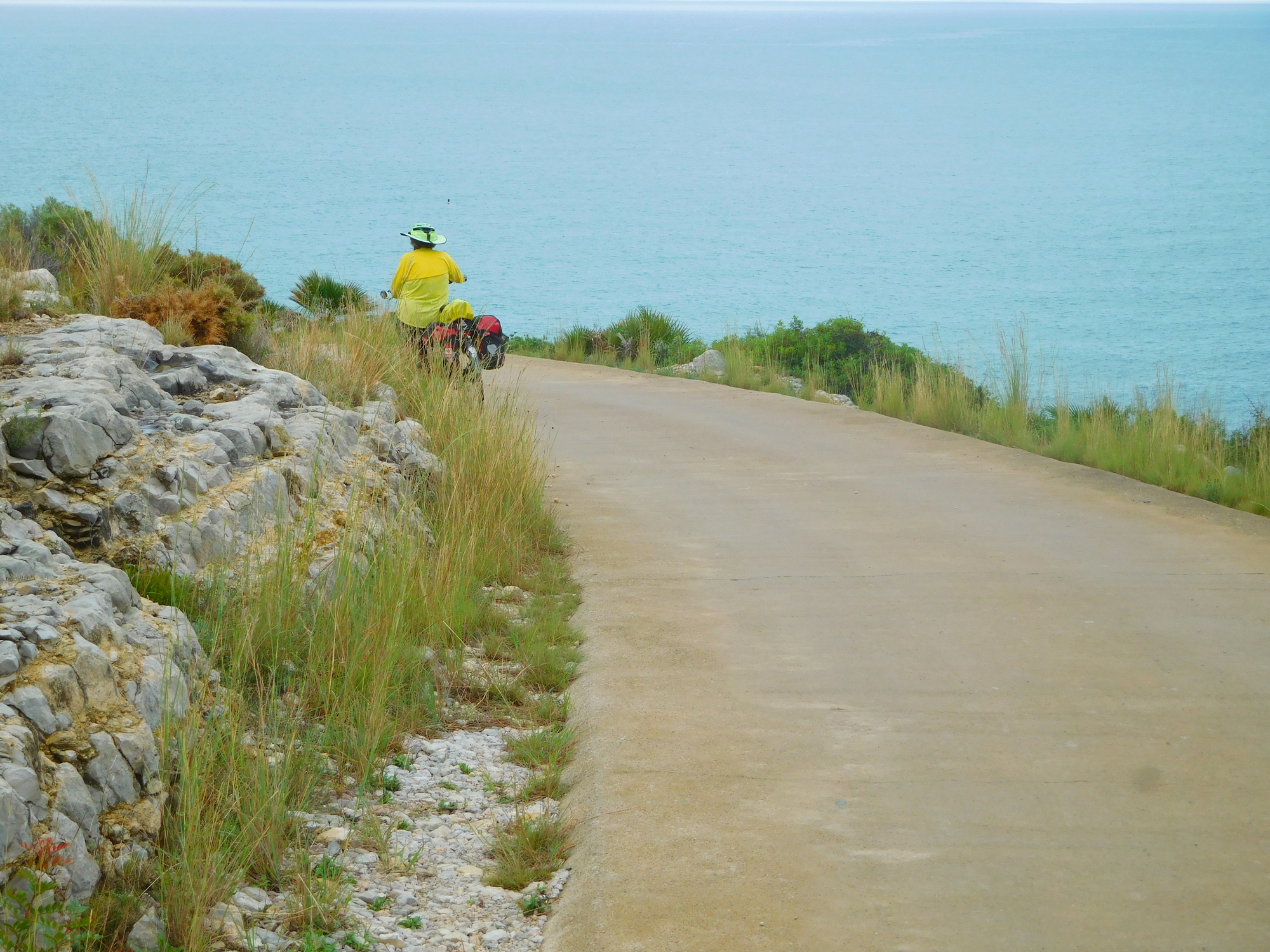 The last time we were here, we told ourselves that we should go into Peniscola for a close look. We know this because we cheated and re-read our blog last night. But that blog also contained a serious warning. Beyond Peniscola would lie for us a brutal journey up headlands on unpaved road. We decided that we had better sweep on by, and plan to actual stay in Peniscola the next time around.