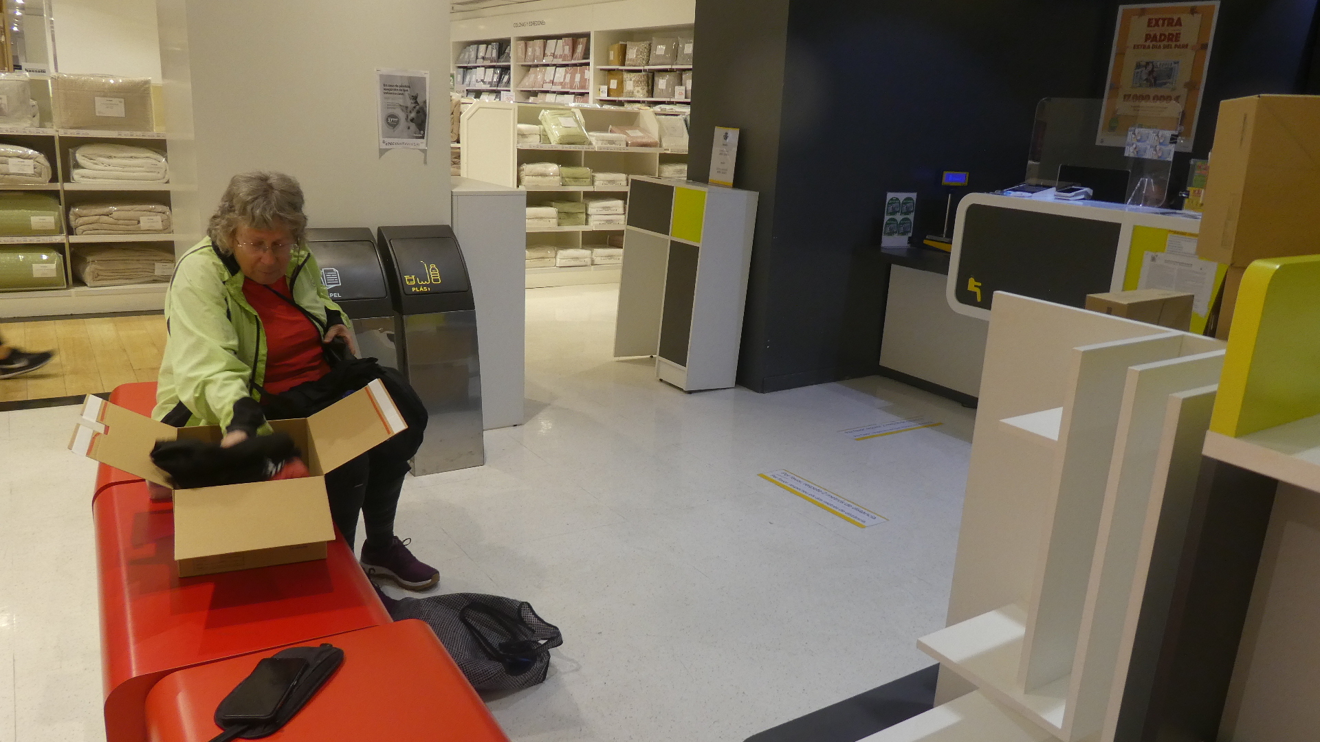 We were not looking to buy a handbag, or smartphone, or bed with this outing, but only to find the post office. (It's in a corner of the bedding section.) The idea was to do a mailback of gear. This is surprising, because we have yet to actually pedal to any destinations. Yet we see how mild it is here, and have decided to ditch a bunch of sweaters, mittens, warm socks, and such. We could regret it later, on the Atlantic coast, but we are counting on the season having advanced by the time we get there.