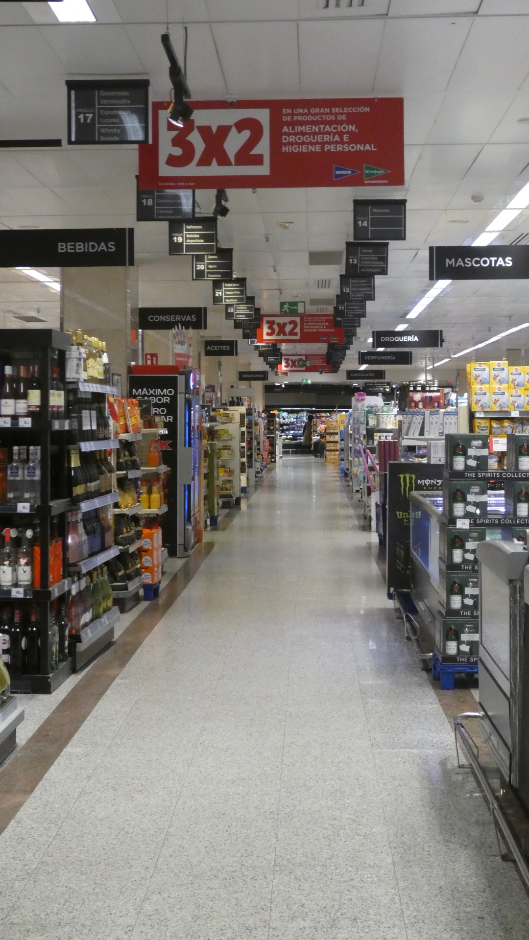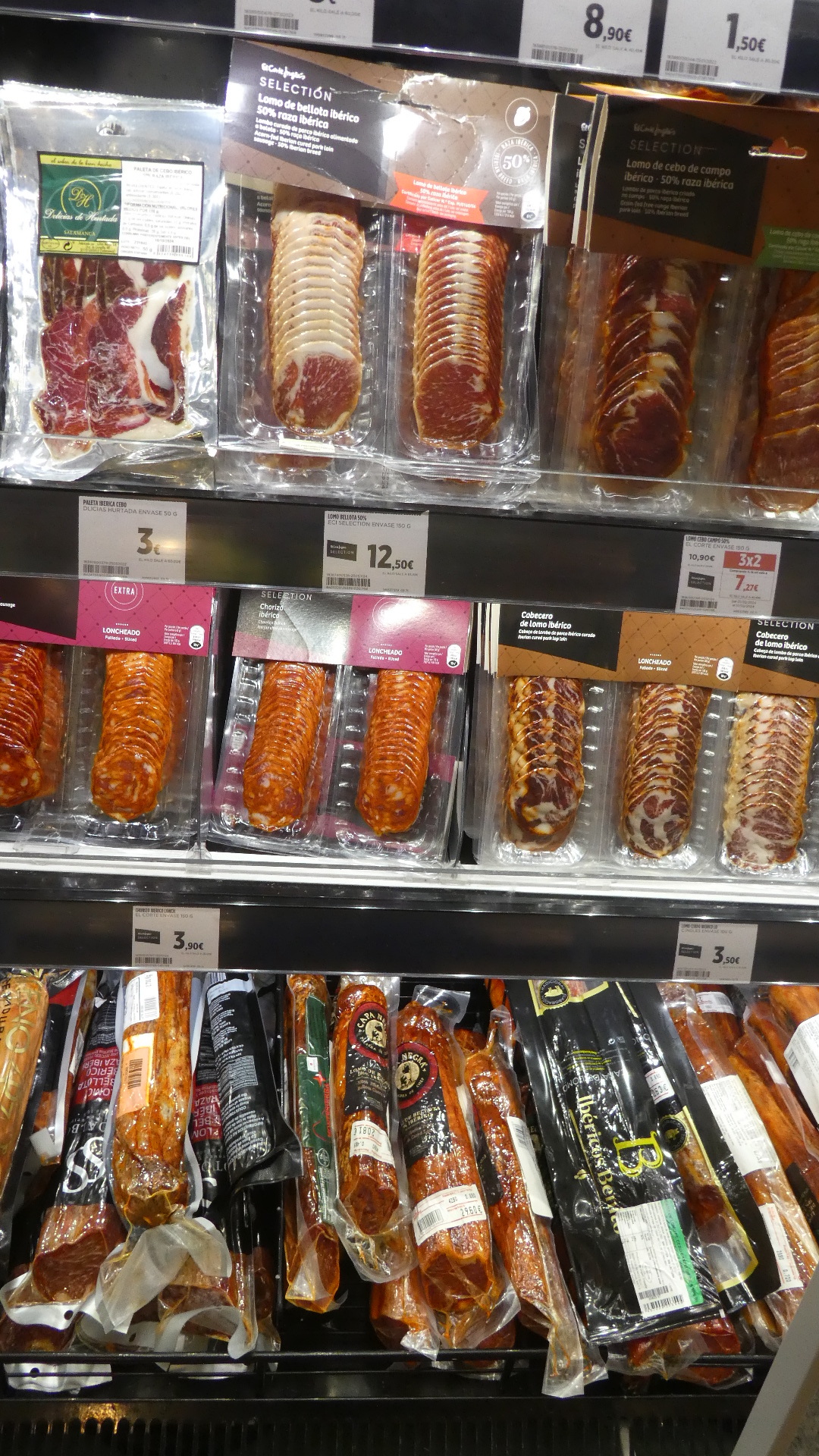 El Corte Ingles includes a giant supermarket, where the stock ranged from ordinary household items to luxury baking, cheeses, and especially hams.