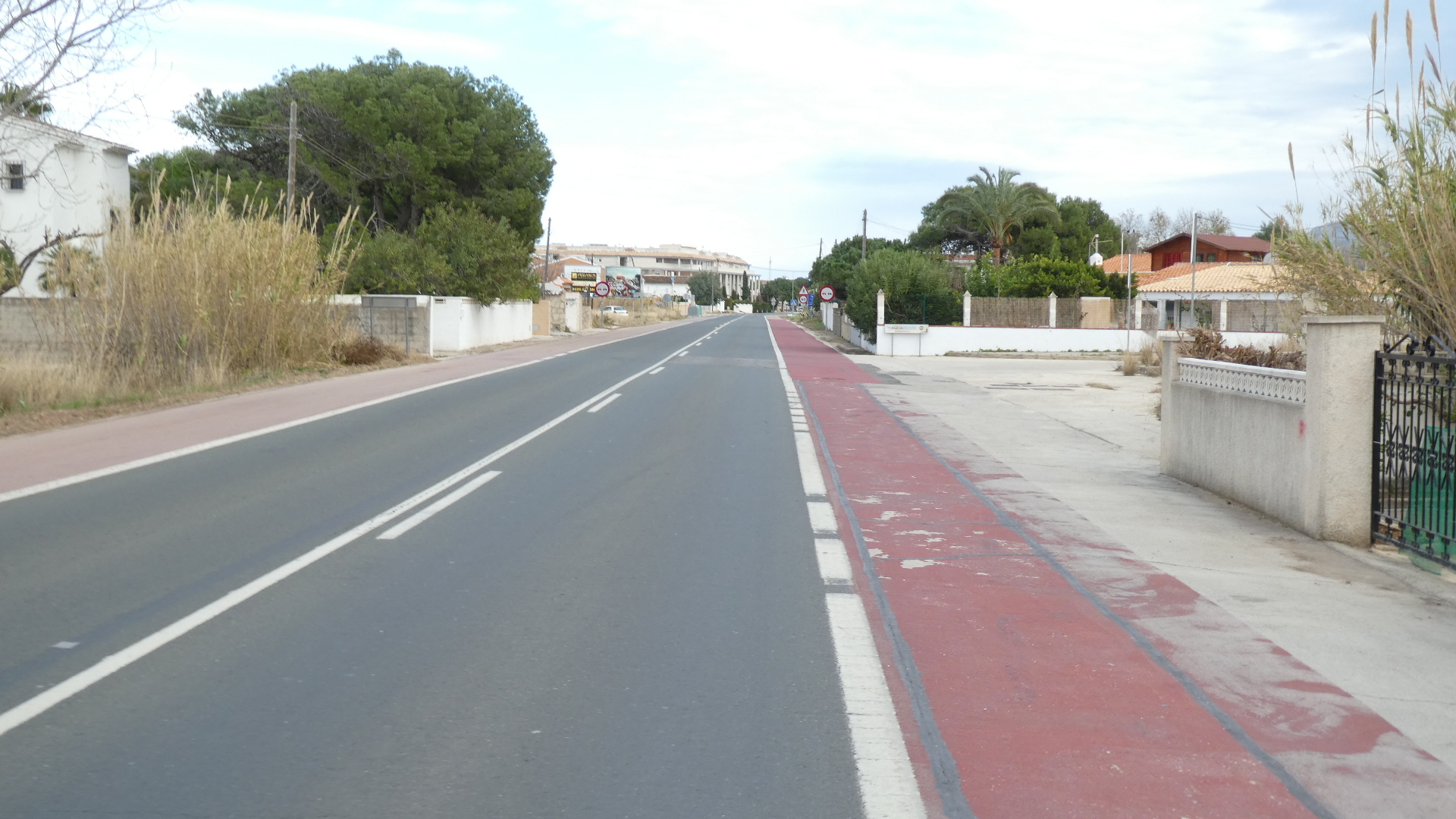 Google Maps had lined us up to follow a dirt track paralleling the sea and on into Denia. But we found a better alternative, a road with a wide red painted shoulder and also a straight run into town.