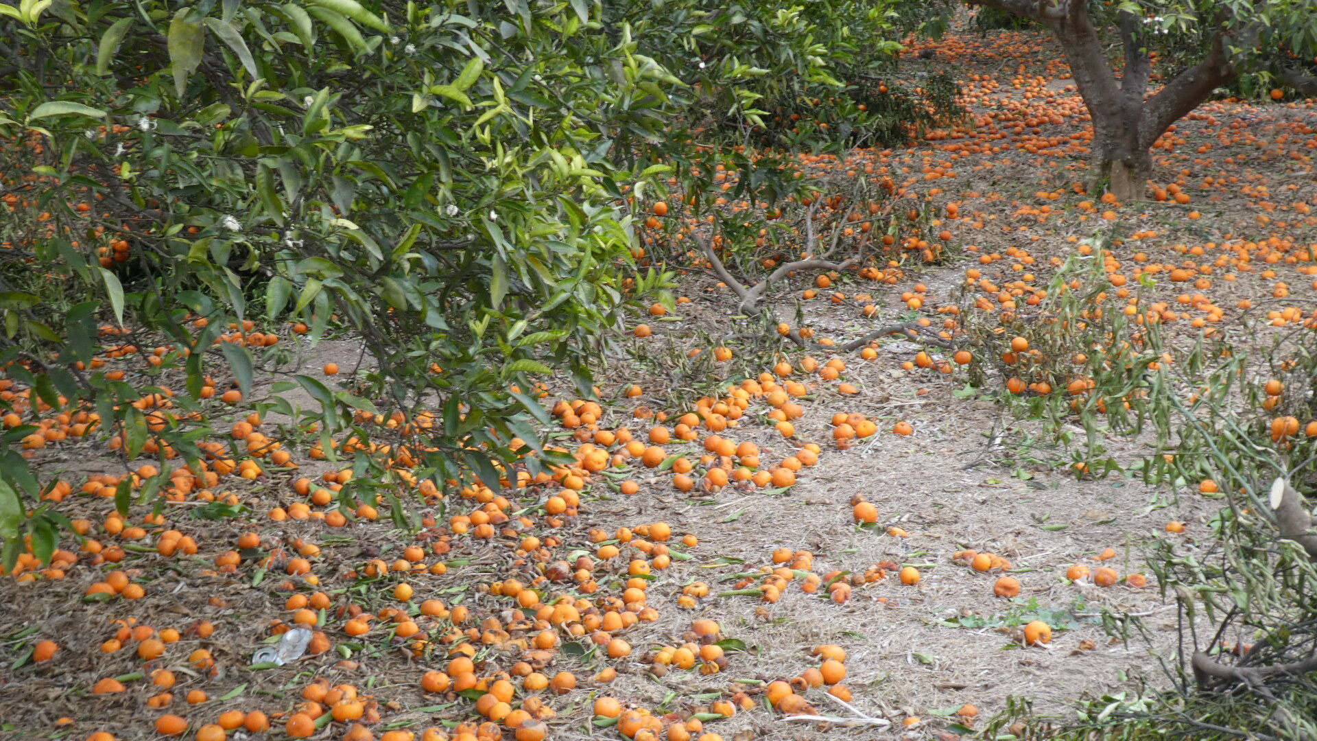 Usually with orange trees, there is a lot of fruit to be seen lying on the ground. But for the shot below, things had become ridiculous.