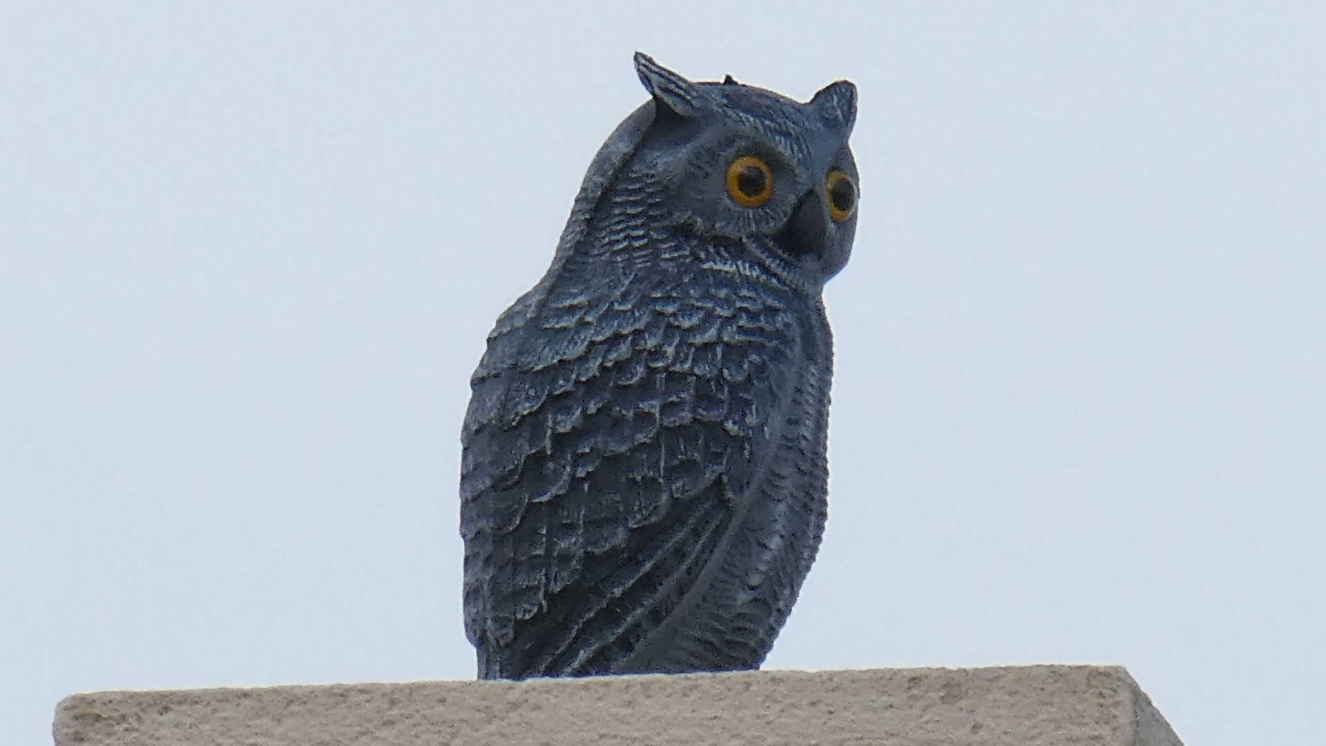 High on a building we spotted an owl. But on the bigger computer screen, this turned out to be a decoy!