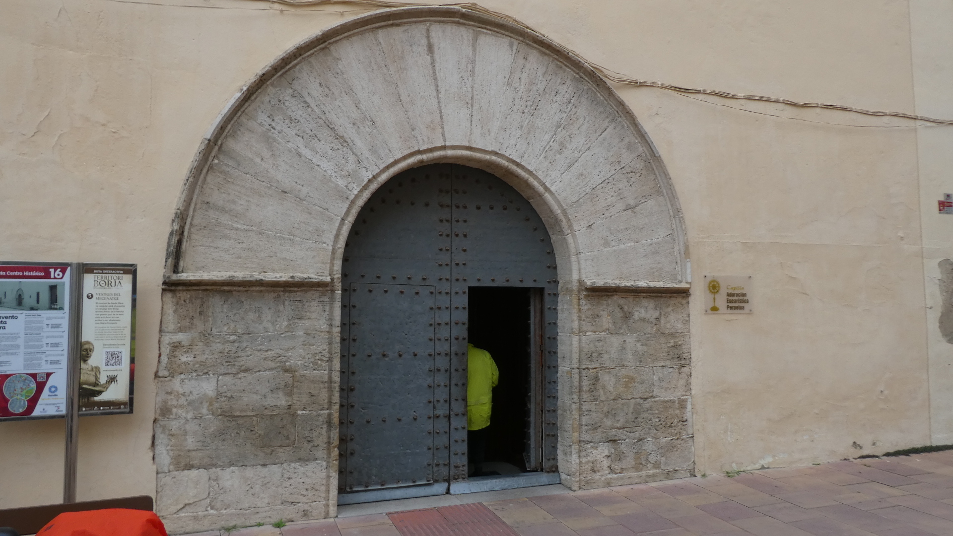 The church as we see it today was built in two stages. The first was in the 14th century and the second in the 16th century. The second stage involves Maria Enriquez, wife of Juan de Borja. The Borjas were dukes here, and judging from posters, remain the town's major claim to fame.
