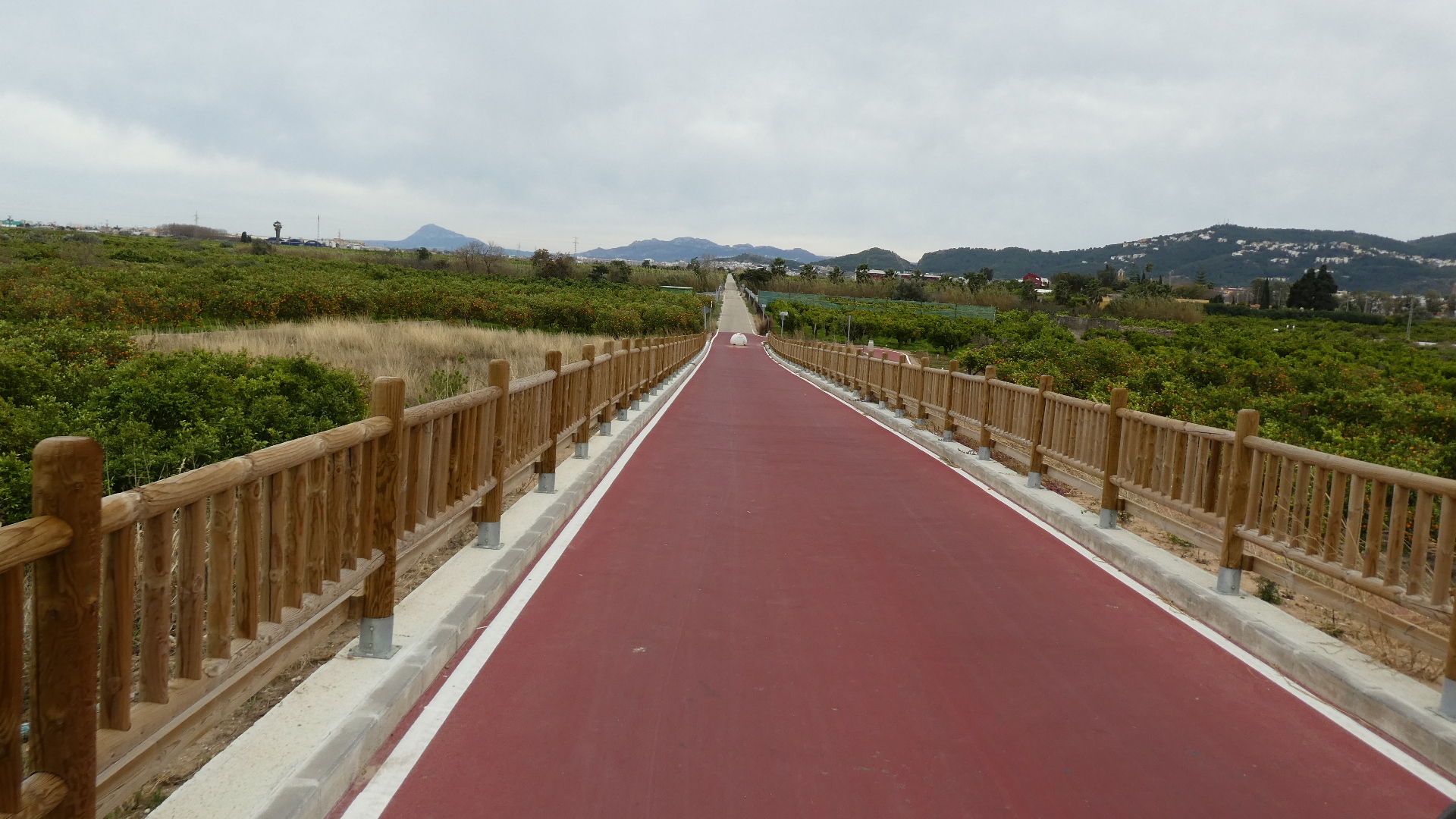 Cullera is built on a hill, but the surrounding lands are flat. Inland, however, there are a lot of mountains. These are clearly visible from our track, which is near the water, and are just placed there to make us nervous!