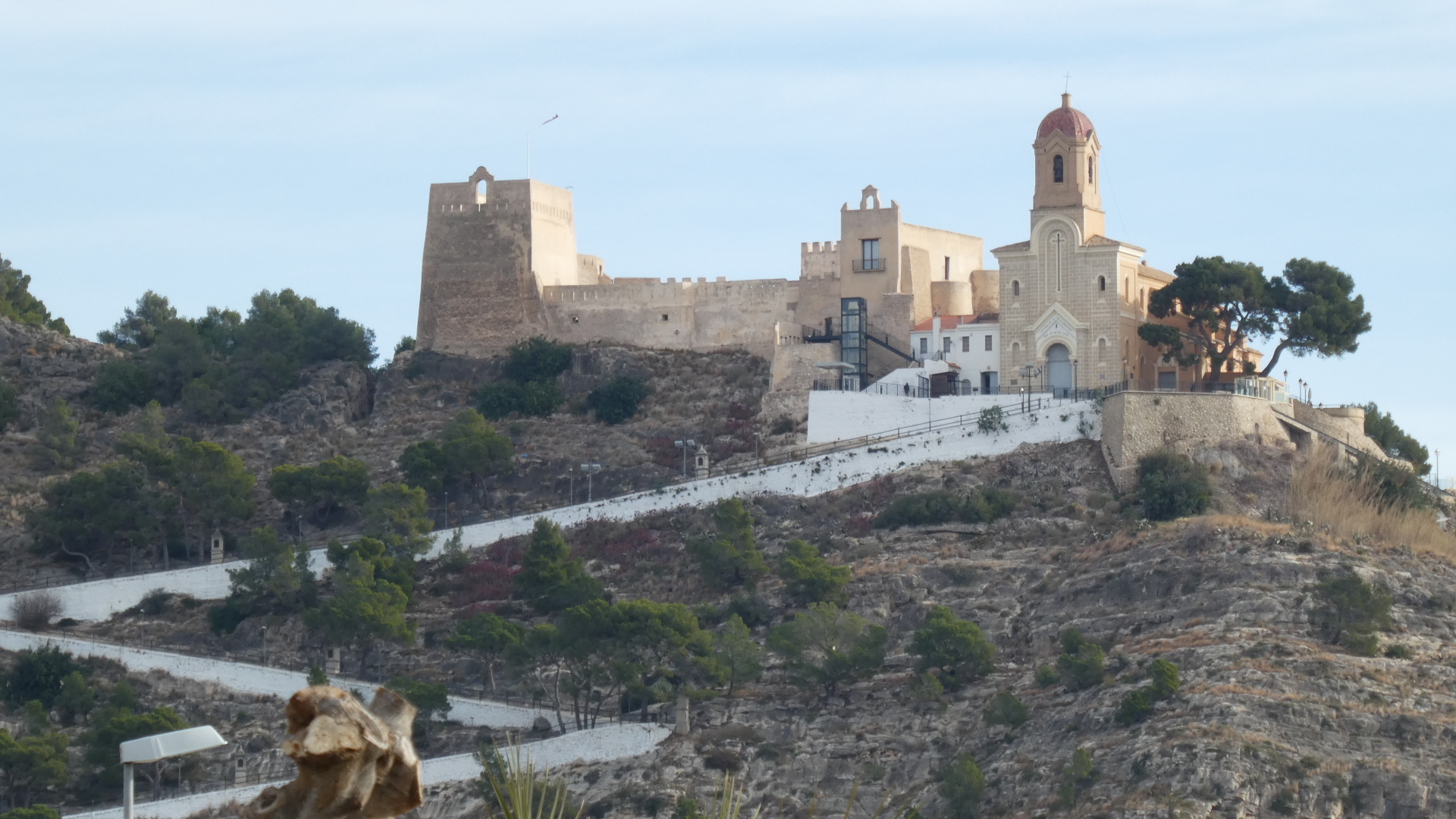 Leaving Cullera, we could look back and see its castle (Castle of Cullera, of course). It was built in the 10th century by the Moors and was taken over in subsequent centuries by Christians, Castillians, Aragonese, and others. Today, of course, it is a museum.