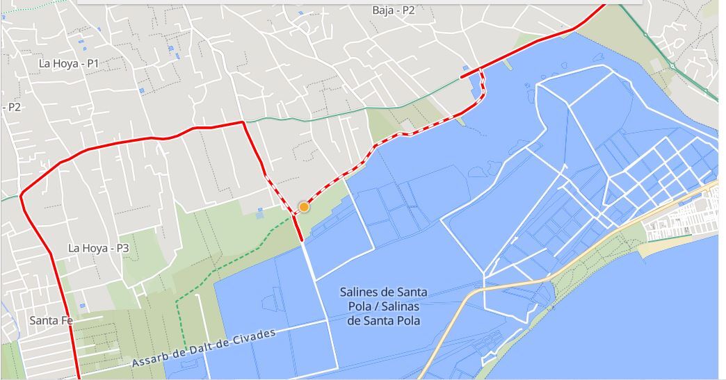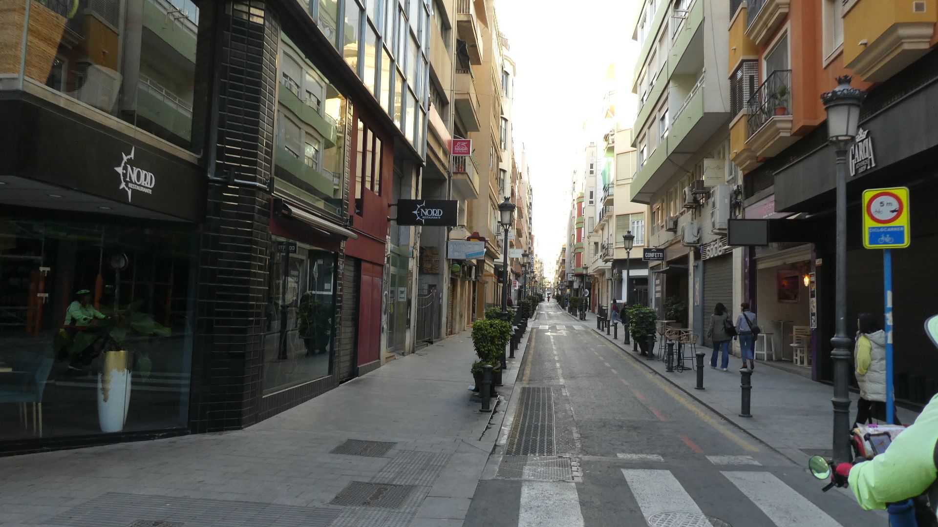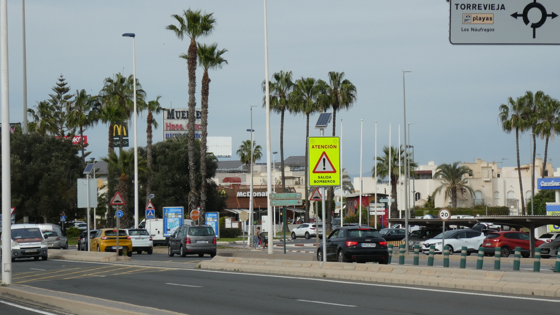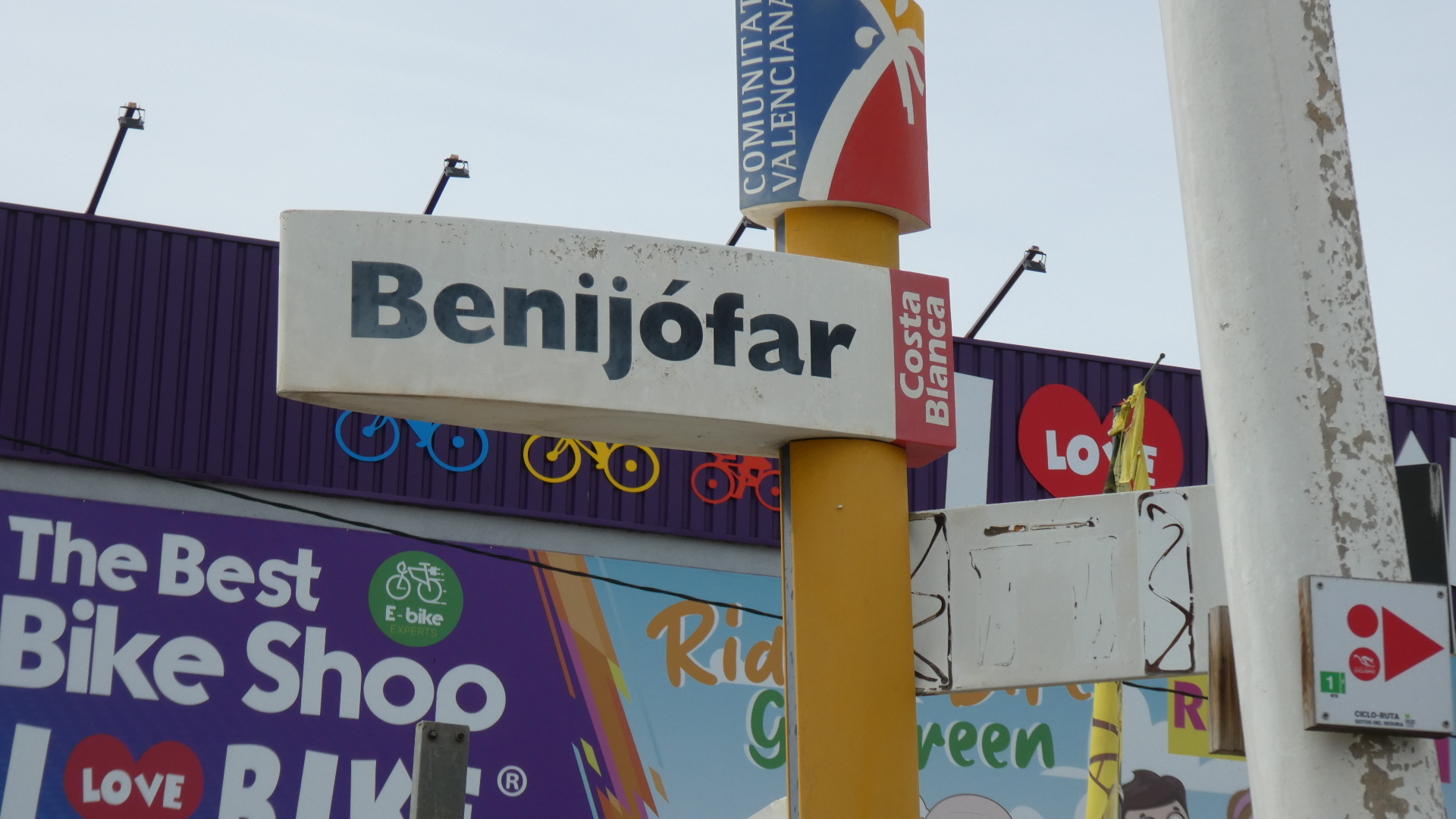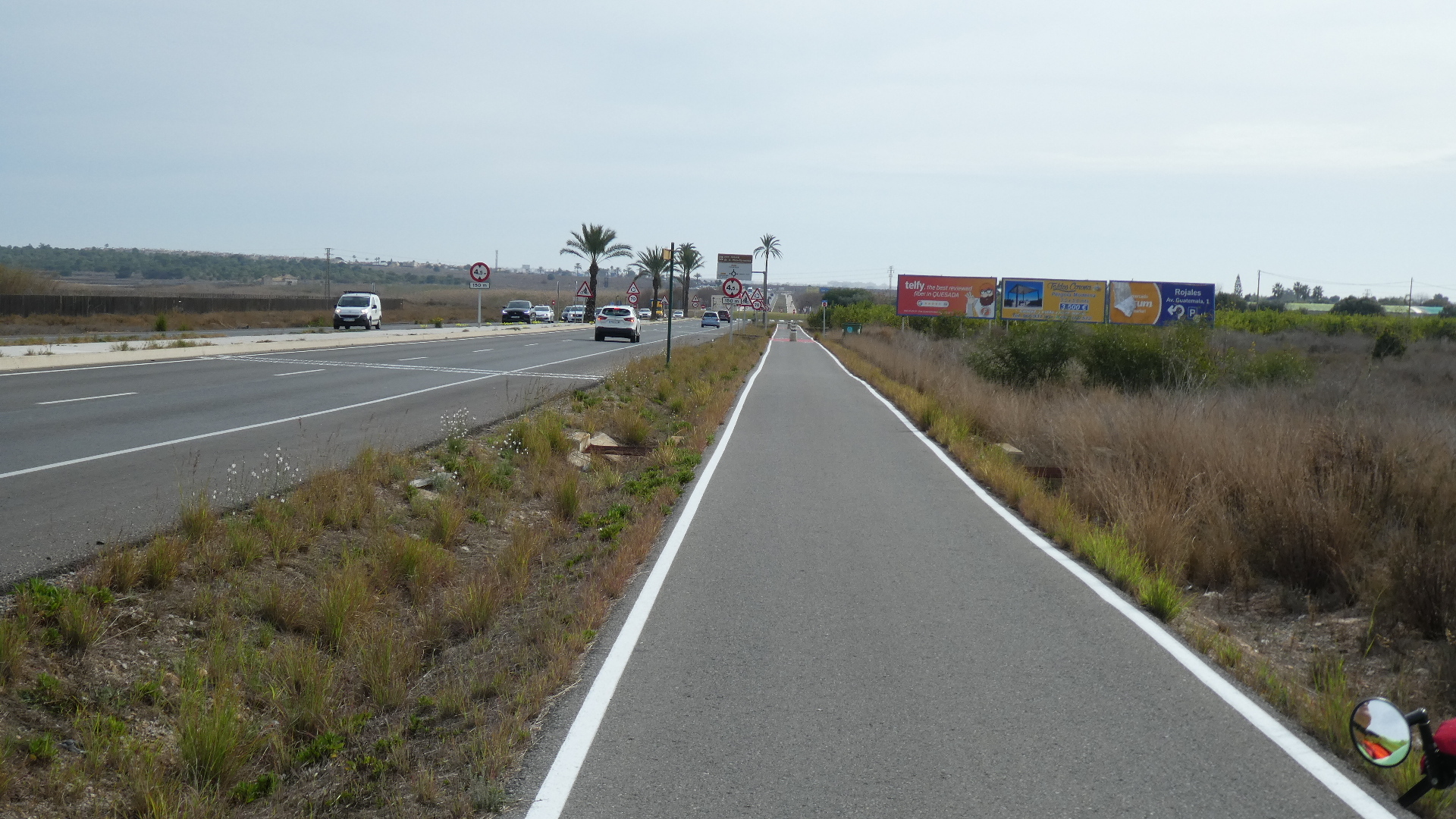 Not so long after our retreat from the salines, our ride changed character dramatically. We entered crowded Benijofar. This produced a bit of jockeying with traffic, but we were never in any sort of really risky situation. And soon, the track became mostly a protected bikeway down to our destination at Torre Vieja. It was pretty ugly, though, with all sorts of suburban business and fast food located on the quite high speed road.