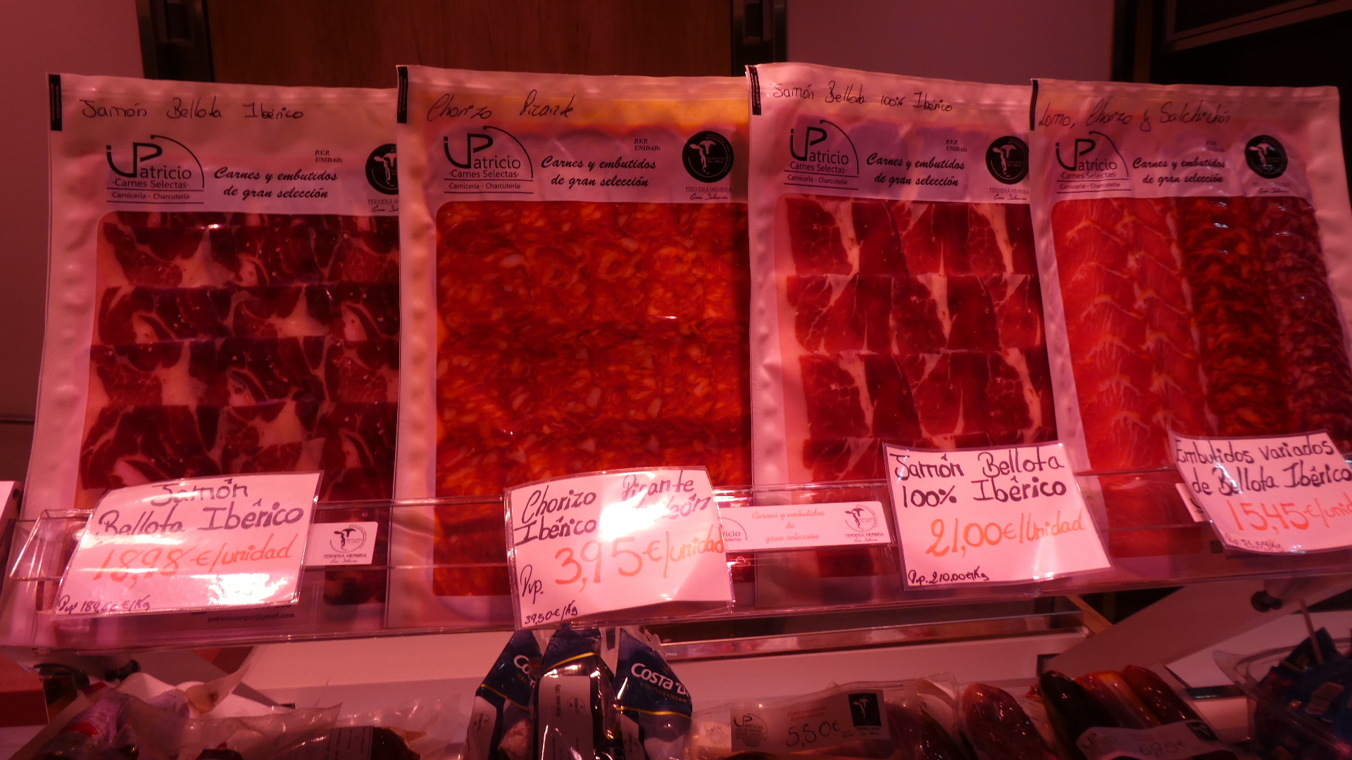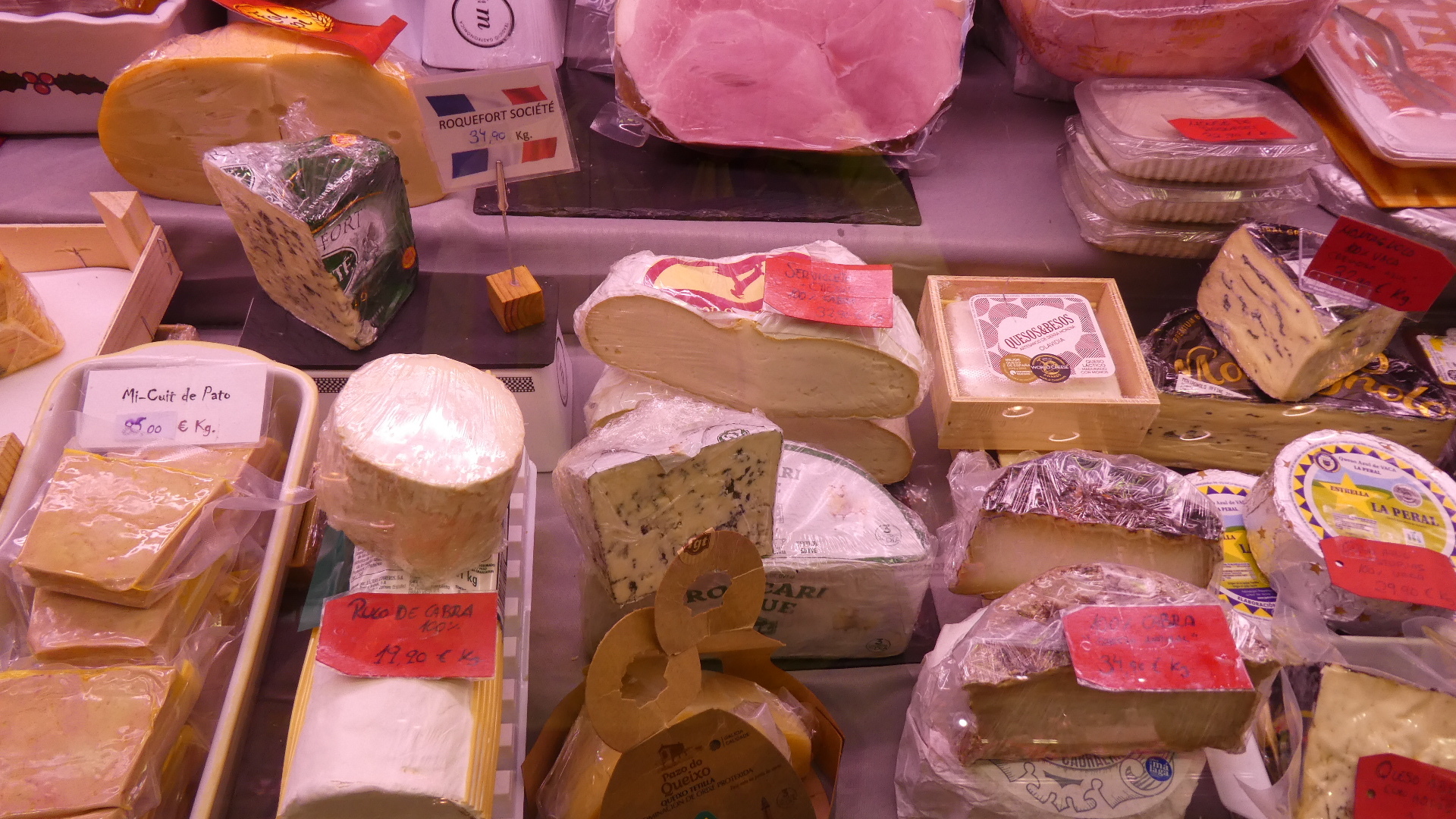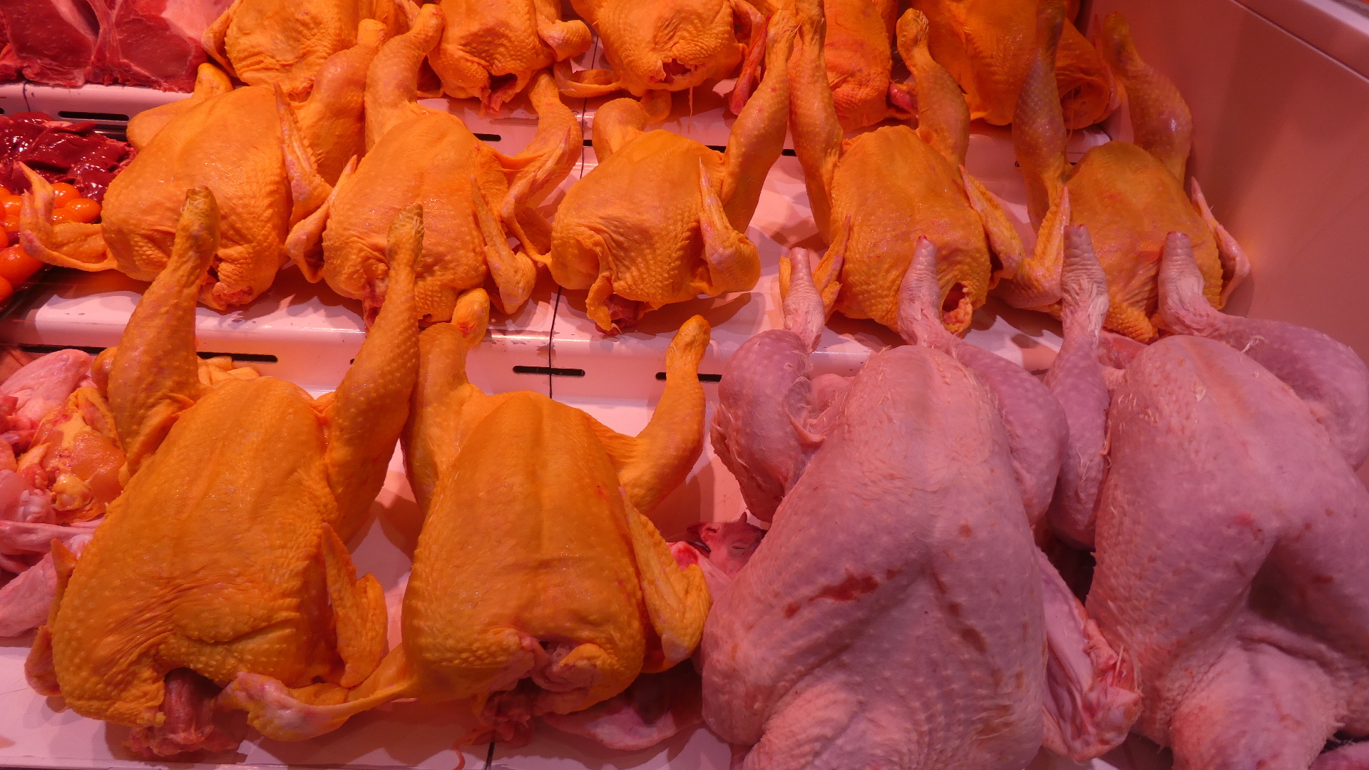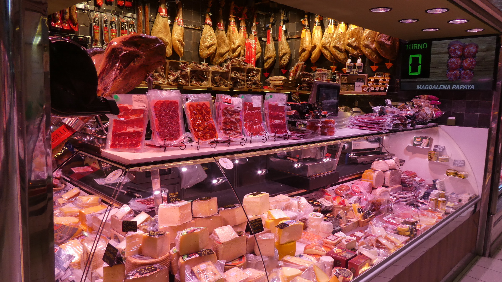 The first area (on two floors, with an escalator) is devoted to meats. And wow, there certainly was all kinds. This was not limited to the traditional walls of hams, but included chickens, rabbits, and such "delicacies" as cow's feet.