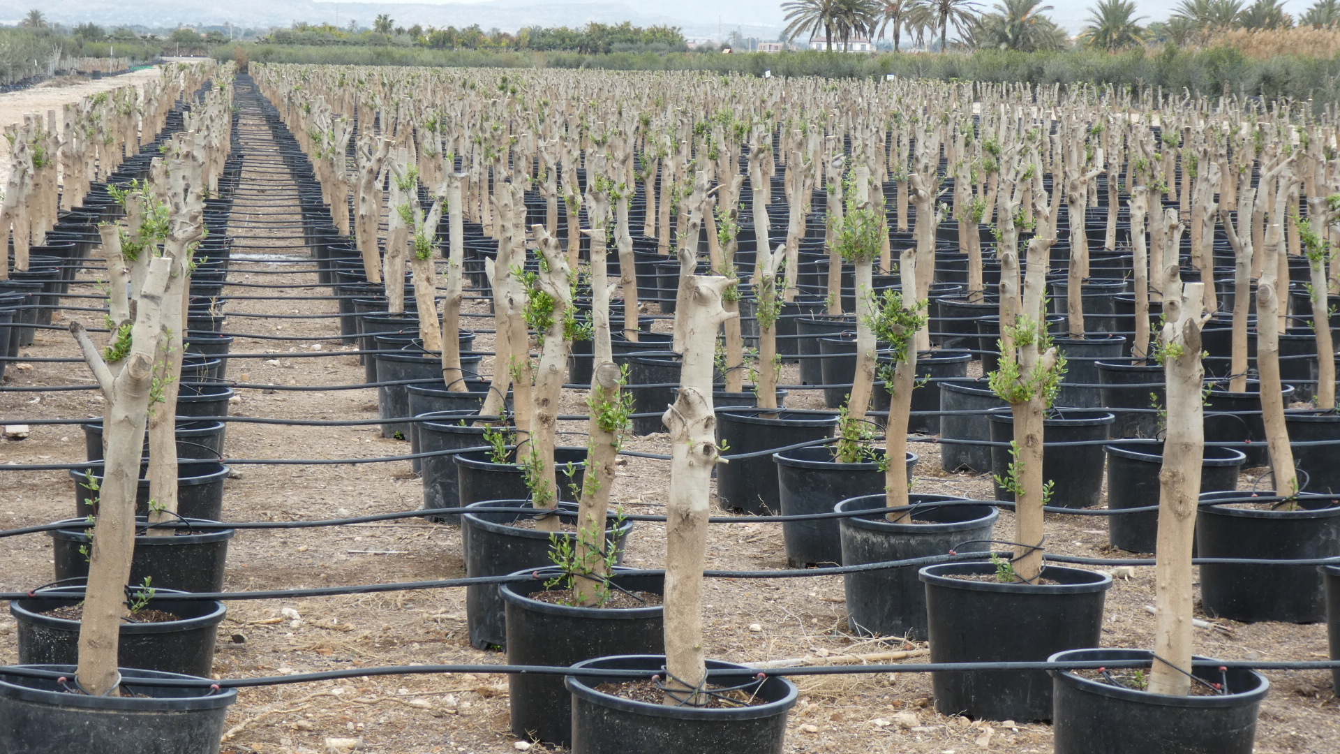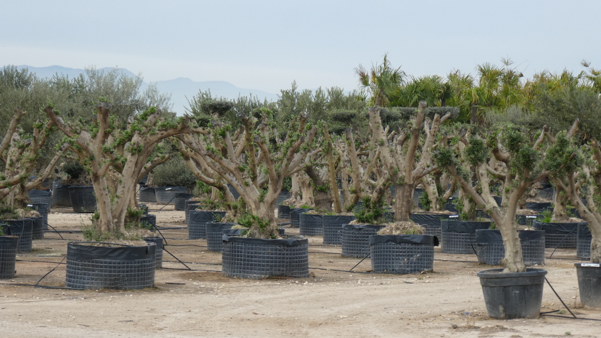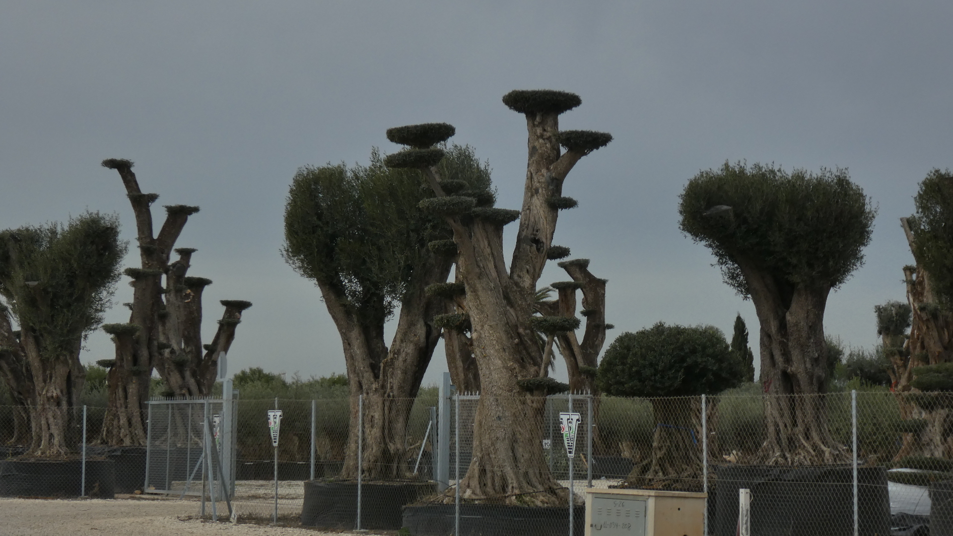 Another feature along the route, really fascinating for us, was the many nurseries with very large potted trees, of unknown types and heavily pruned.