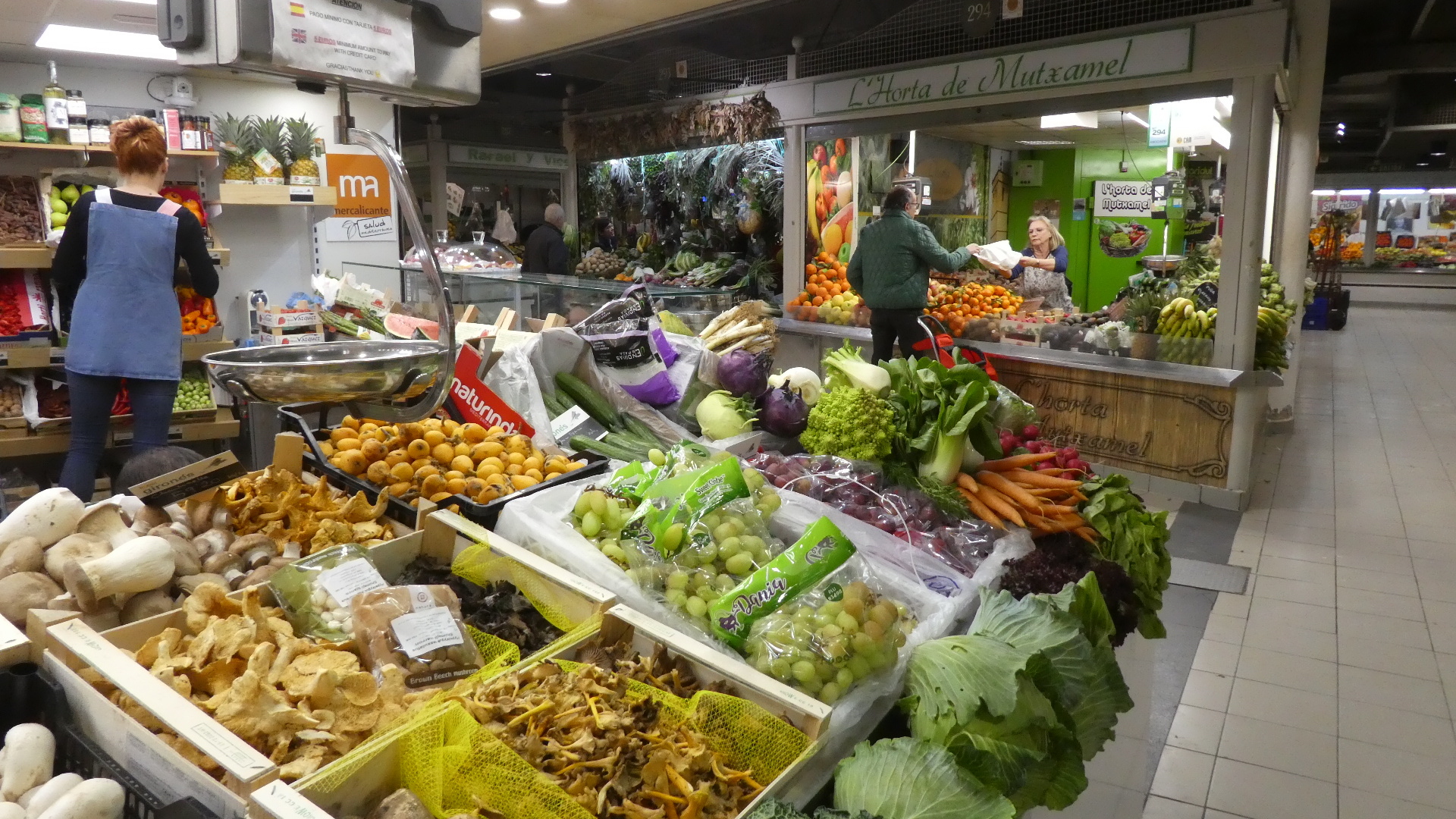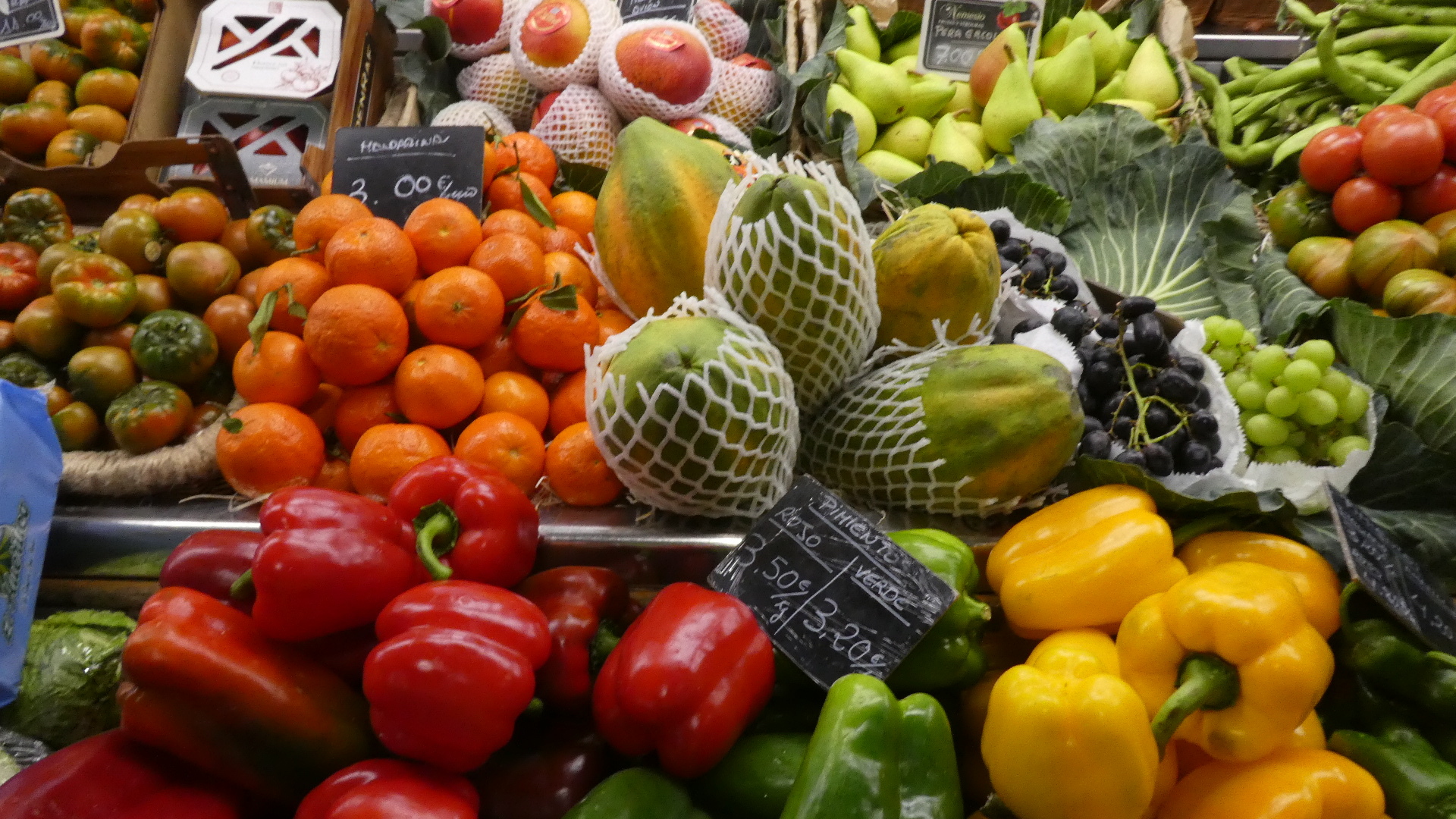 When we passed by the market yesterday on the way to the hotel, the GPS said we were there, but I saw nothing but one flower vendor. Again, this was because the fruit and vegetable people are indoors and down an escalator. This would seem a kind of sterile environment, but once you find the produce, it looks great!