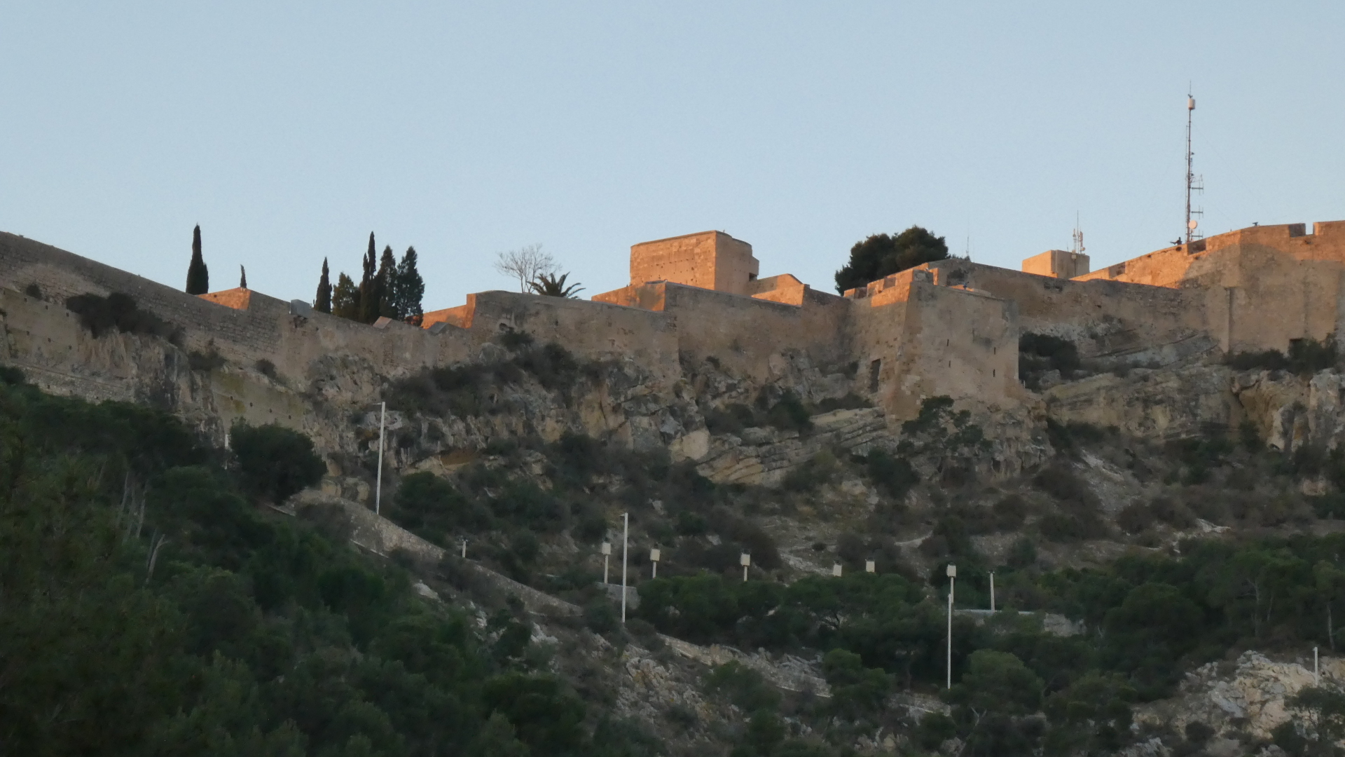 Just outside the main door, we could look up to the Alicante castle. It doesn't look like much from this perspective, but is supposed to be great to visit. Next time!