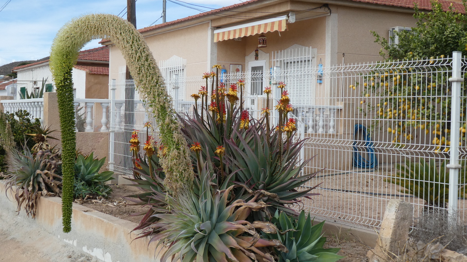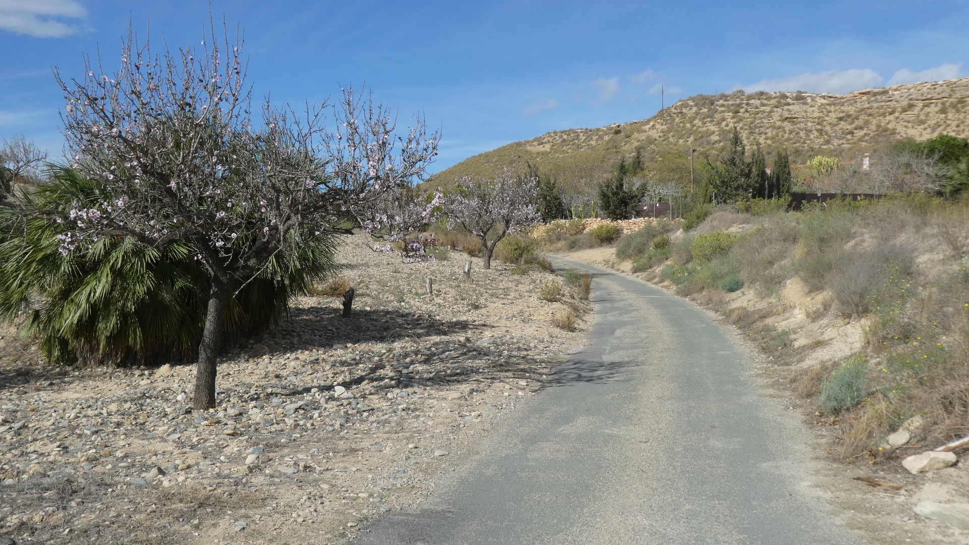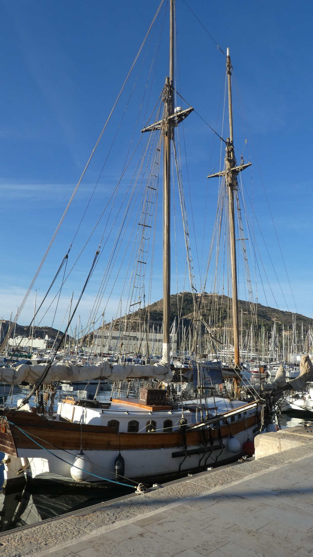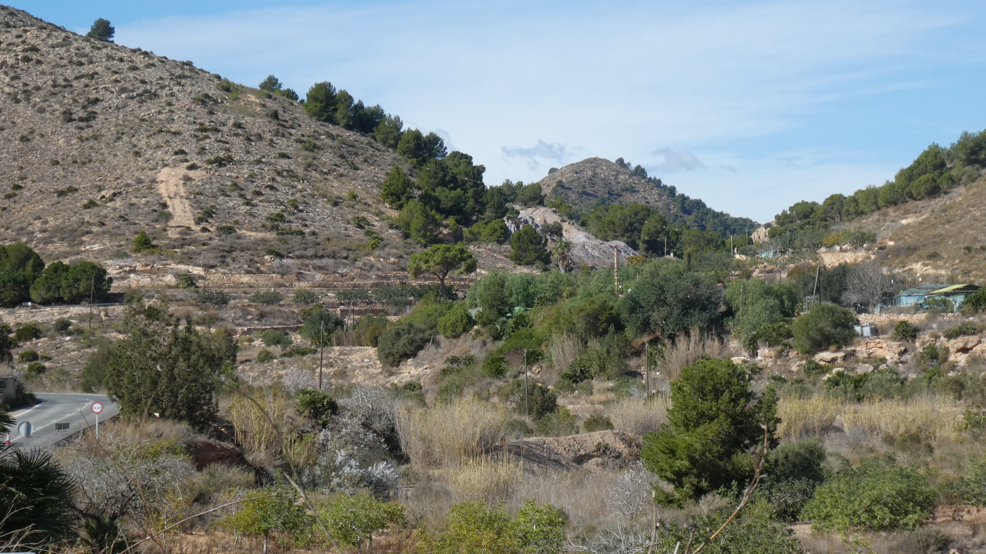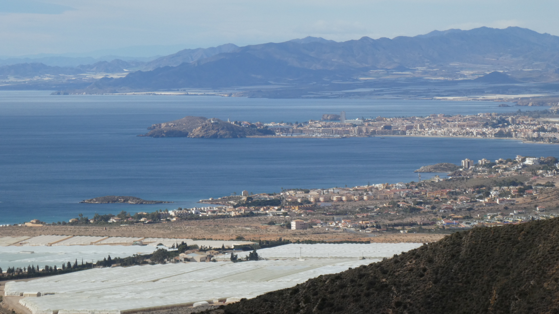 About half way down we came to a viewpoint. There, we answered some UQs from a couple from the UK. But it turned out the fellow had his own tale. The conversation starter was easy. He had been standing beside the back of his car, but he, or Mrs., opened the trunk and then we saw he could only walk with a walker. The tale was that two weeks ago he came off his bike, hitting sand in a roundabout, and sliding along his left side. There was an ambulance ride to Cartagena, and many x-rays. Apparently he is just severely bruised. For days, he could not sleep lying down, but is doing better now.