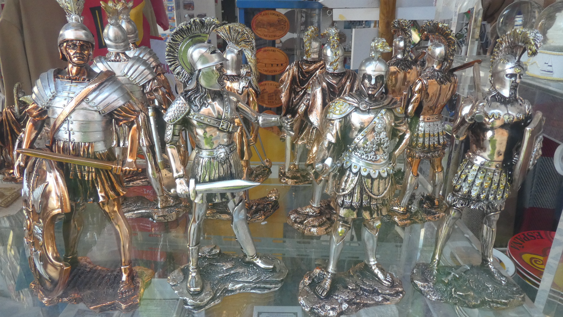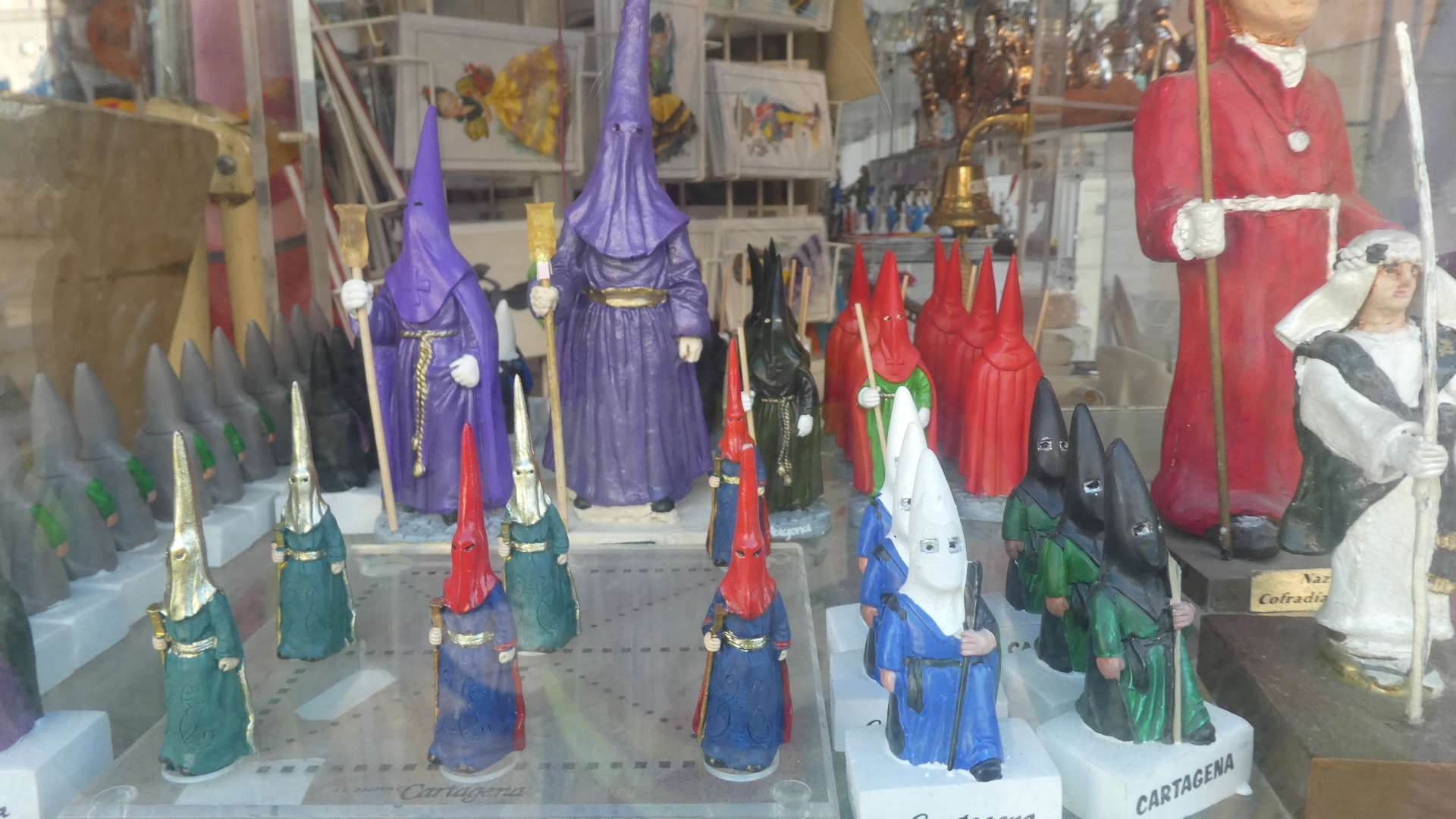 We also found what was a rare souvenir shop, featuring Roman soldier models, and Semana Santa penitents, who as we know, look like the KKK.