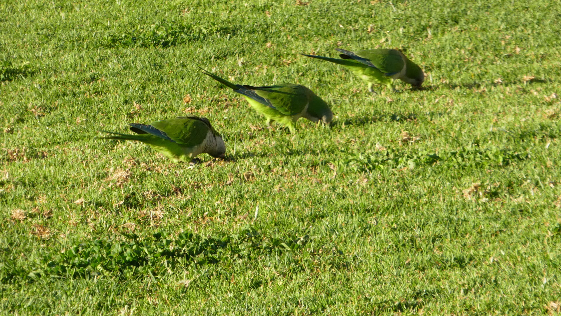 Something I liked about the pirate wall was that there were lots of parakeets on the grass in front. After having had such a hard time in Yucatan photographing anything in the parrot line, it feels great to see these ones out in the open.