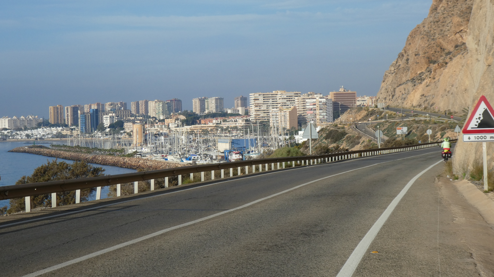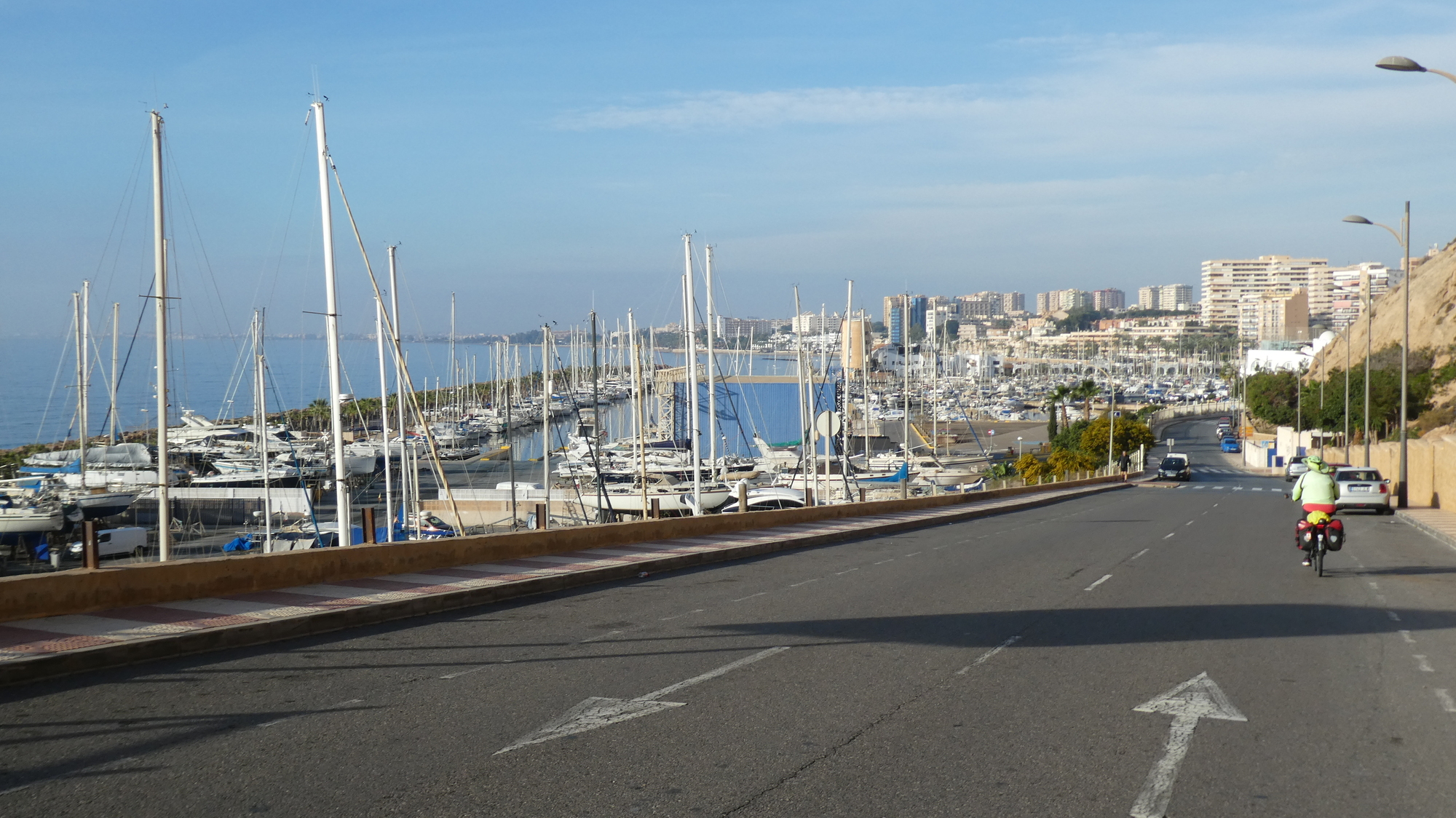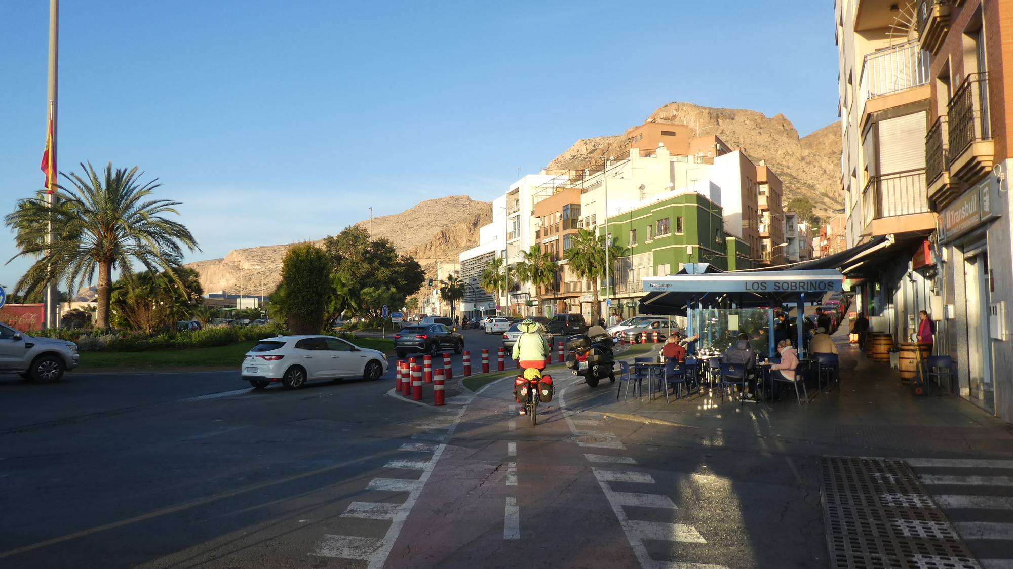 Almeria struck us again this morning as a really pleasant city, something like Valencia. It has lots of quiet plazas containing cafes, narrow streets downtown with little traffic, and often paved with slate or tile. In our time there, we only travelled on bike paths or on streets with a bike symbol in the middle.