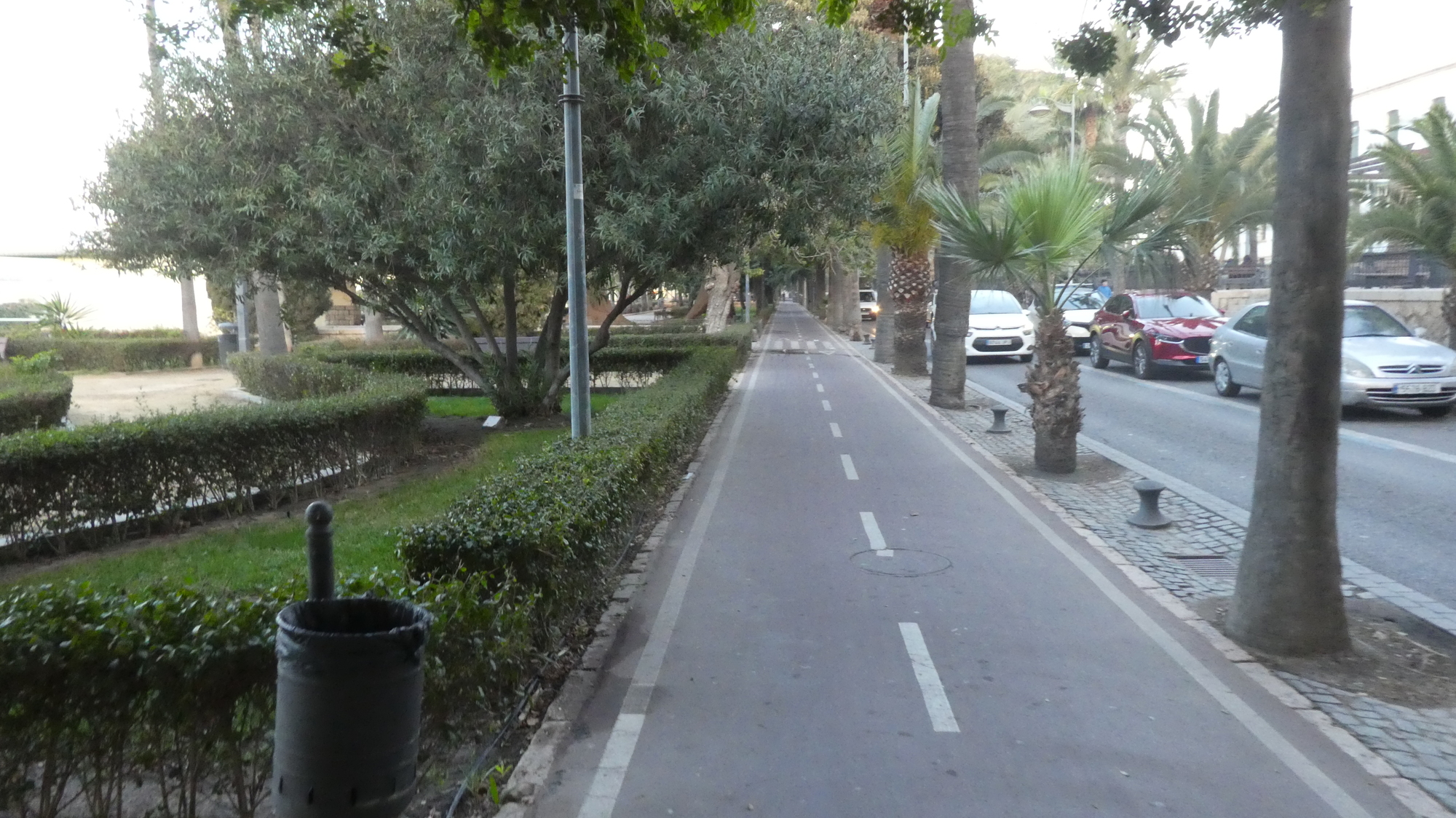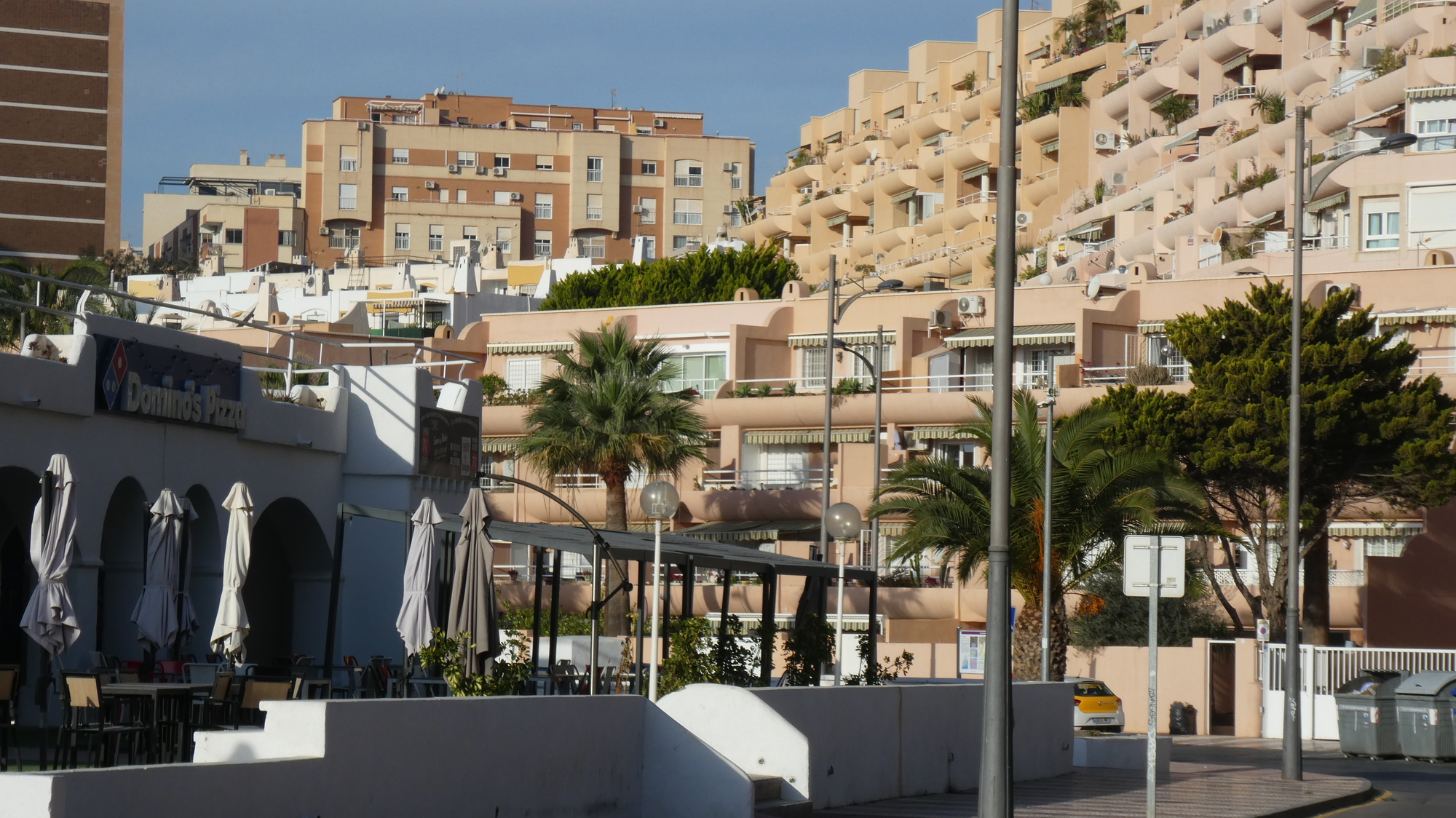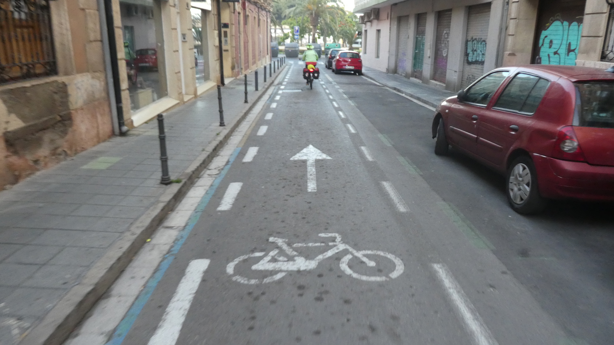 Almeria struck us again this morning as a really pleasant city, something like Valencia. It has lots of quiet plazas containing cafes, narrow streets downtown with little traffic, and often paved with slate or tile. In our time there, we only travelled on bike paths or on streets with a bike symbol in the middle.