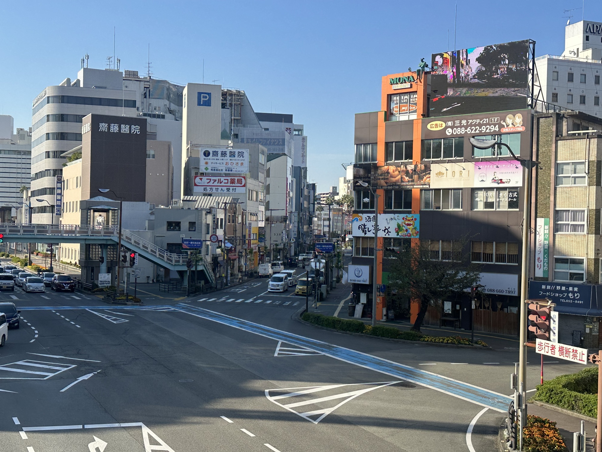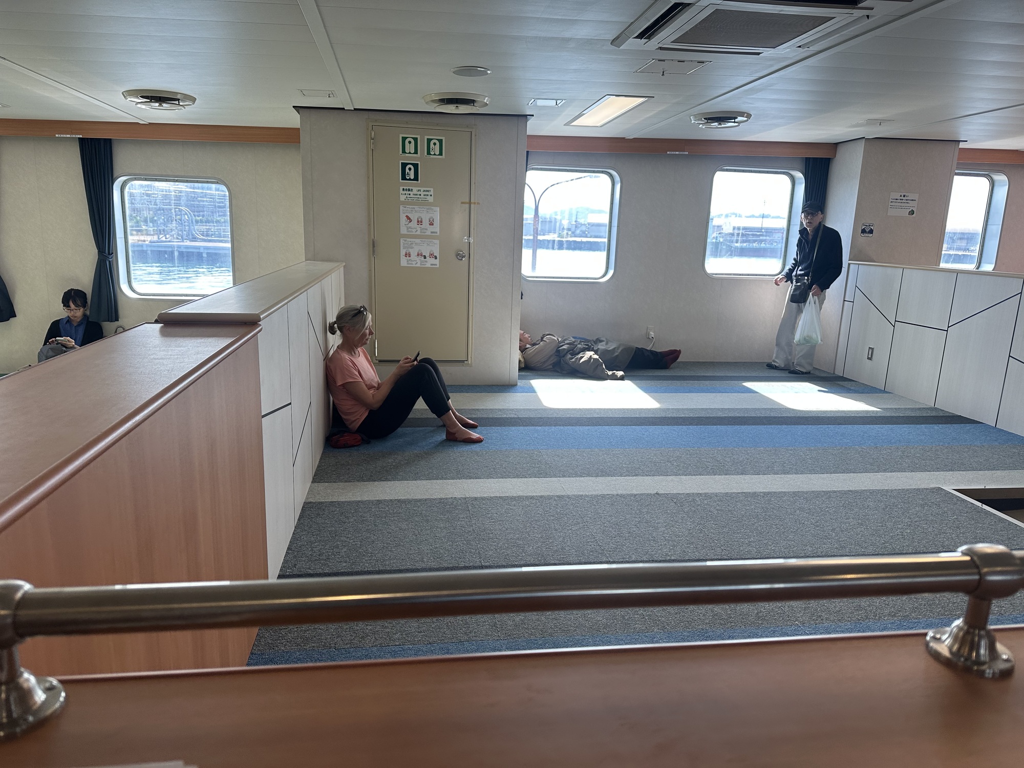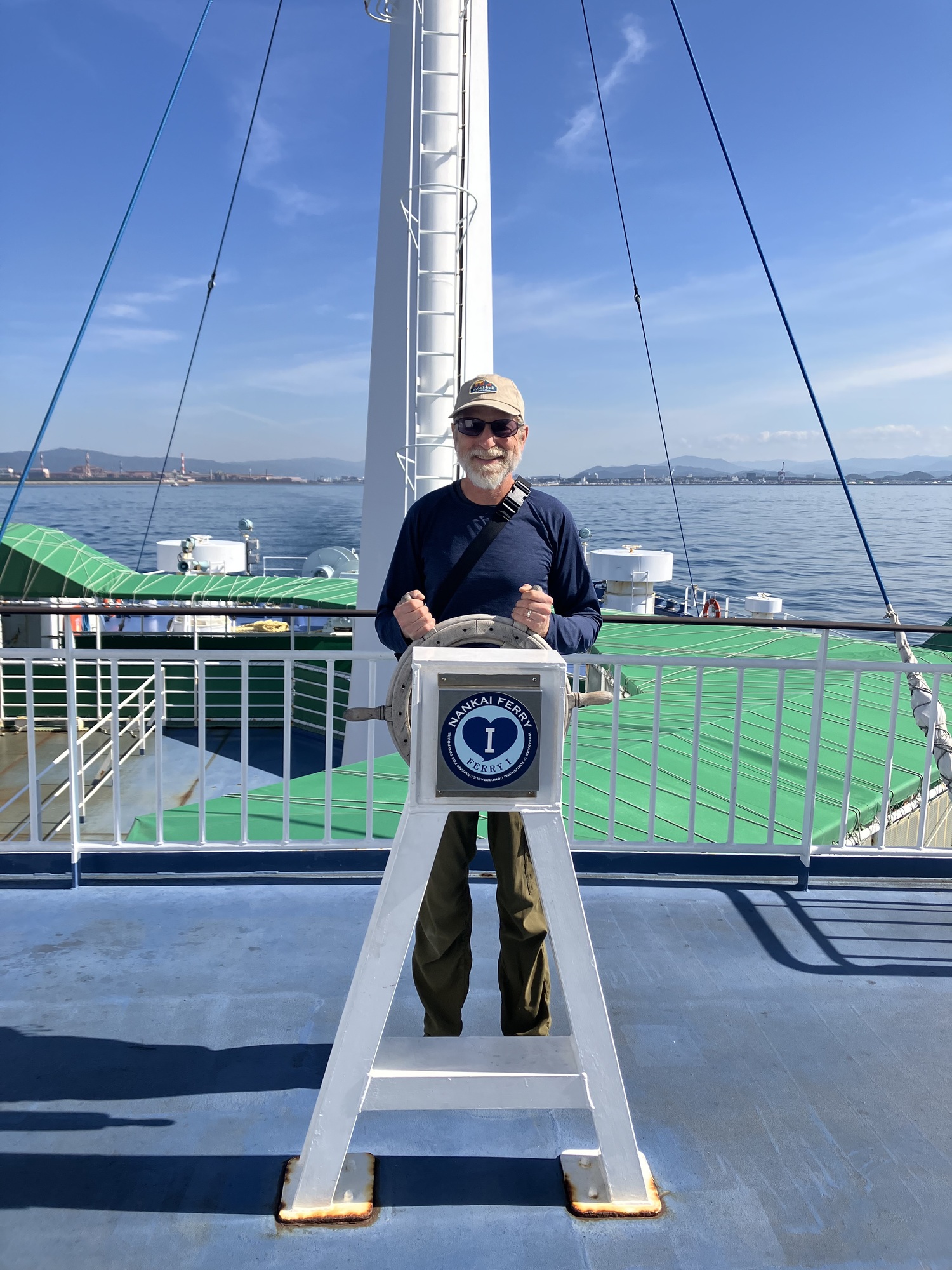 We were in no rush, as the ferry went a half dozen times a day, lasted a couple of hours, and we had maybe 4-5 km to travel on either end. And for all that, even despite getting a bit lost and overshooting the terminal (it really did not present as a passenger terminal when we cycled by it), we still managed to make the 10:30, which would get us into Tokushima a little after 12:30. We were lucky with the weather and had a nice sunny sailing. marilee snoozed and planned our itinerary, and I raided the snack machines and compulsively refreshed my browser for World Series results.