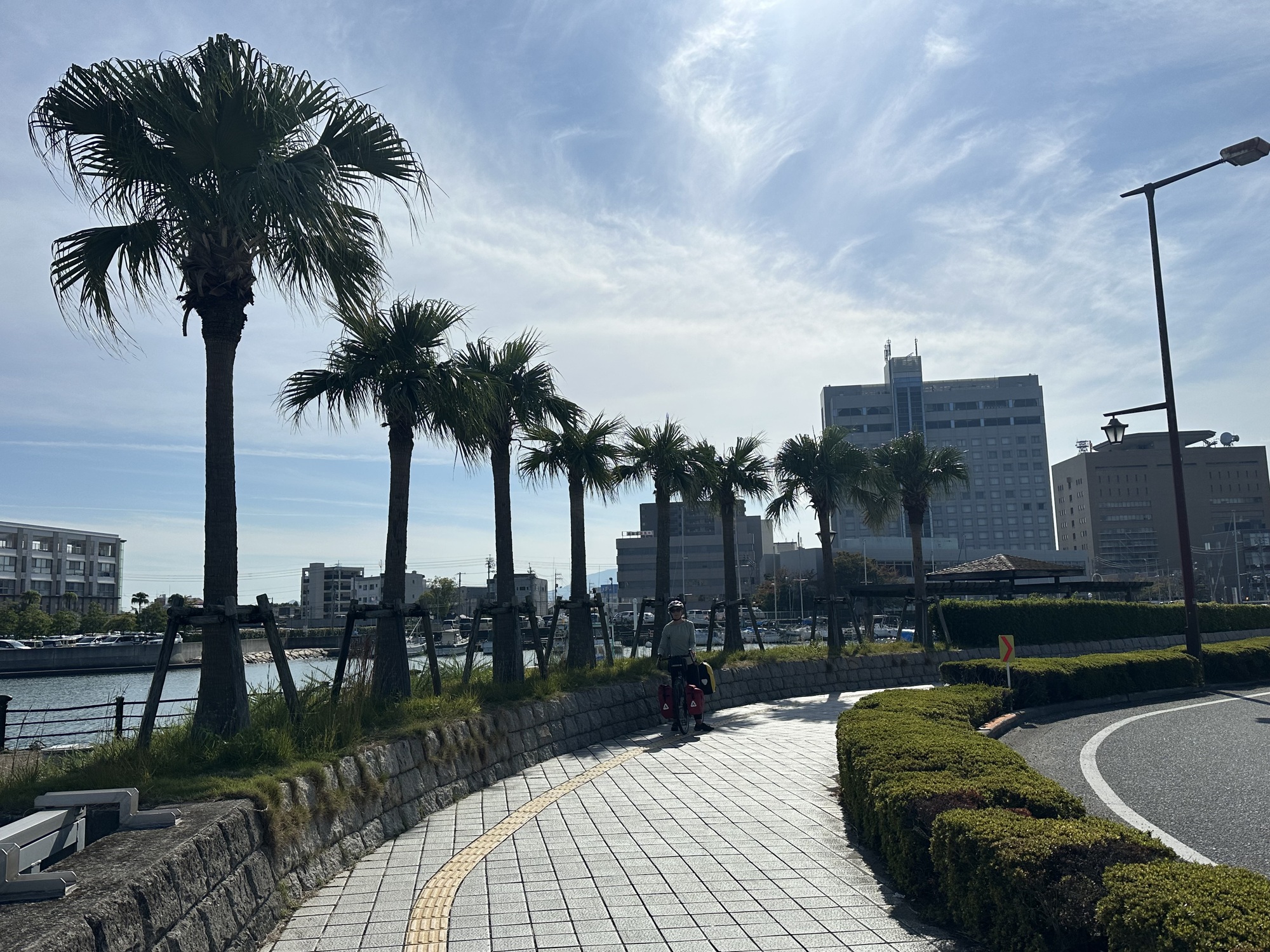 On arrival in Tokushima we pedalled very slowly along the inlets and canals that brought us to the city centre. Tokushima, despite being not much further south than Wakayama, had a much more subtropical feel, mostly because of the warm weather, but also aided by the presence of palm trees and pleasure boats on the inland waterways.